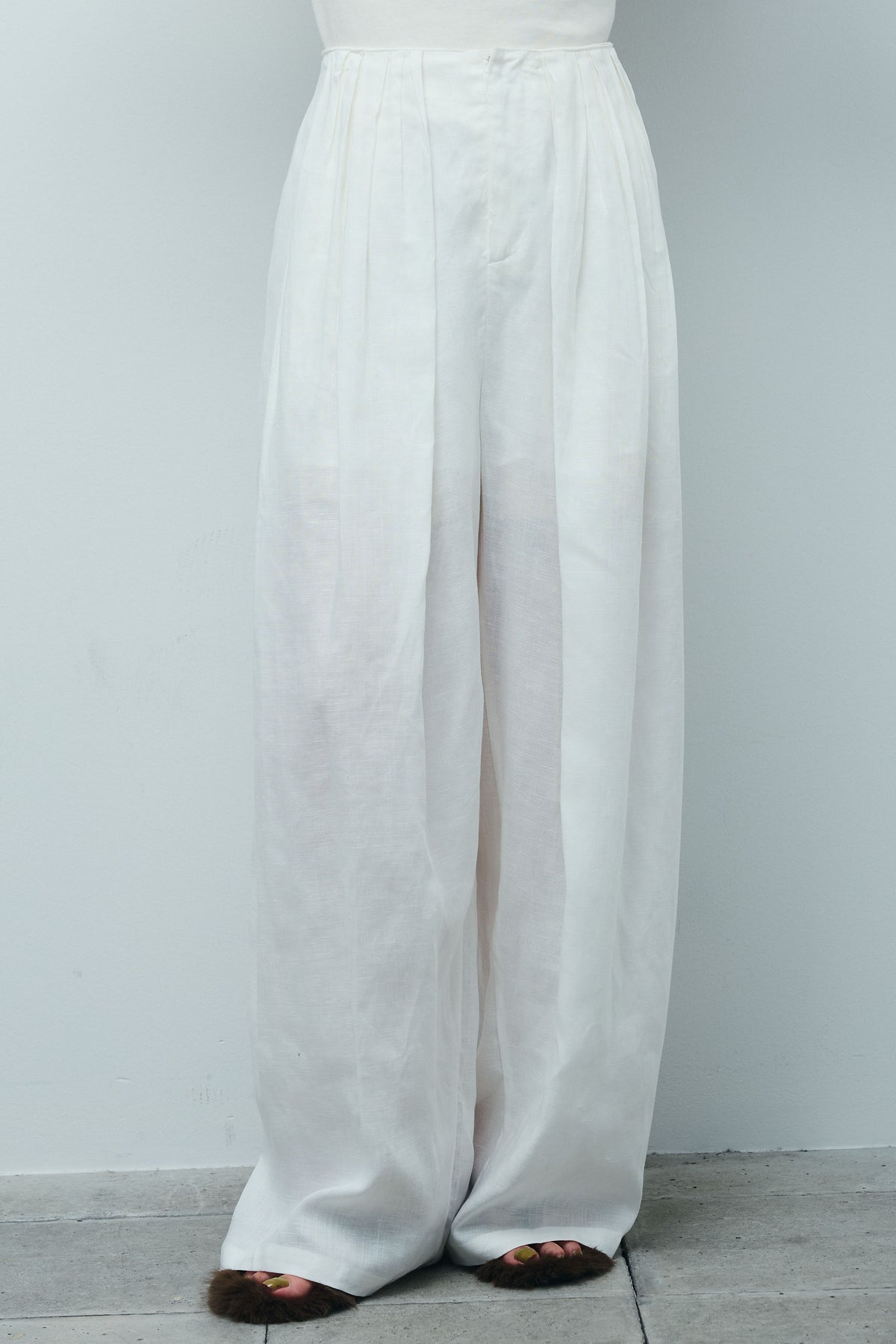 ◆ リネンミックスウエストデザインワイドパンツ