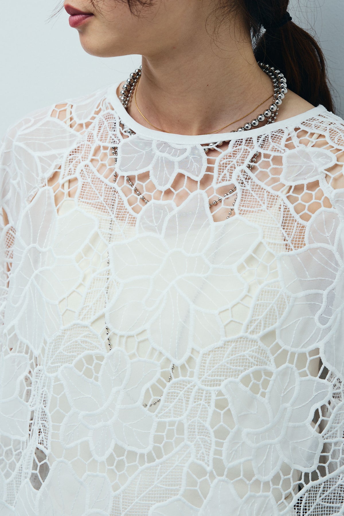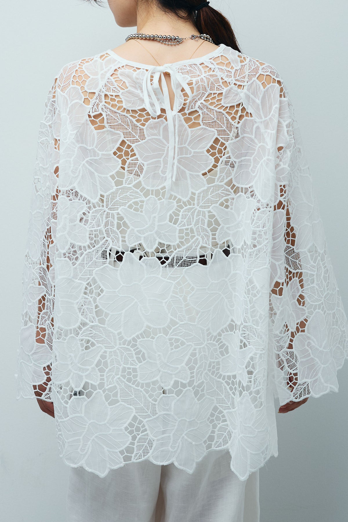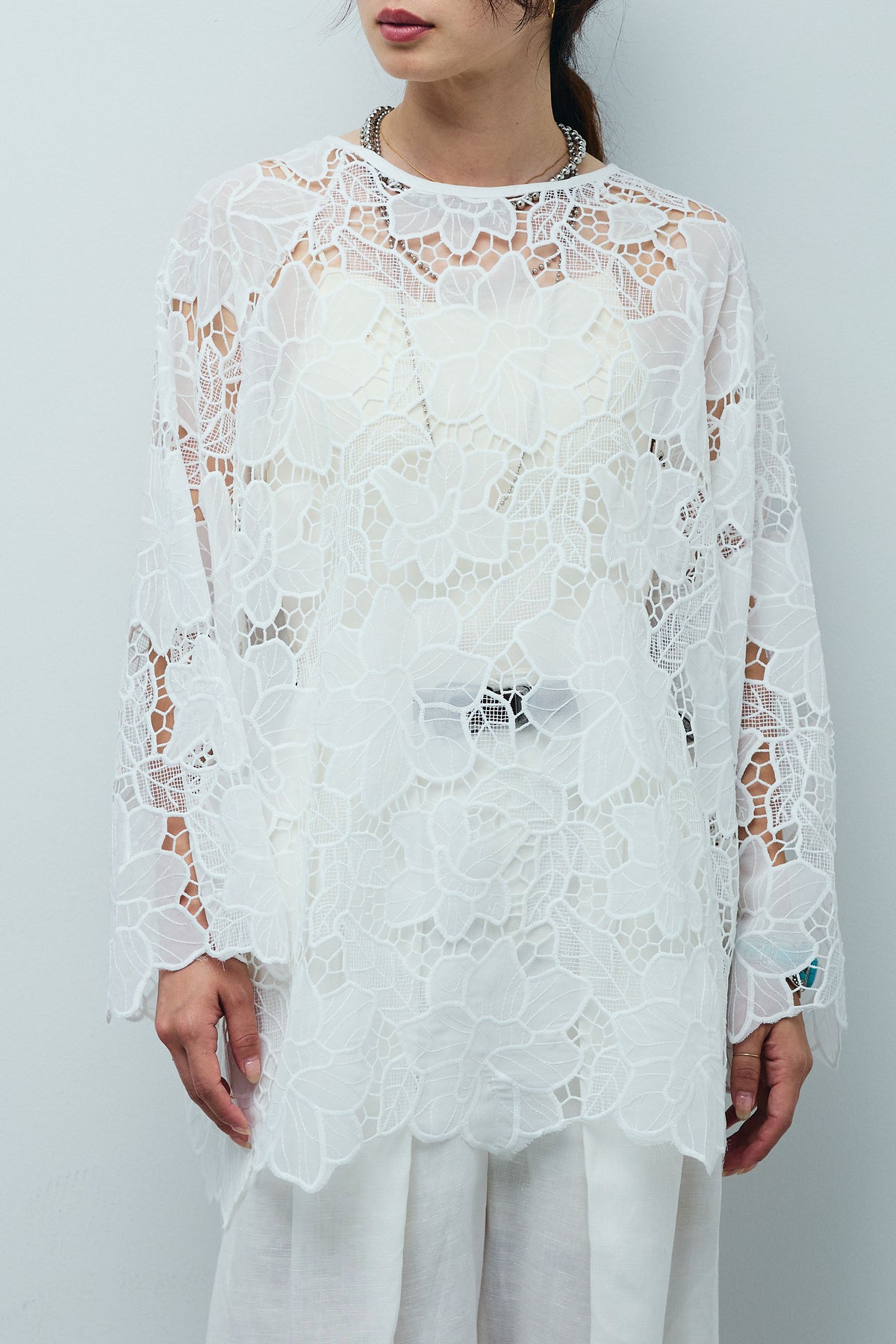 ◆ フラワー刺繍レースフレアブラウス