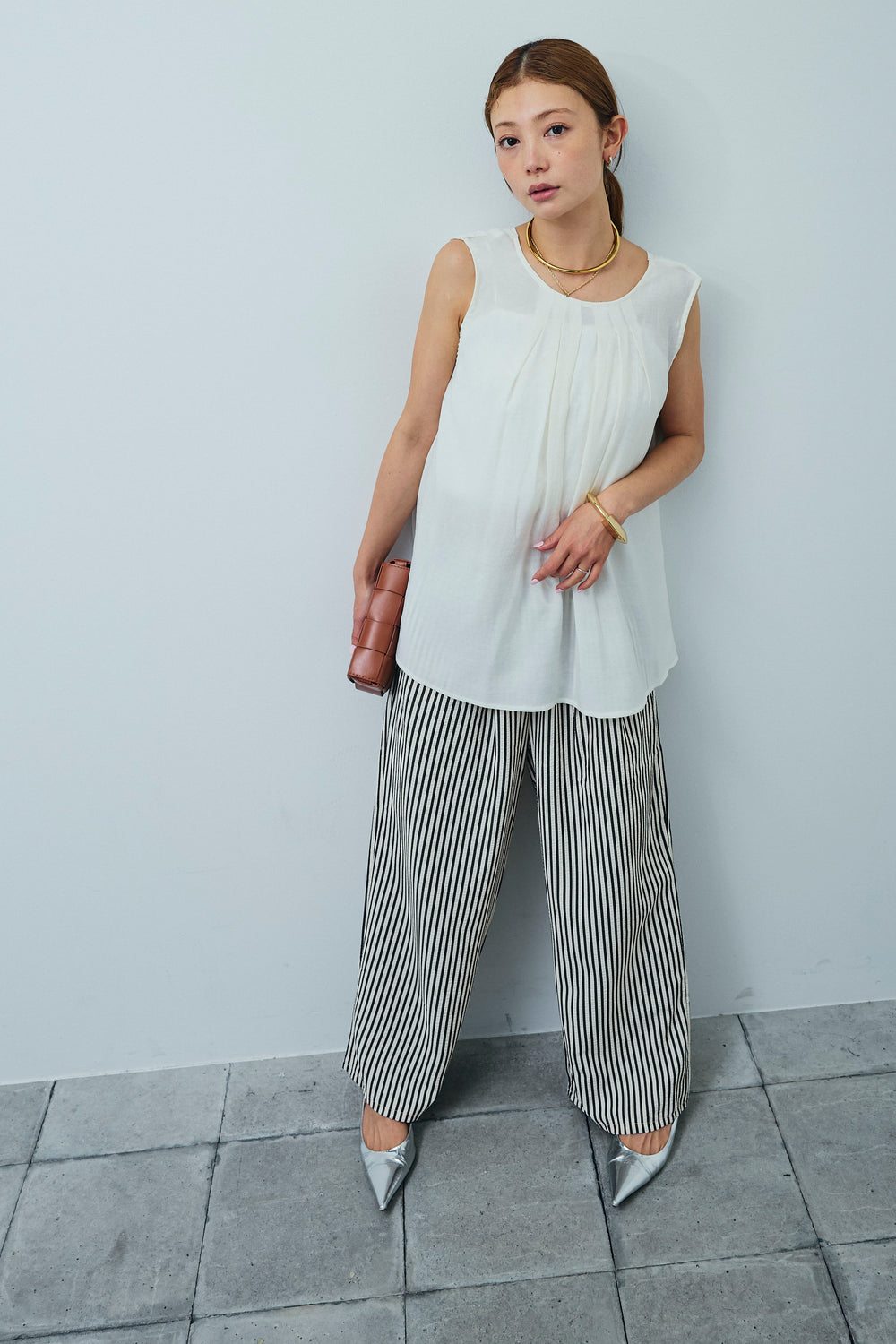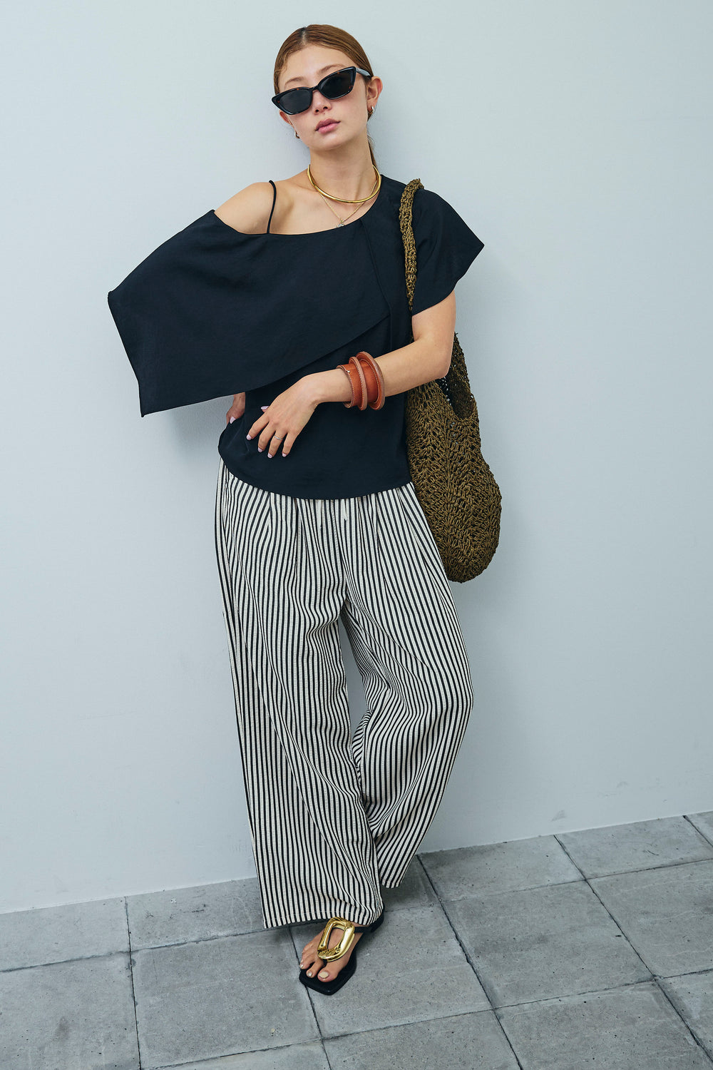 [予約/SET]アシメブラウス+ピンストライプサイドラインワイドパンツ(2set)