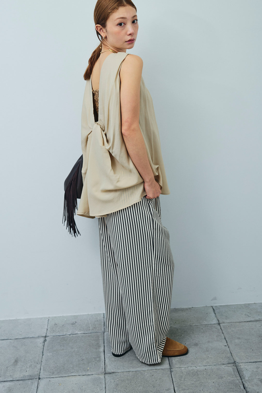[予約/SET]シアーバックツイストノースリトップス+ストライプ柄イージーパンツ(2set)
