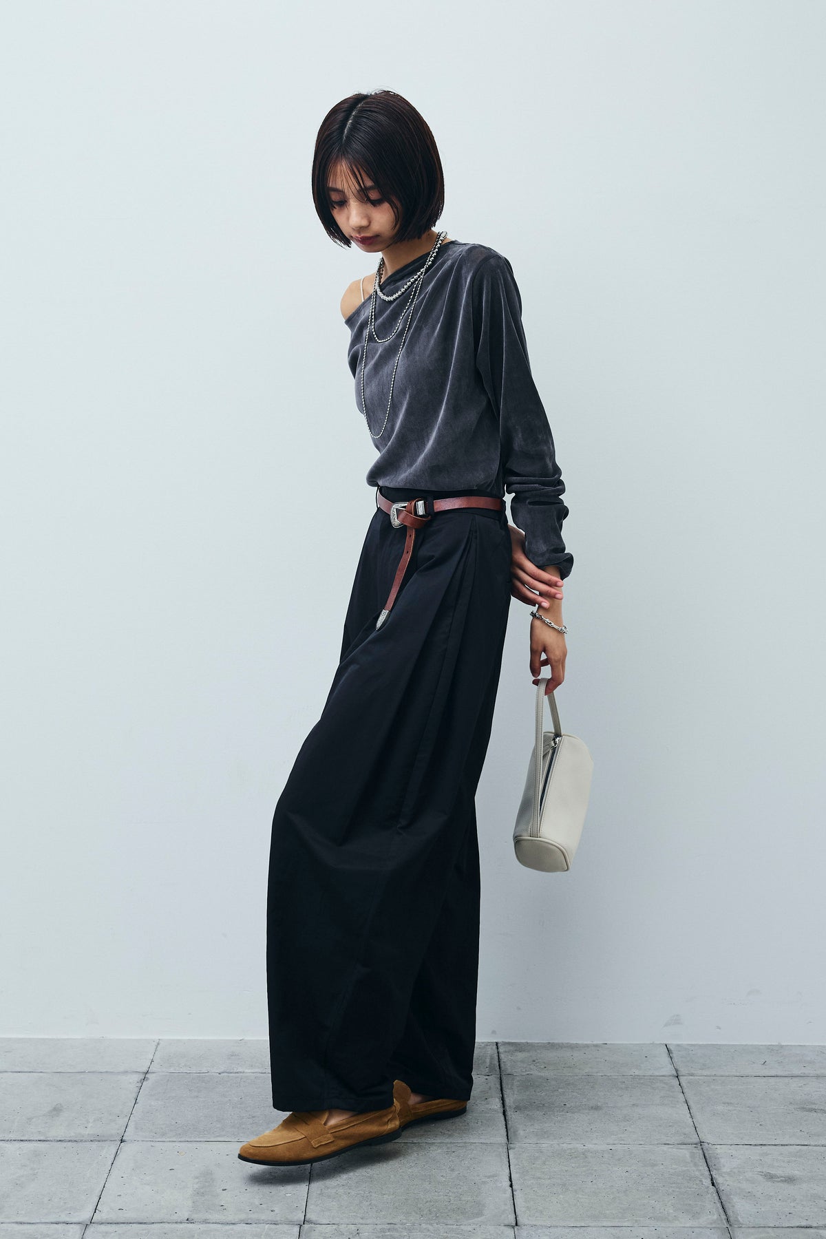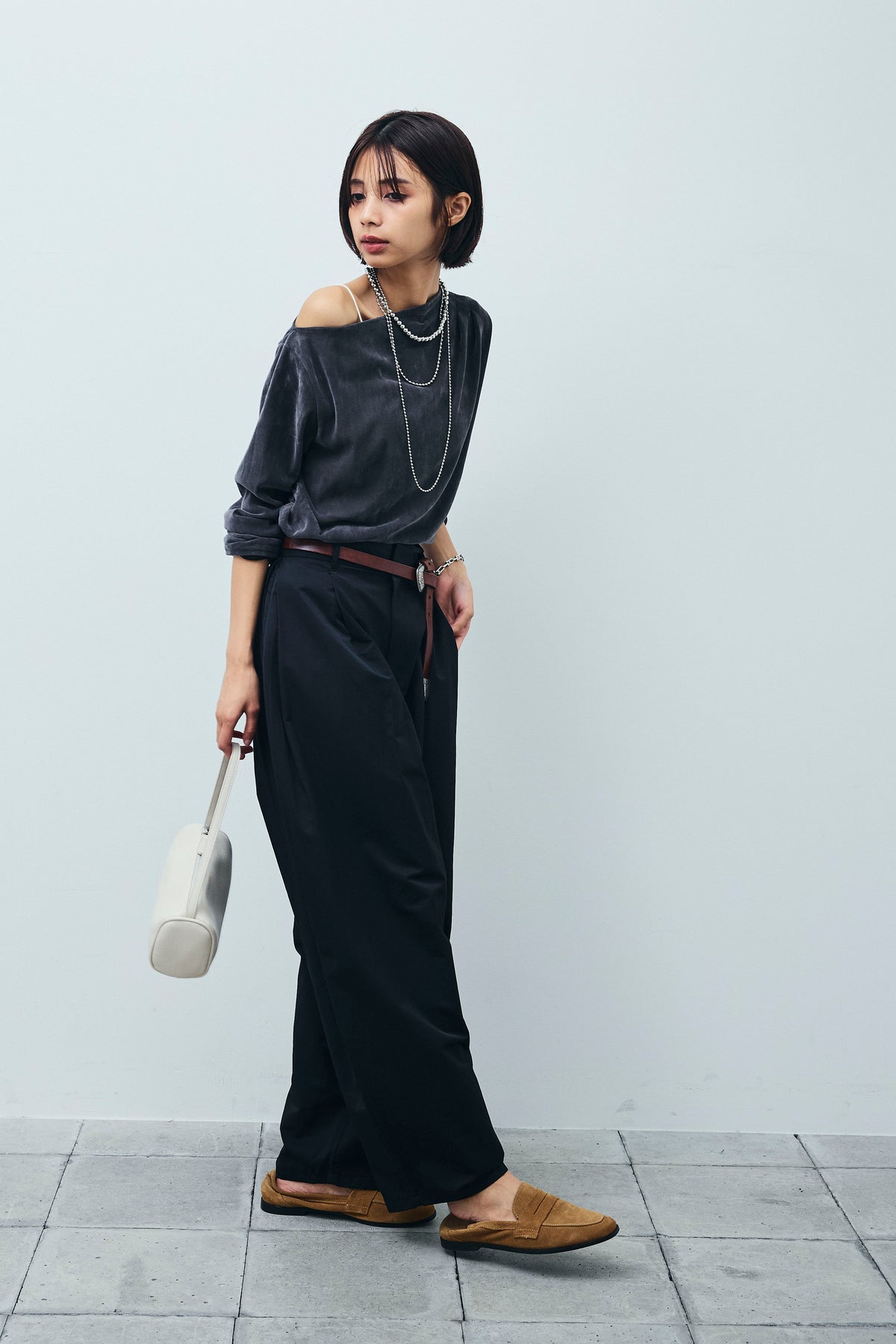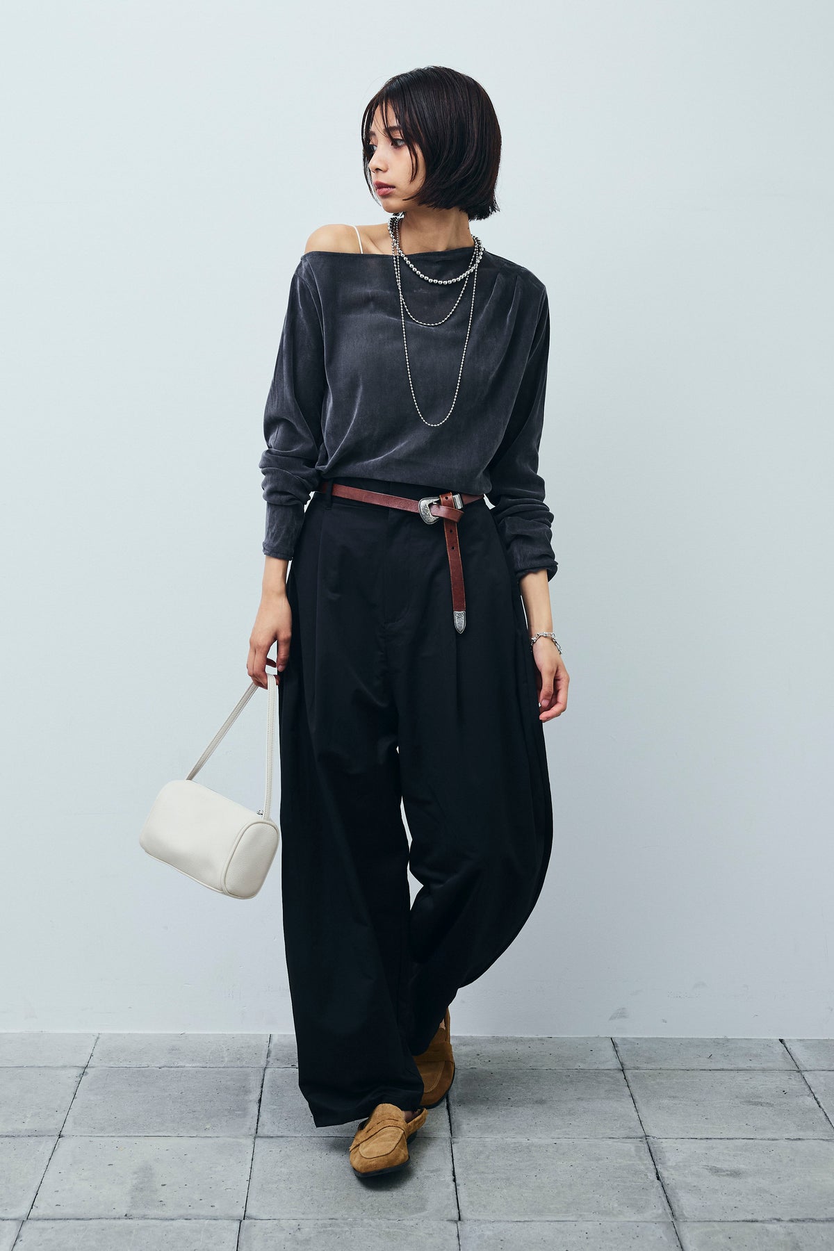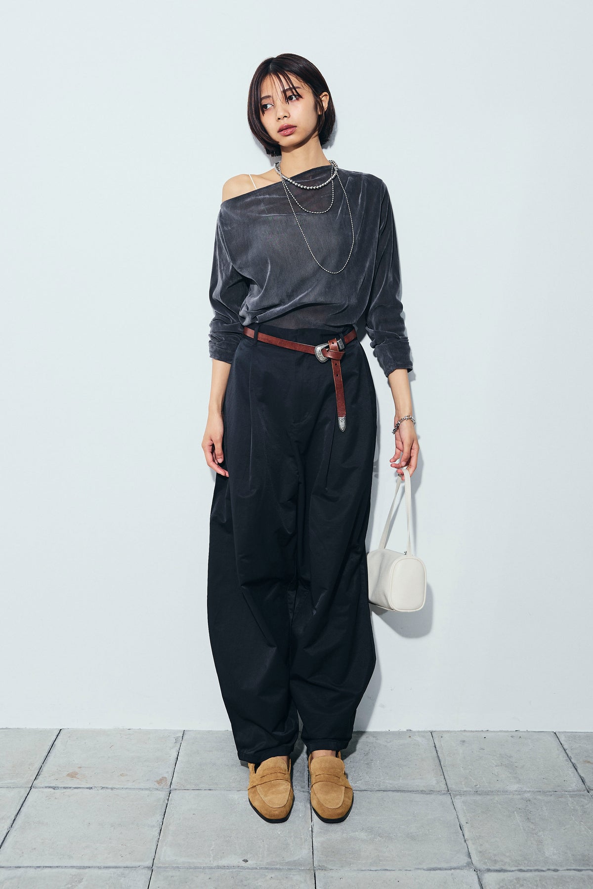 [予約/SET]シアーベロアオフショルタックPO+合繊ツイルタックカーブパンツ(2set)
