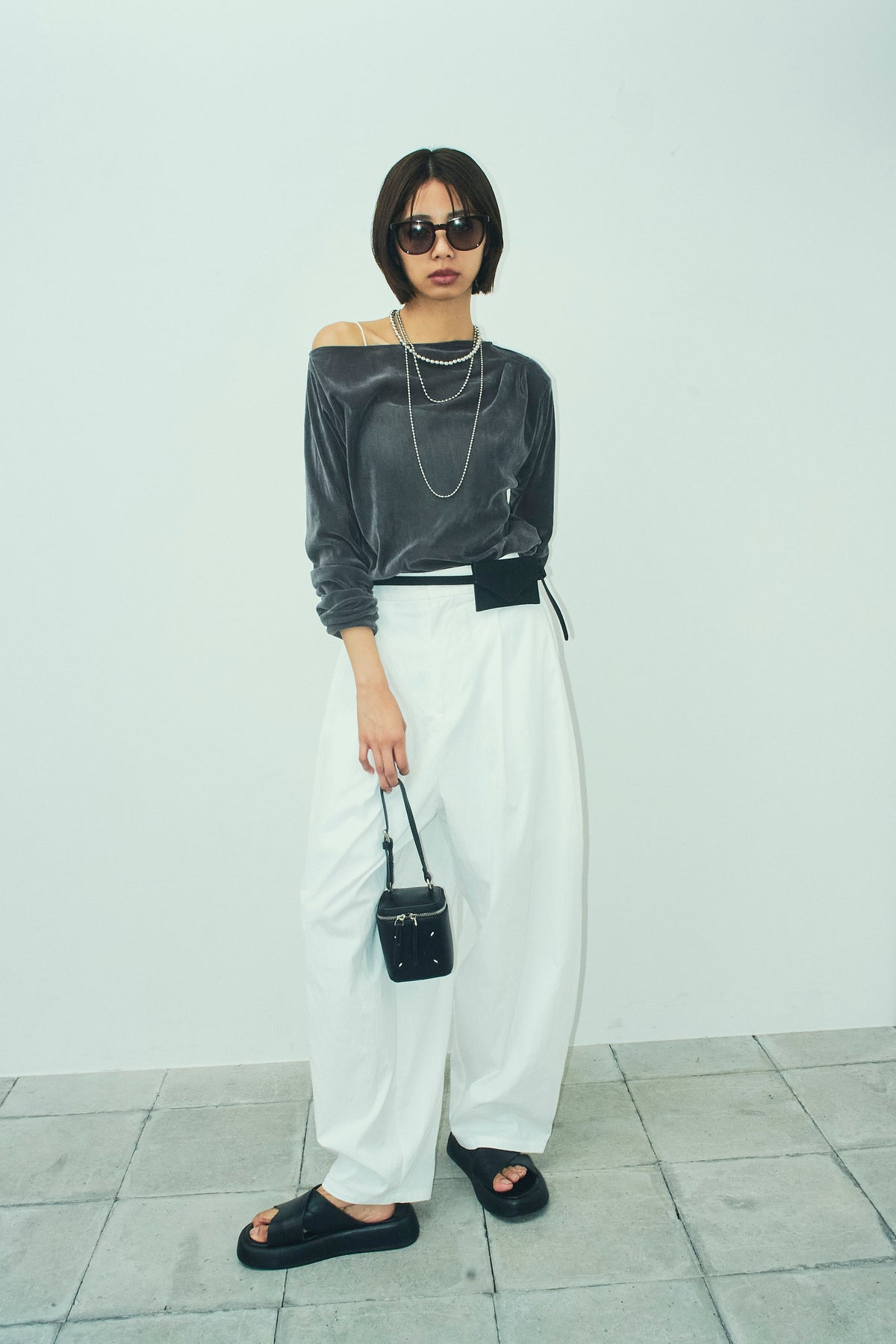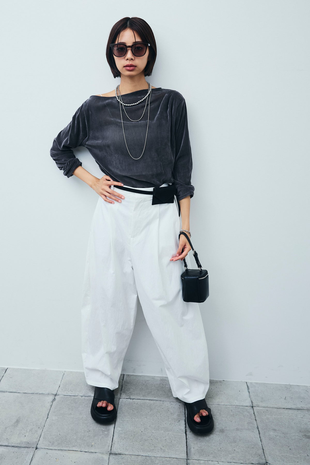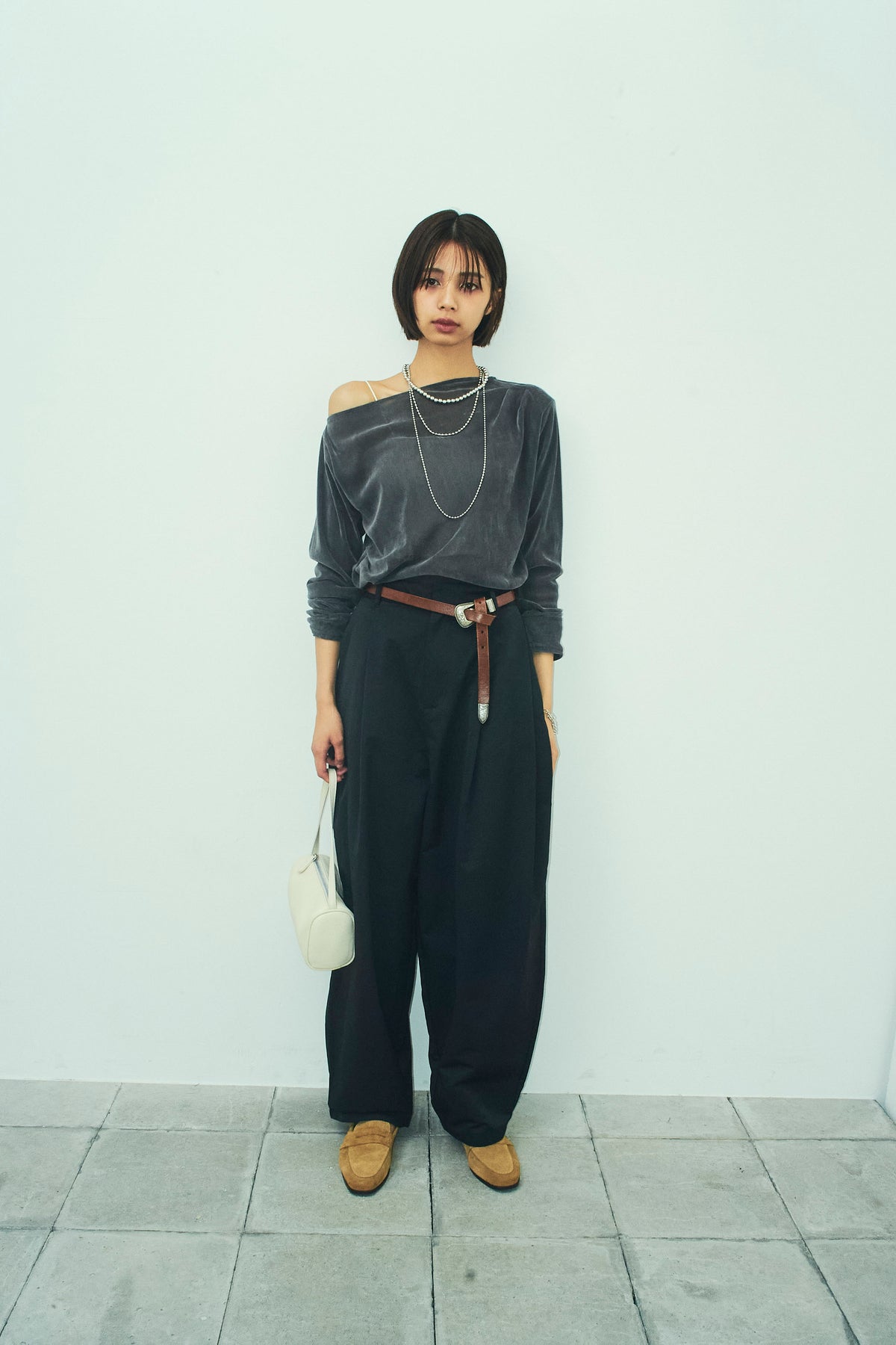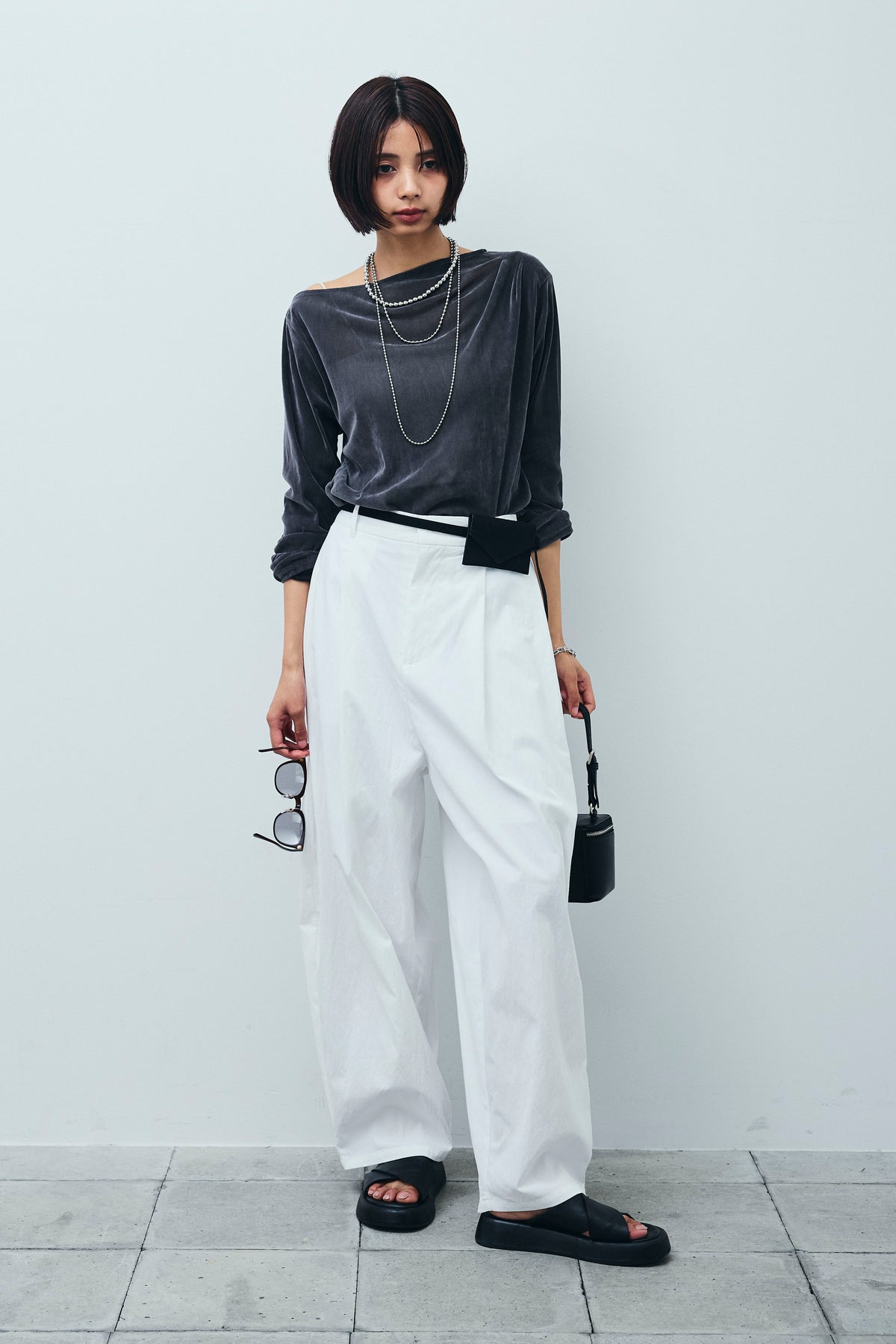 [予約/SET]シアーベロアオフショルタックPO+合繊ツイルタックカーブパンツ(2set)