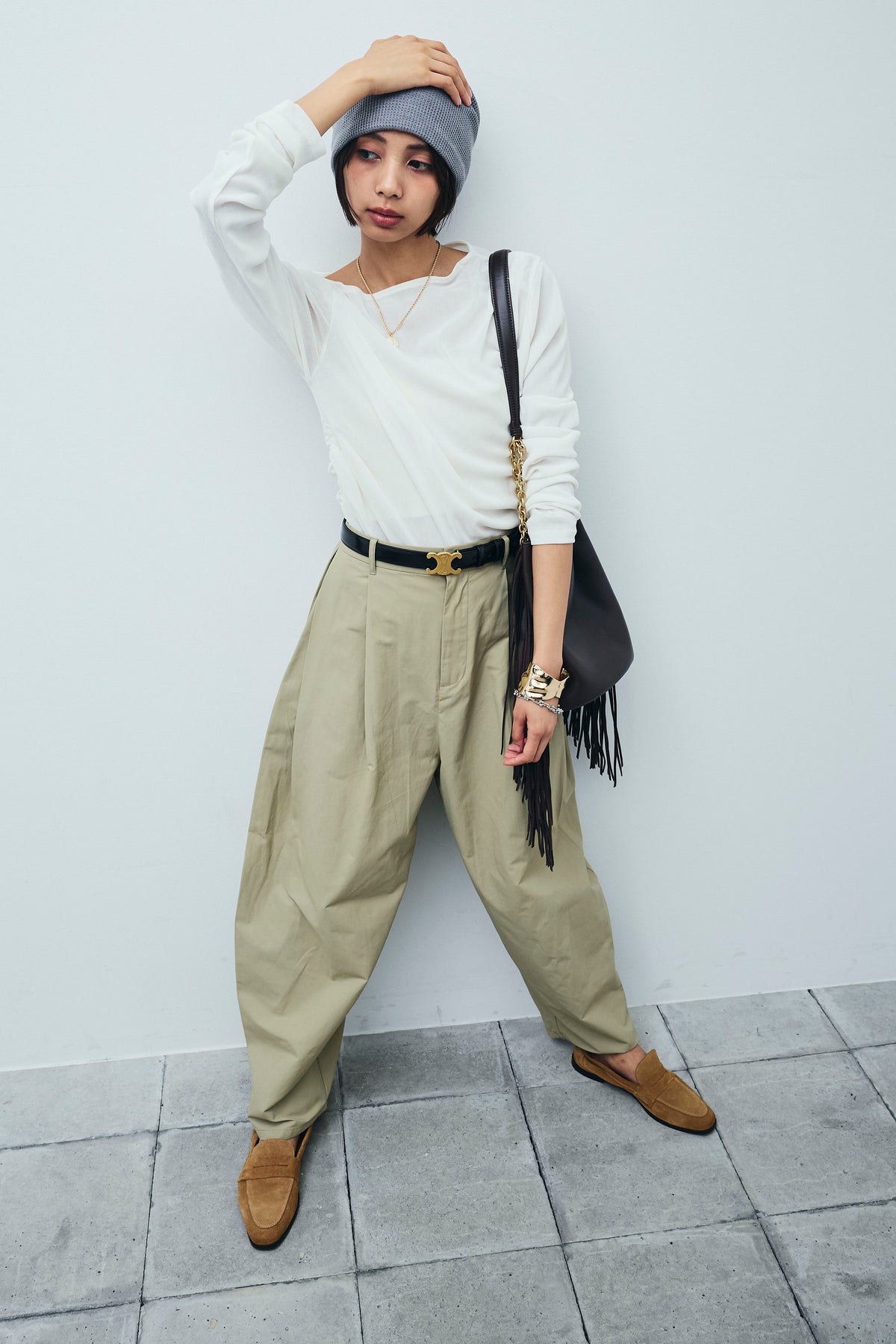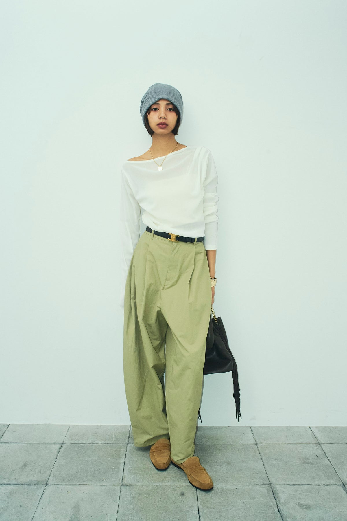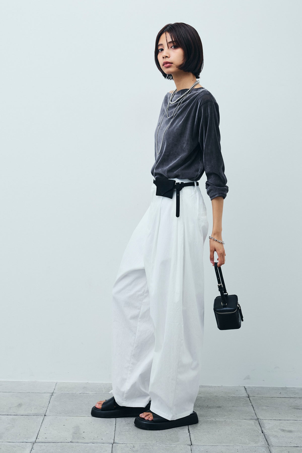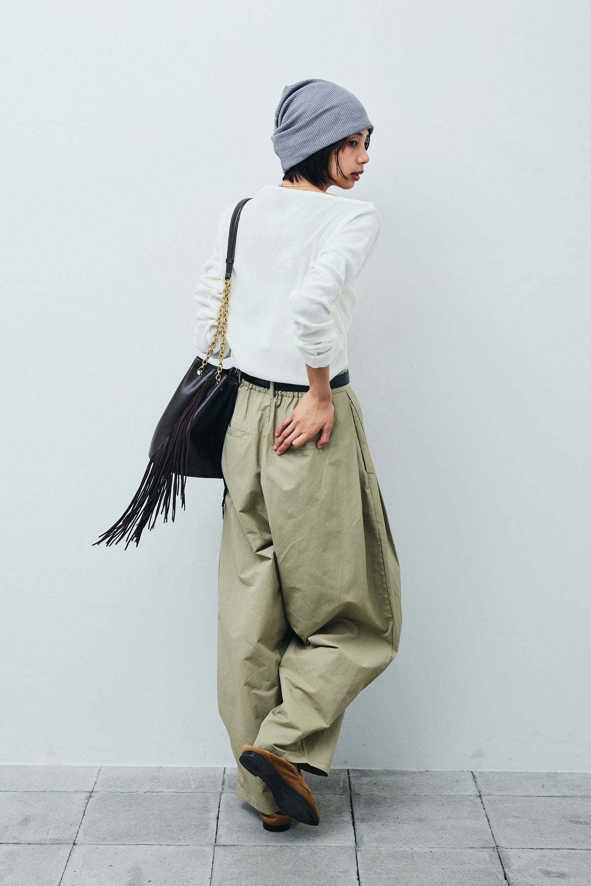 [予約/SET]シアーベロアオフショルタックPO+合繊ツイルタックカーブパンツ(2set)