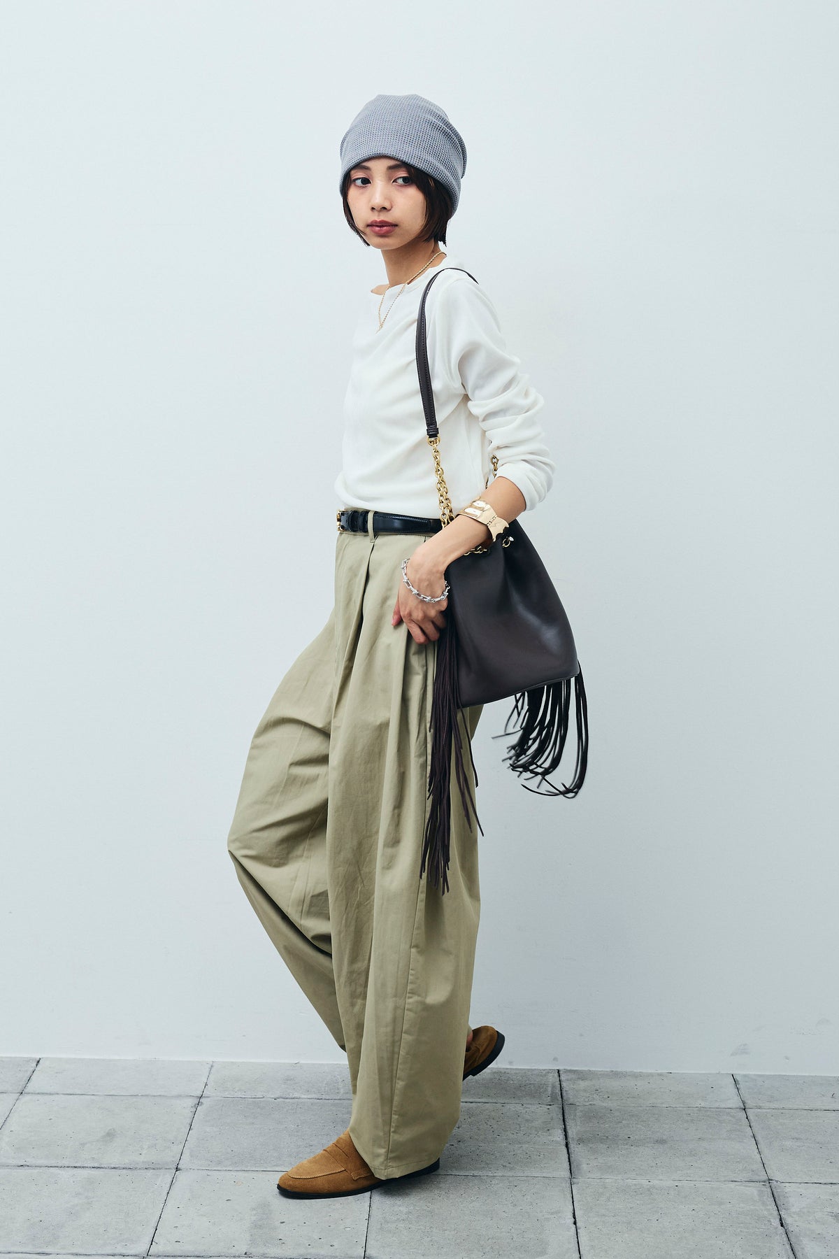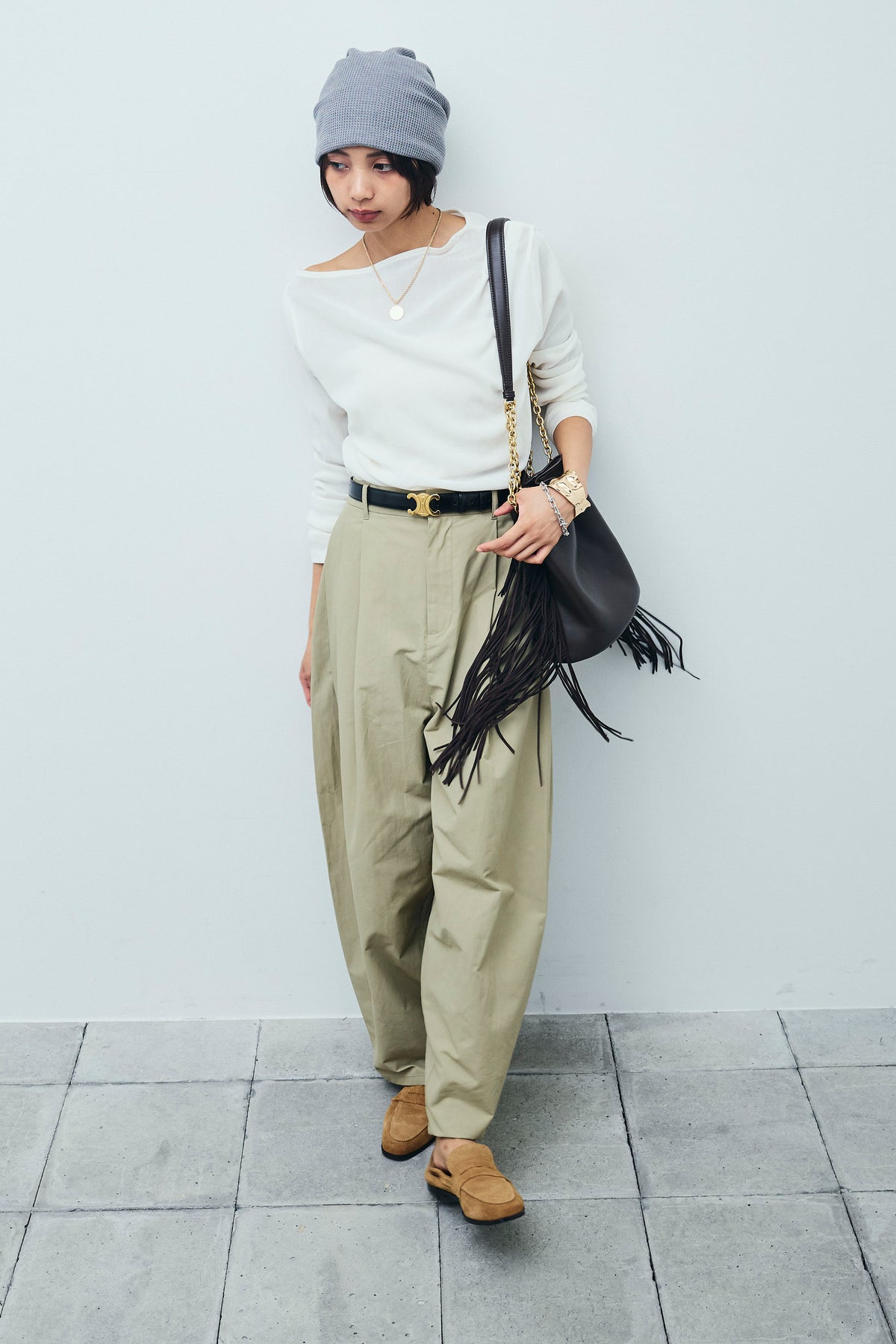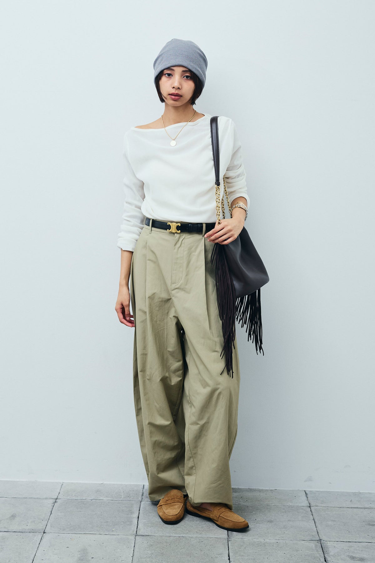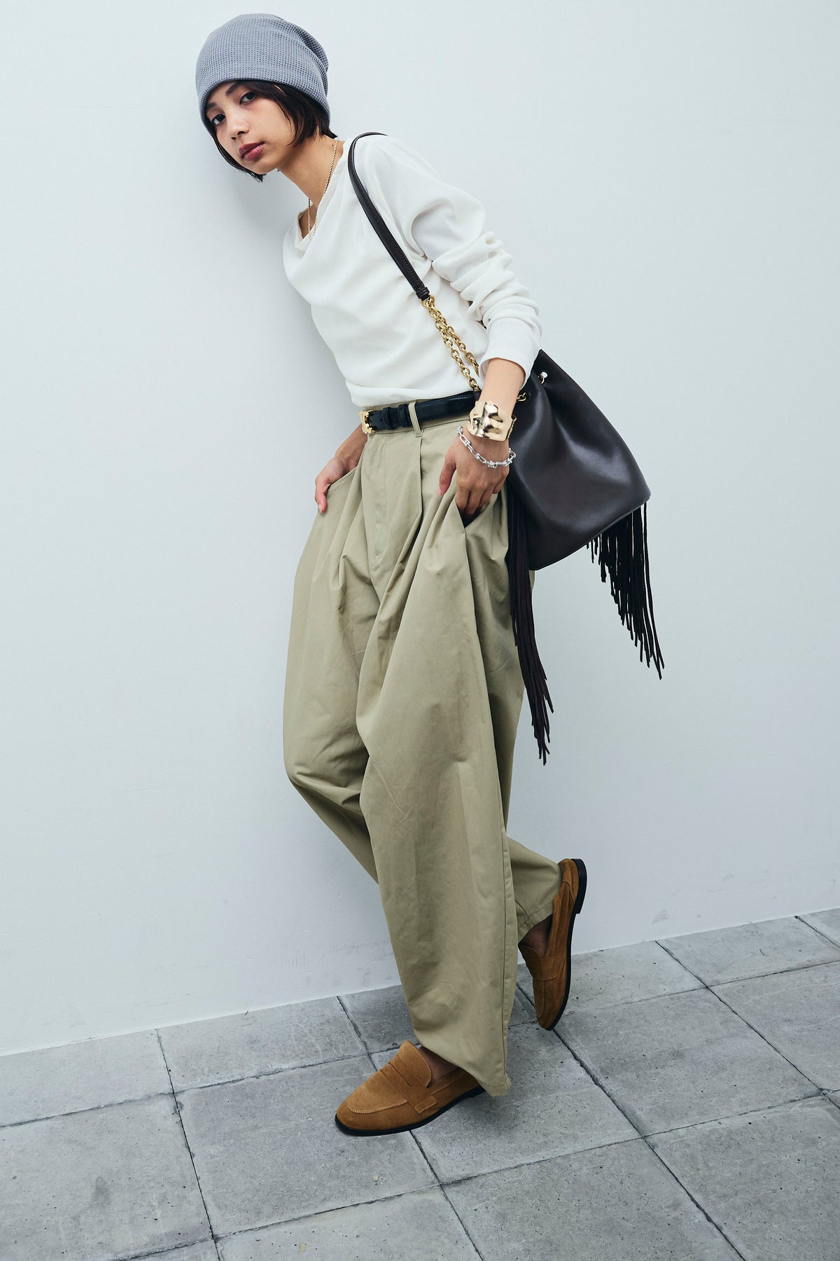 [予約/SET]シアーベロアオフショルタックPO+合繊ツイルタックカーブパンツ(2set)