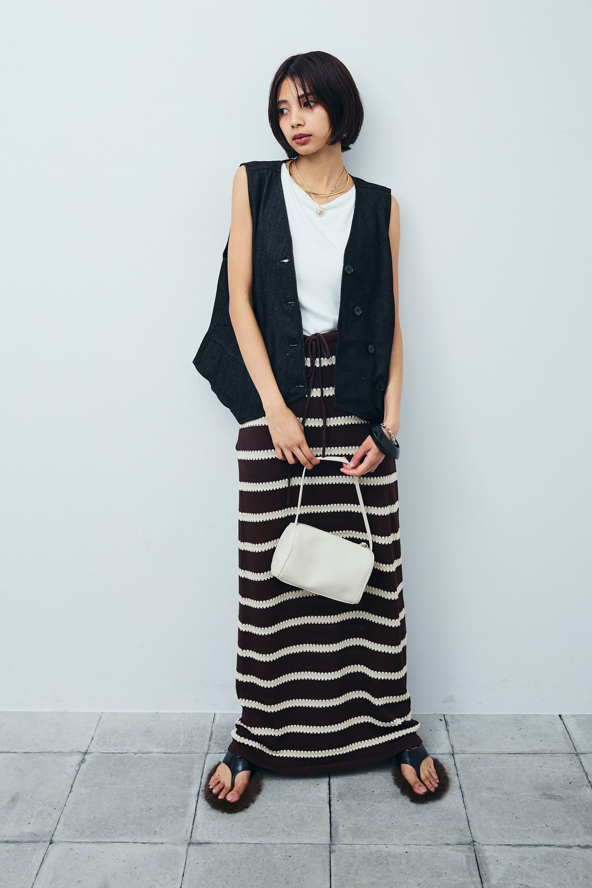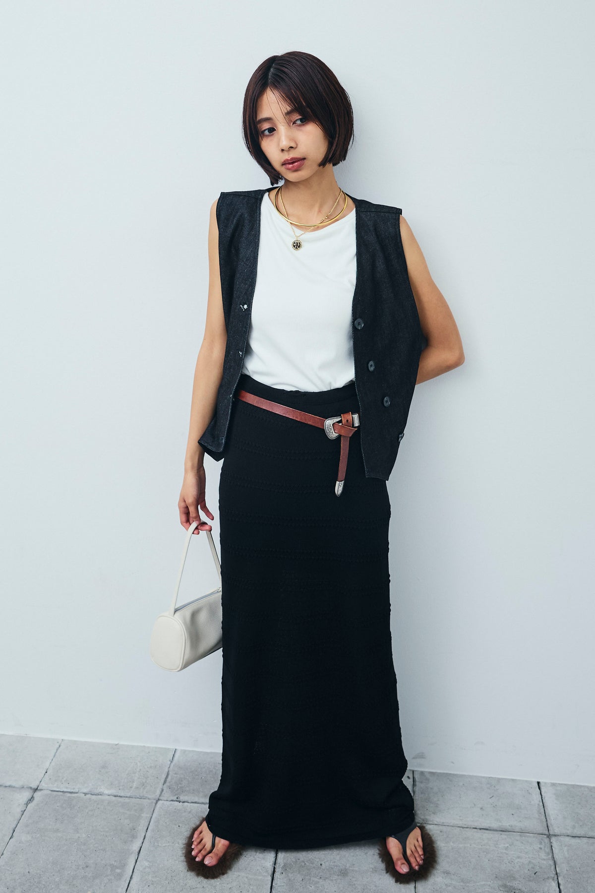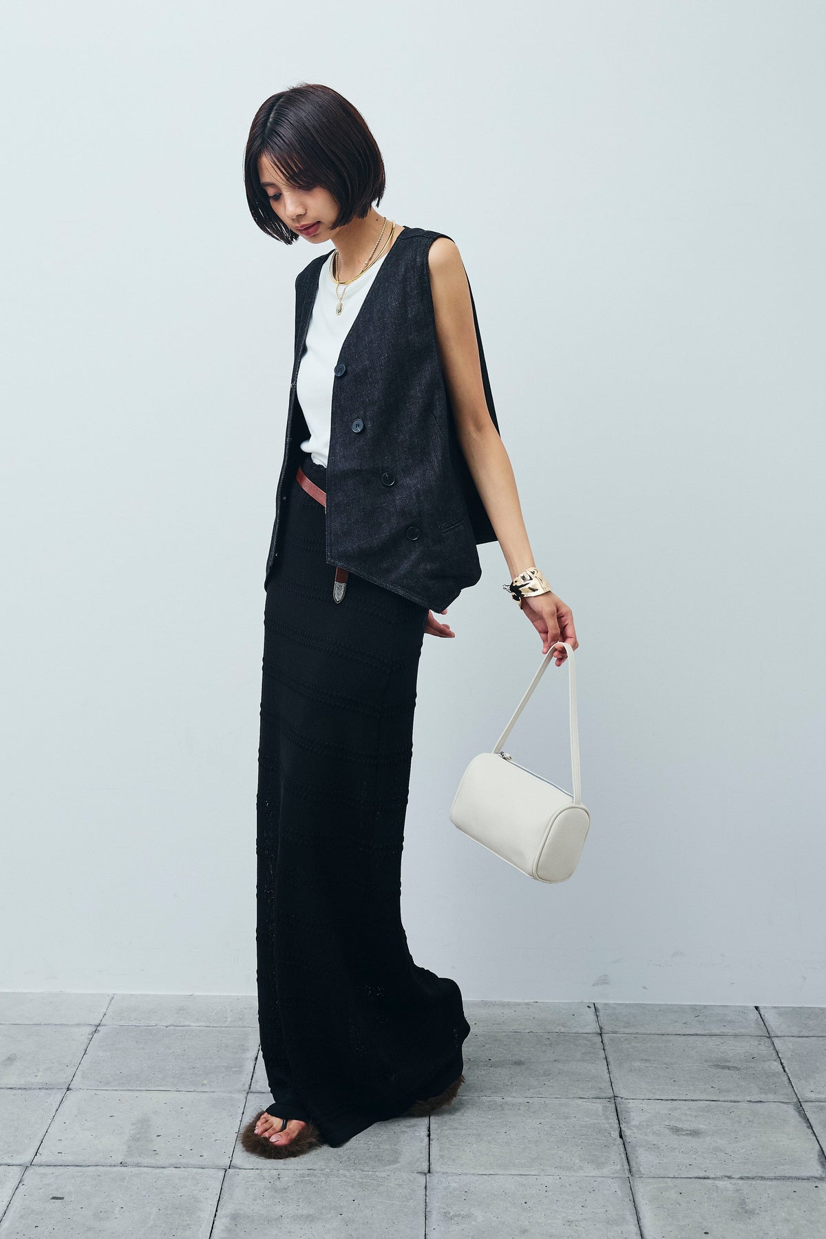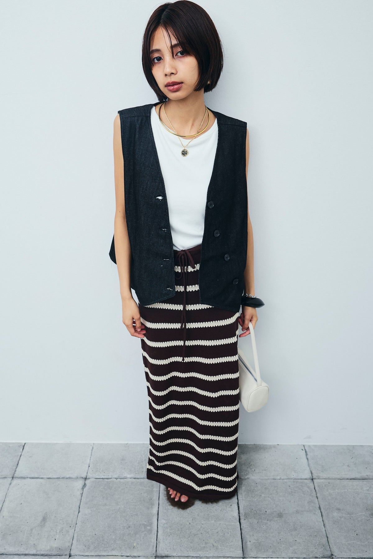 [予約/SET]アシメボタンデニムベスト+ニットスカート(2set)