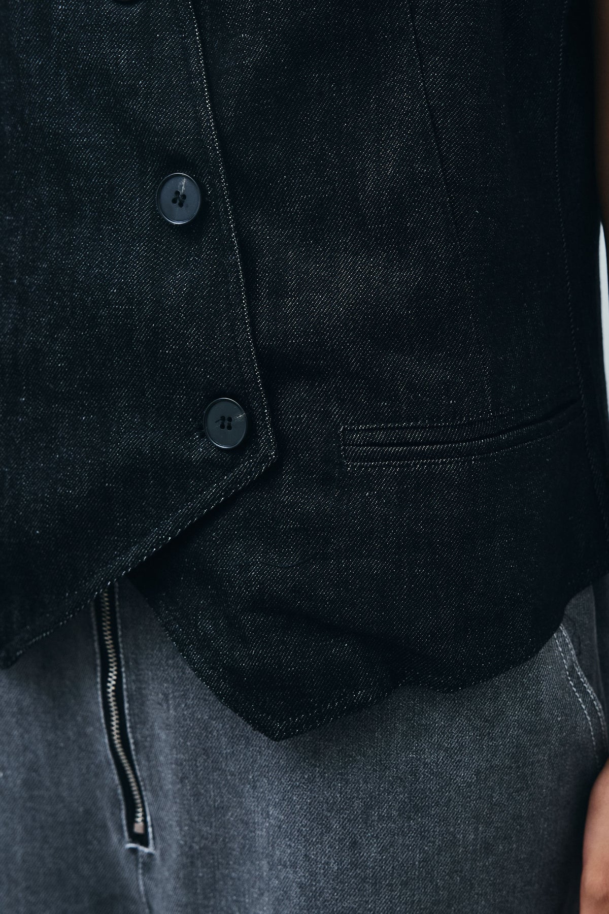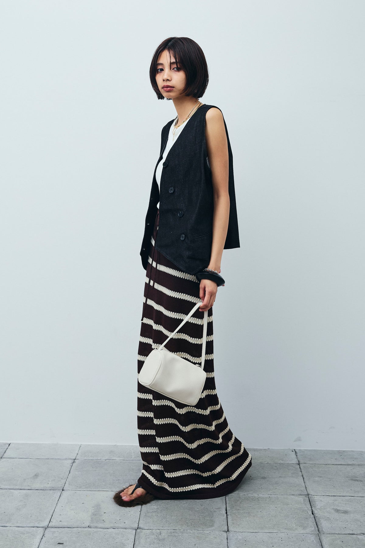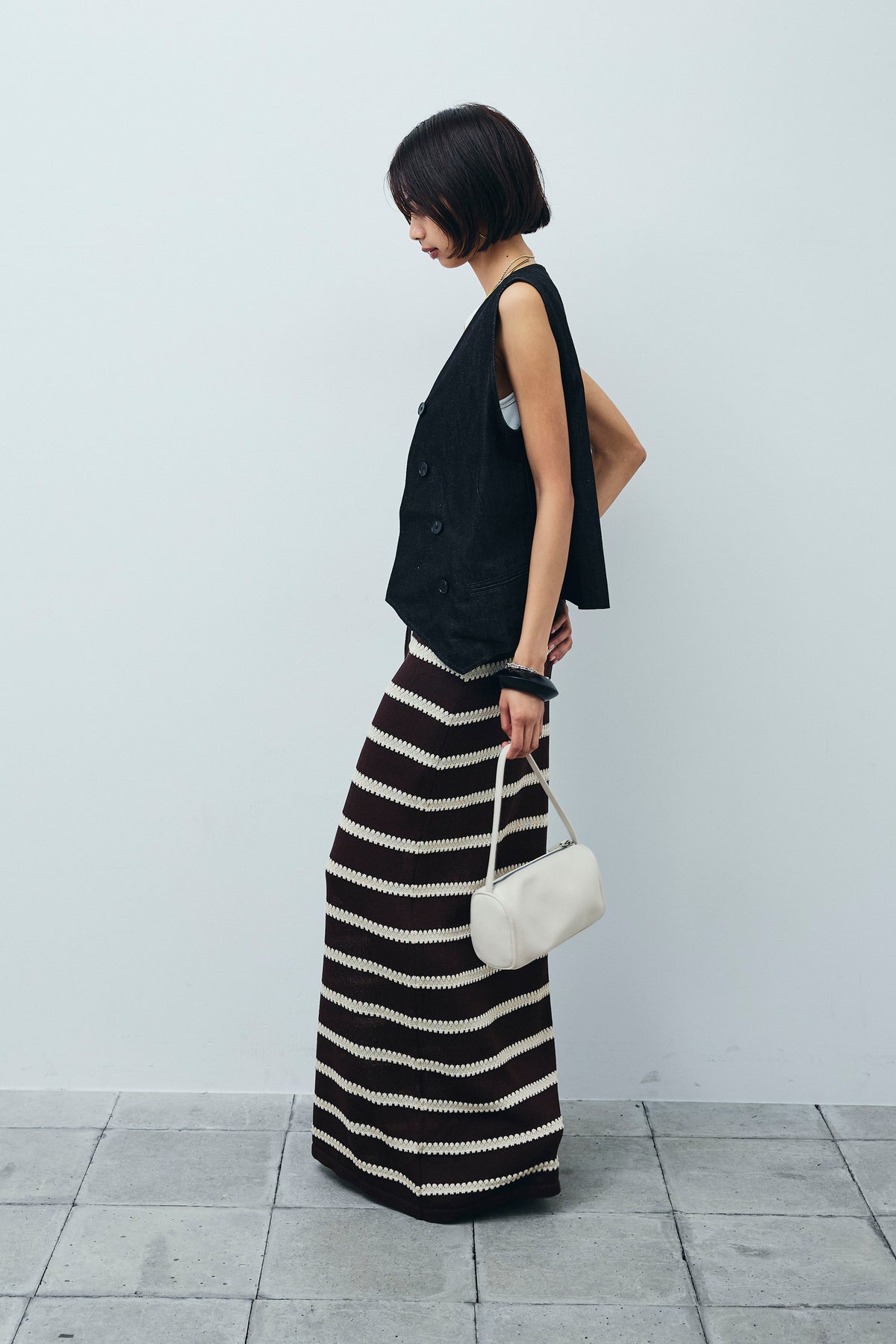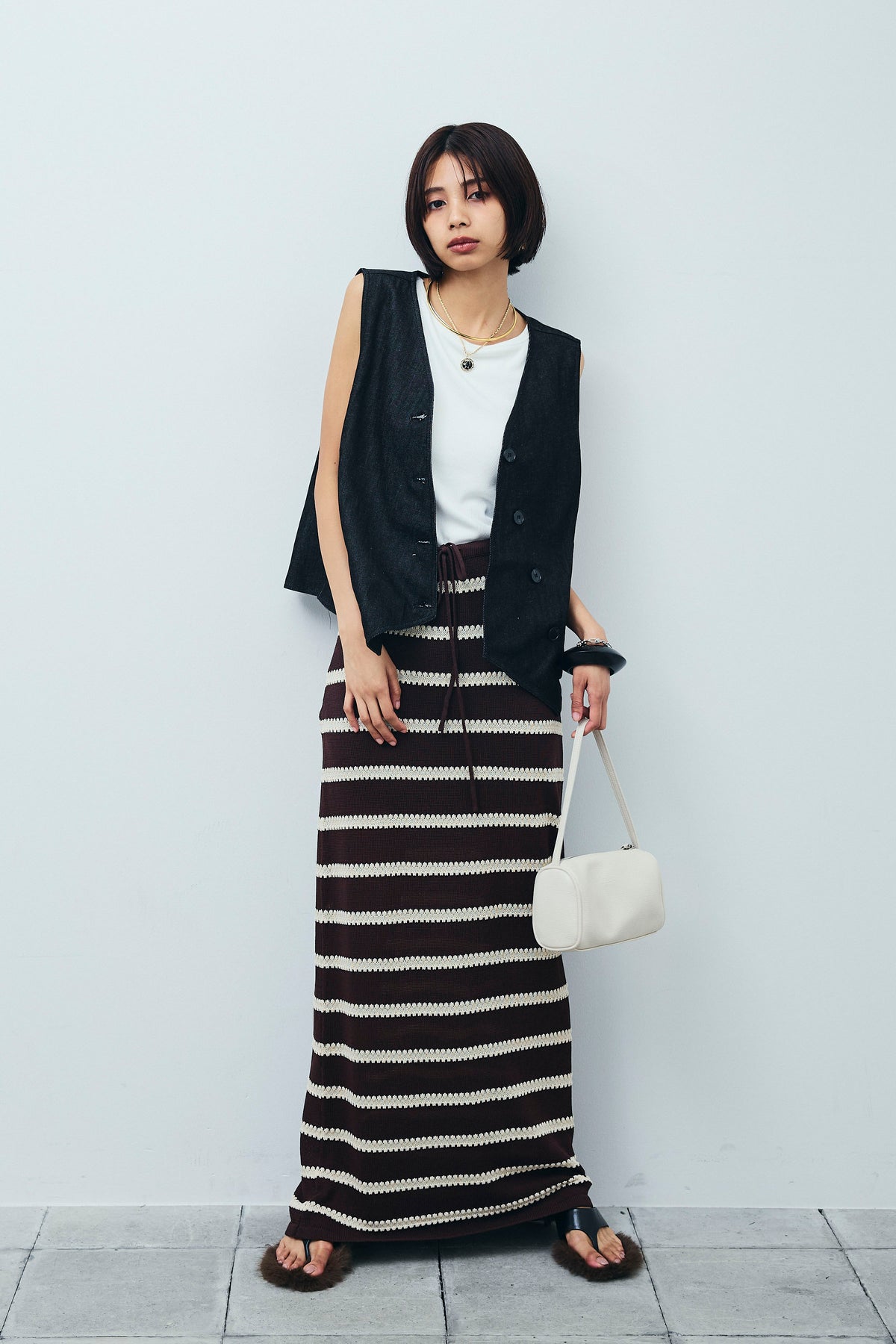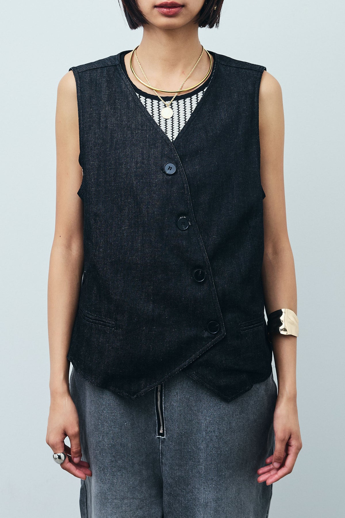 [予約/SET]アシメボタンデニムベスト+ニットスカート(2set)