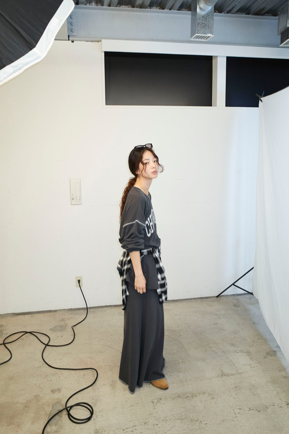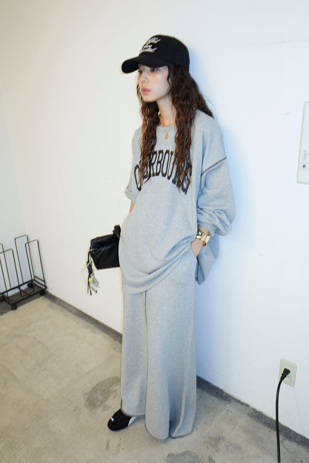 [予約/SET]配色ラグランルーズスウェット+スリットスウェットロングSK(2set)