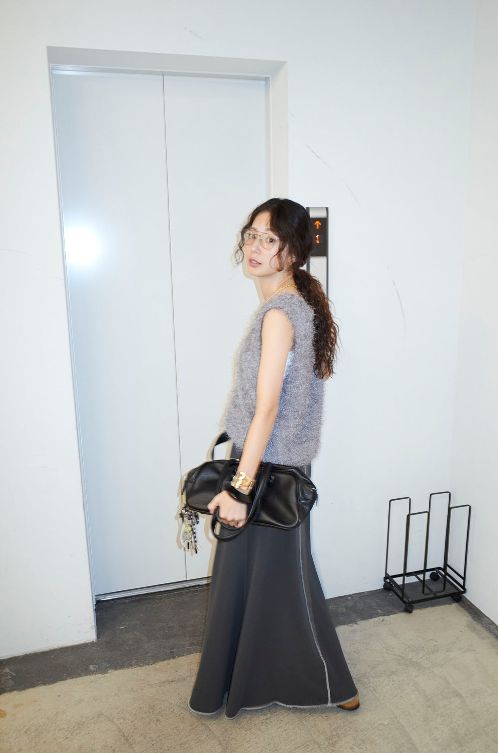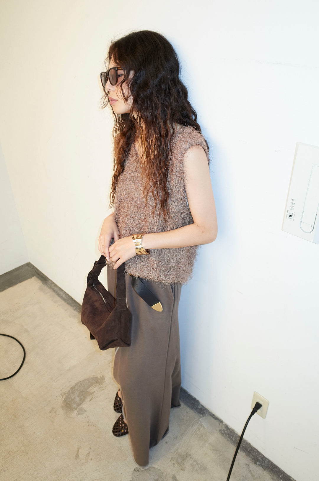 [予約/SET]ハンドニットロービングベスト+エコレザーバックスリットペンシルスカート(2set)