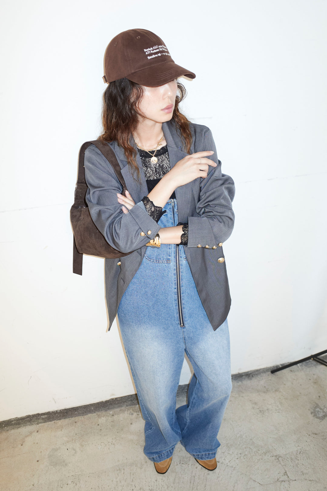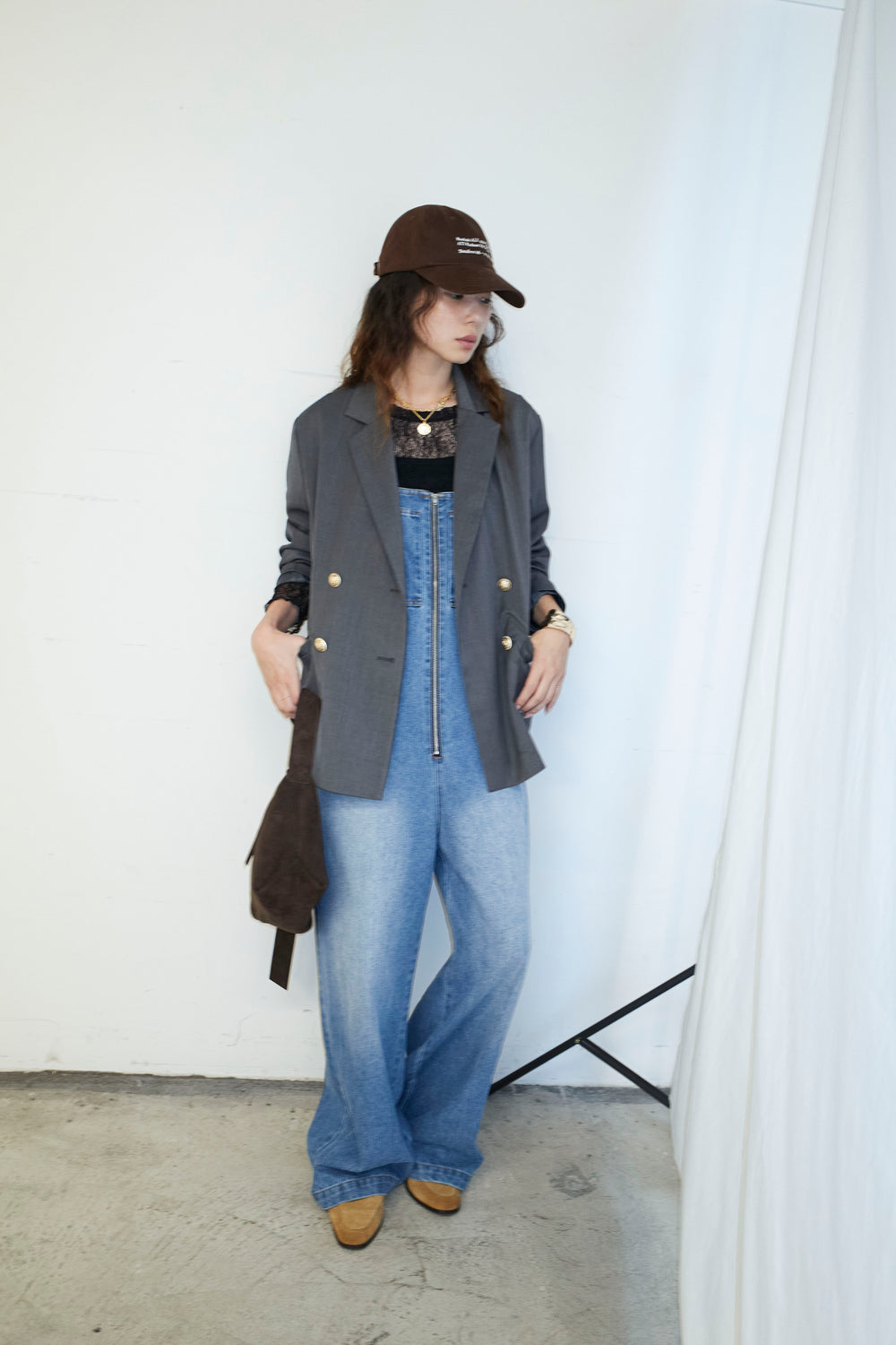 [予約/SET]TRツイルダブルテーラードジャケット+フロントジップストラップデザインデニムサロペット(2set)