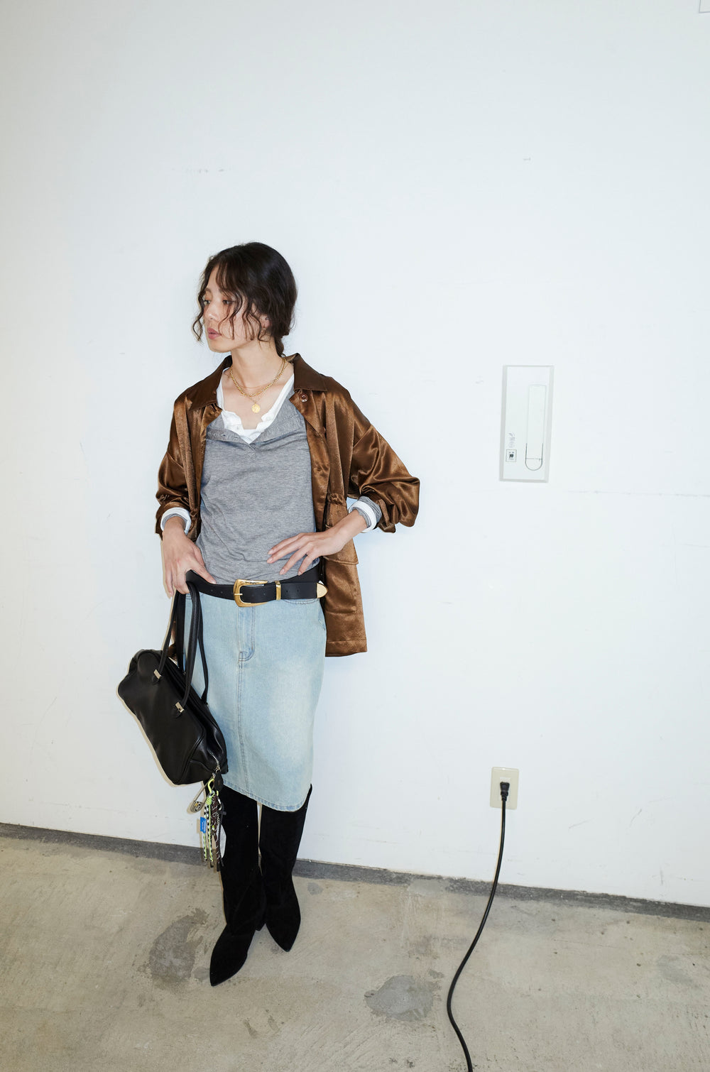 [予約/SET]サテンミリタリーシャツJK+ボックスデニム膝丈SK(2set)