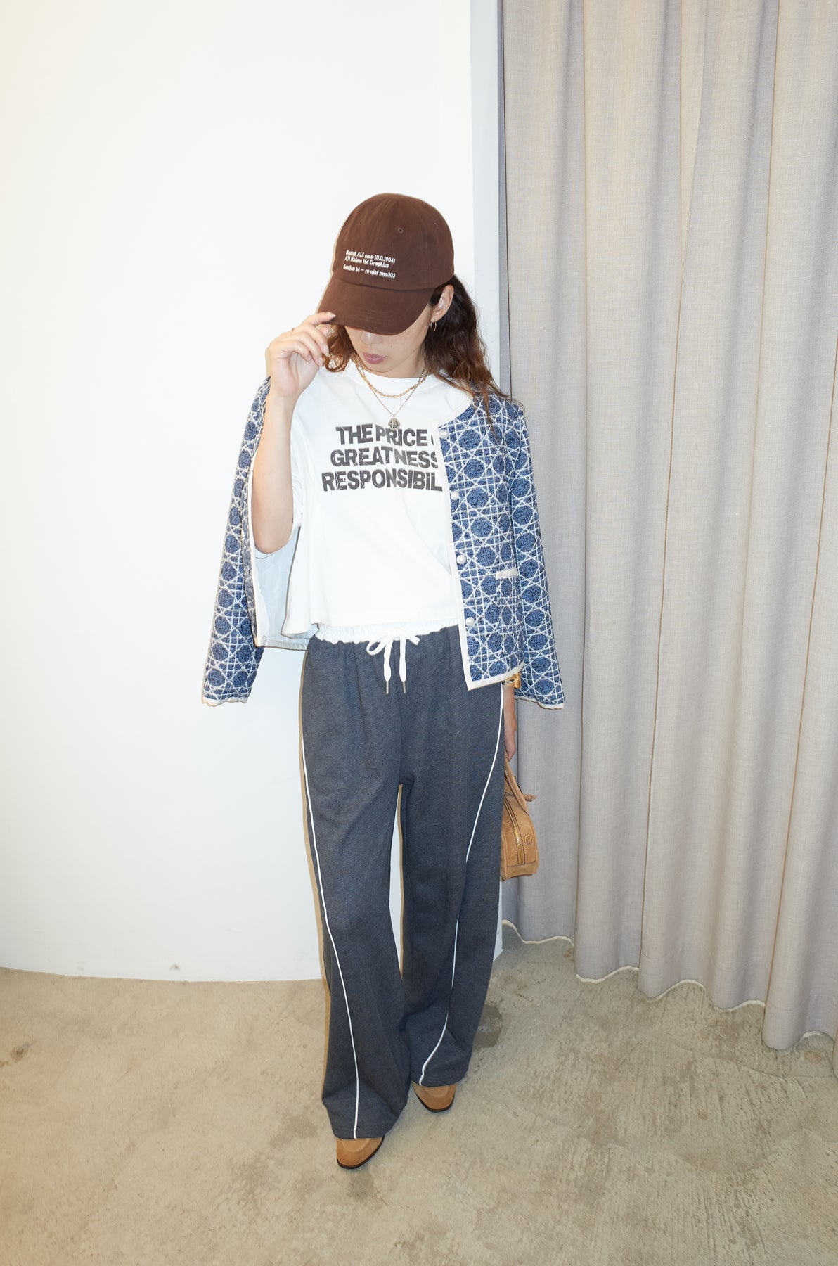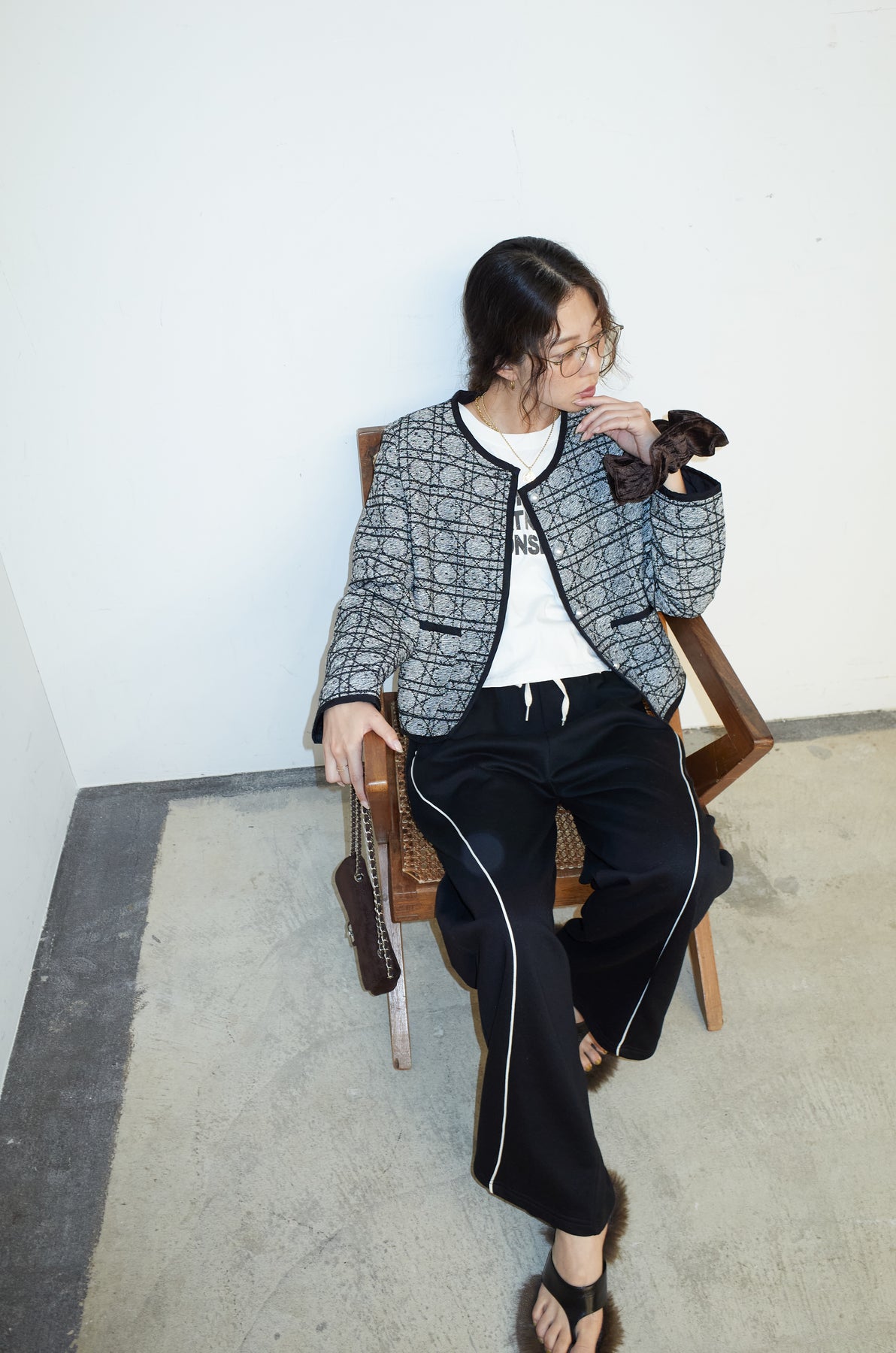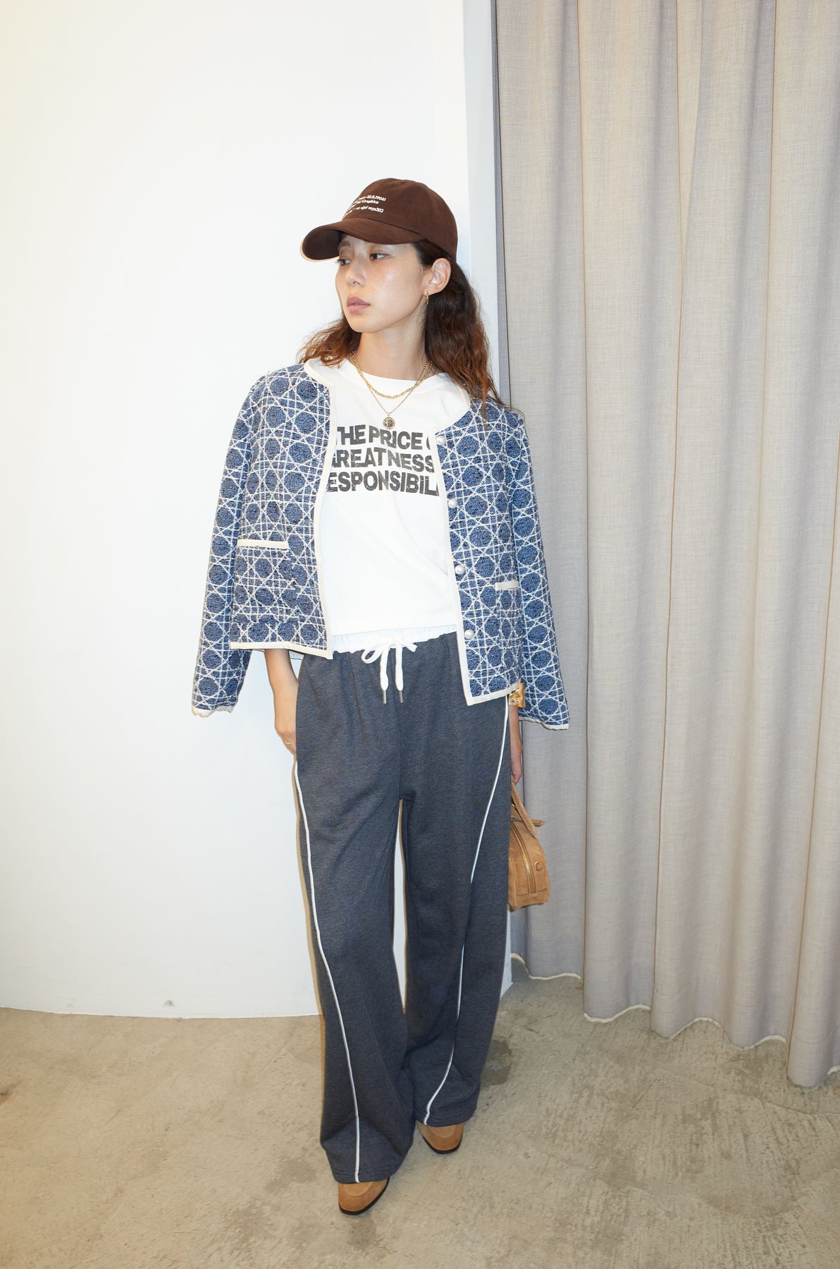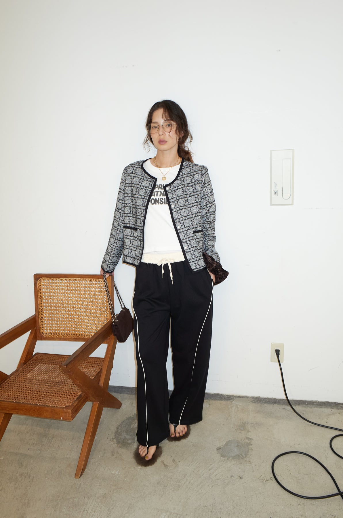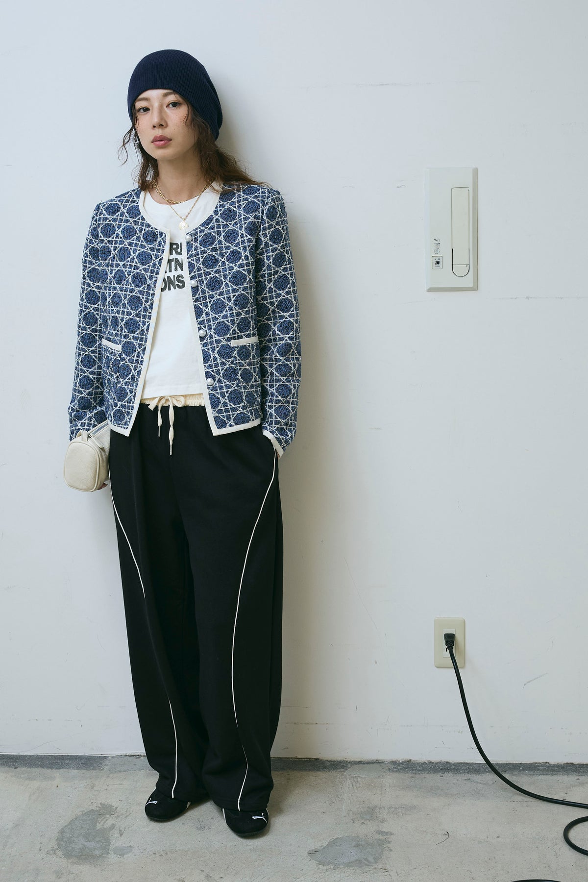 [予約/SET]パイピングジャガードJK+ピグメントロゴショート丈T+裏毛カーブラインワイドパンツ(3set)