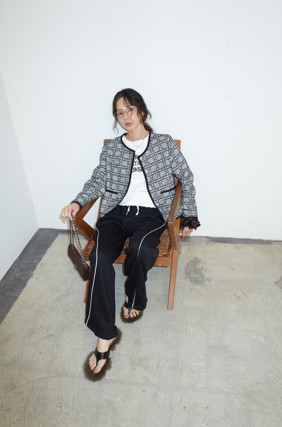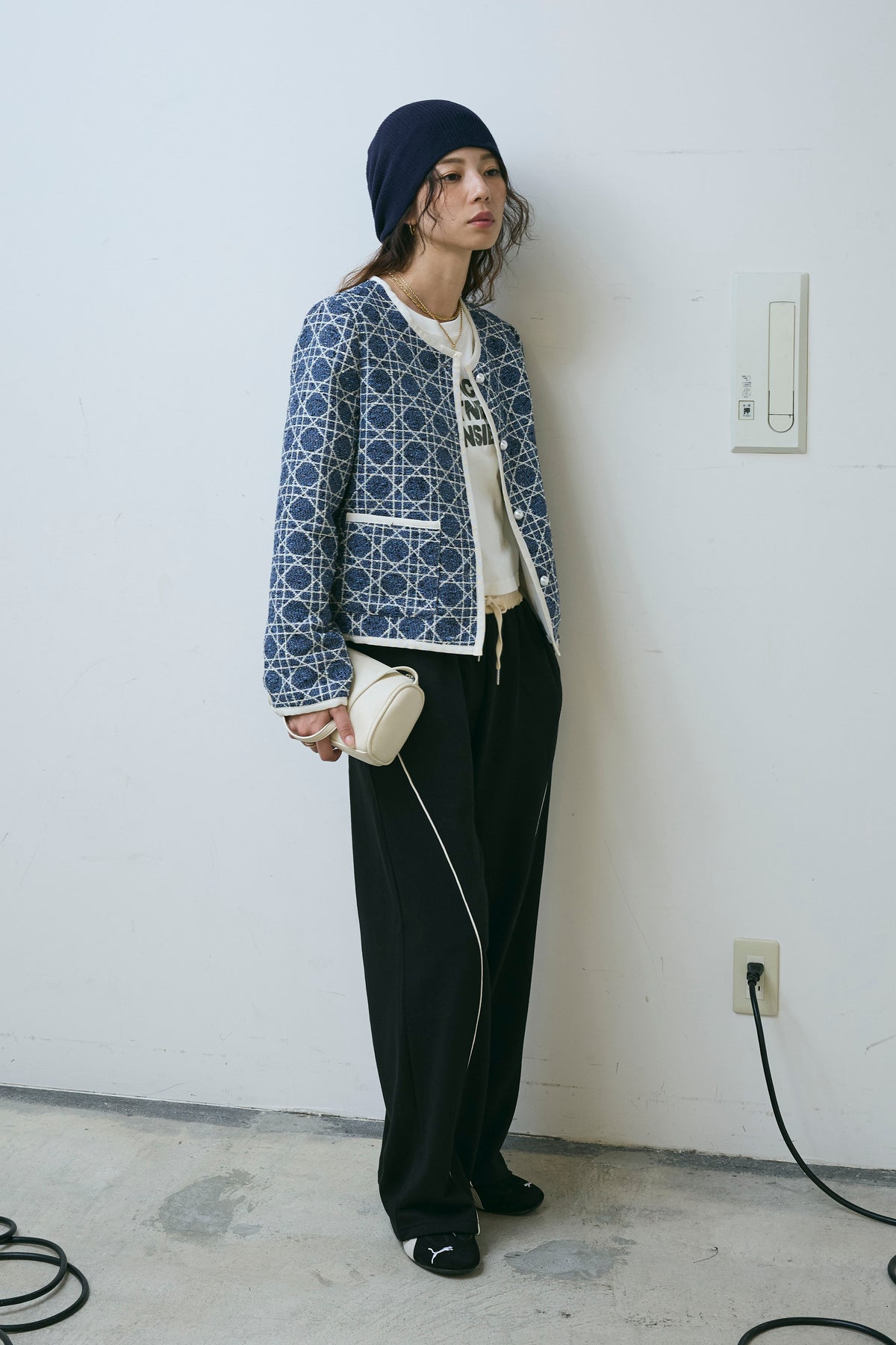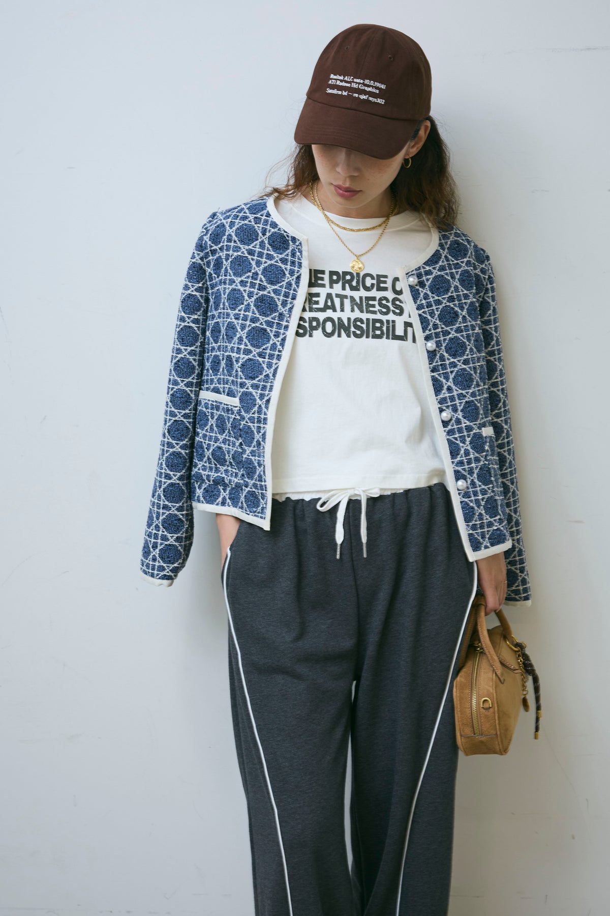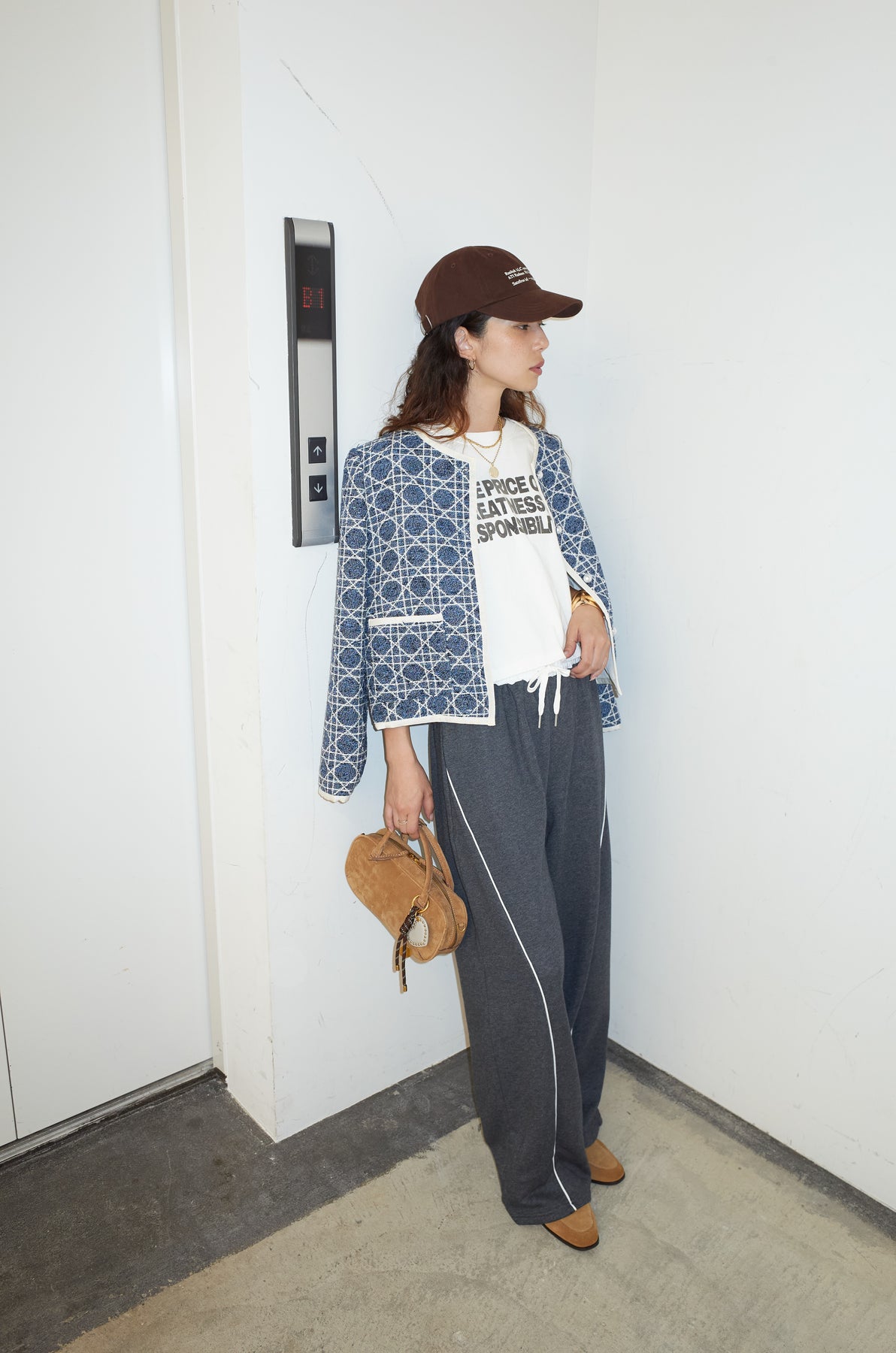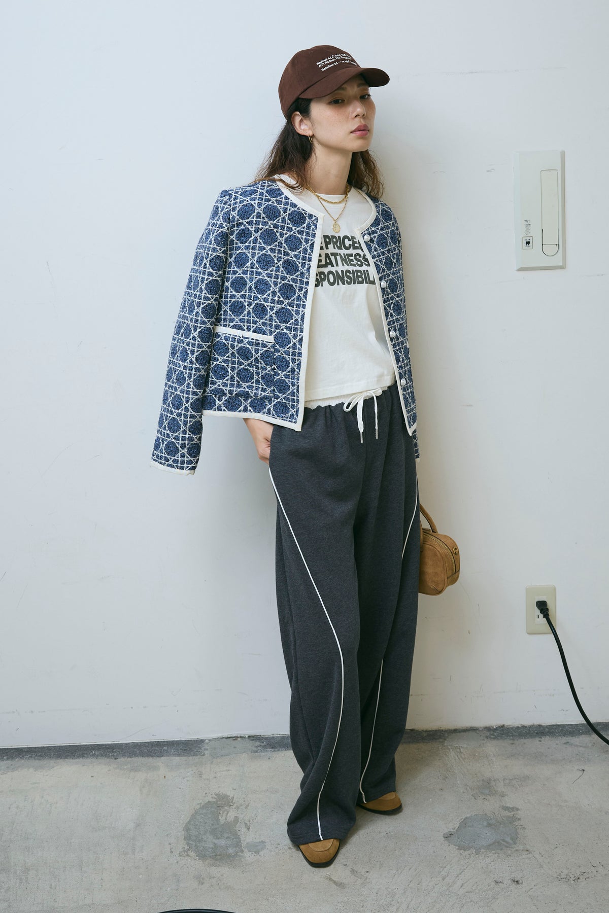 [予約/SET]パイピングジャガードJK+ピグメントロゴショート丈T+裏毛カーブラインワイドパンツ(3set)