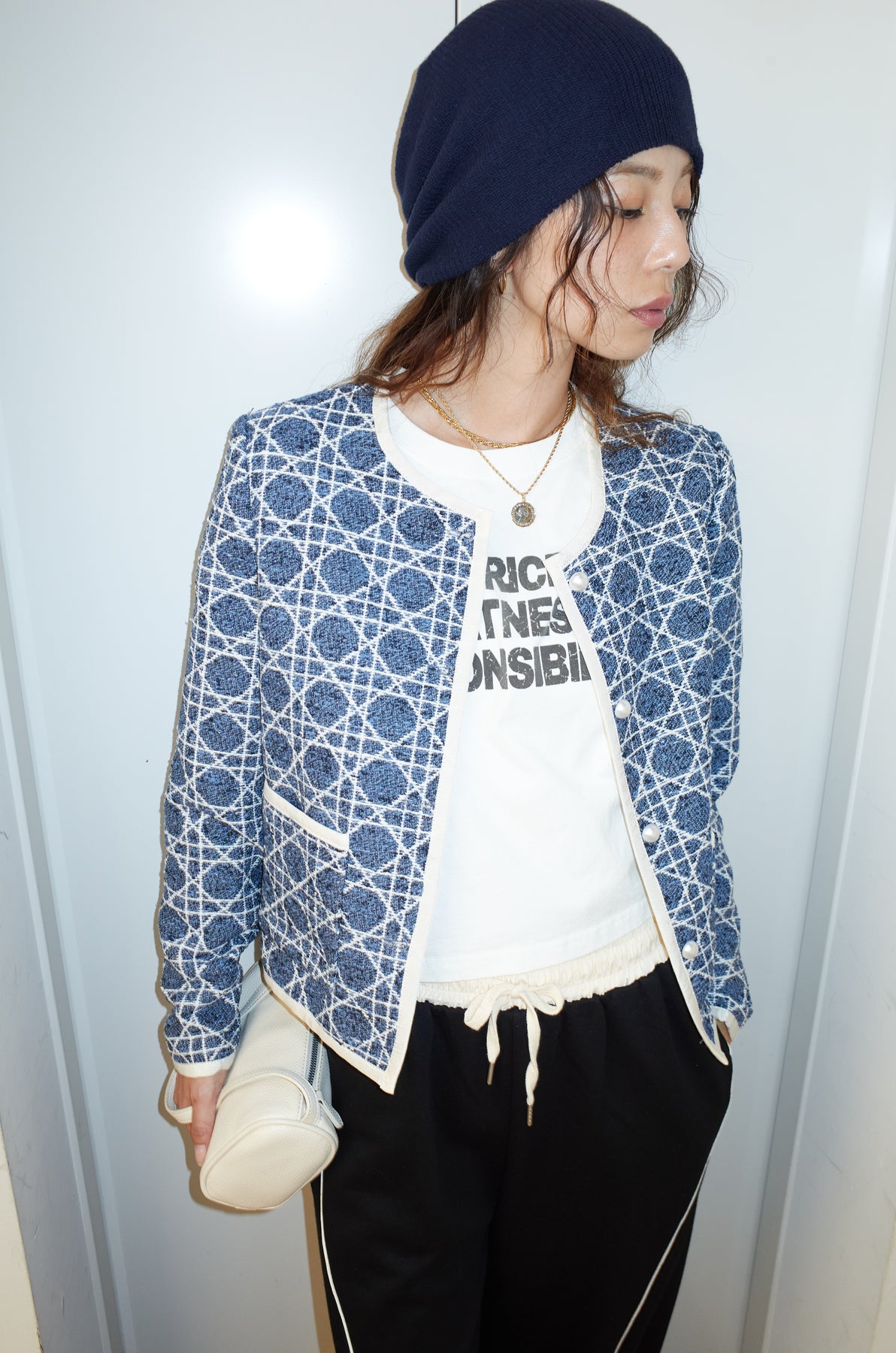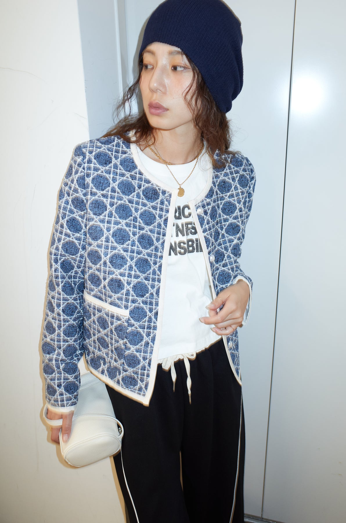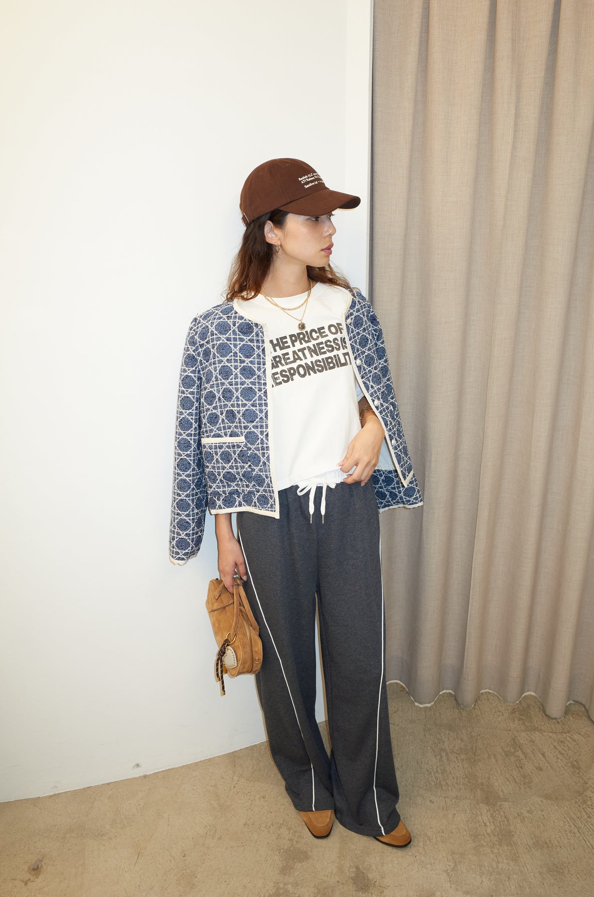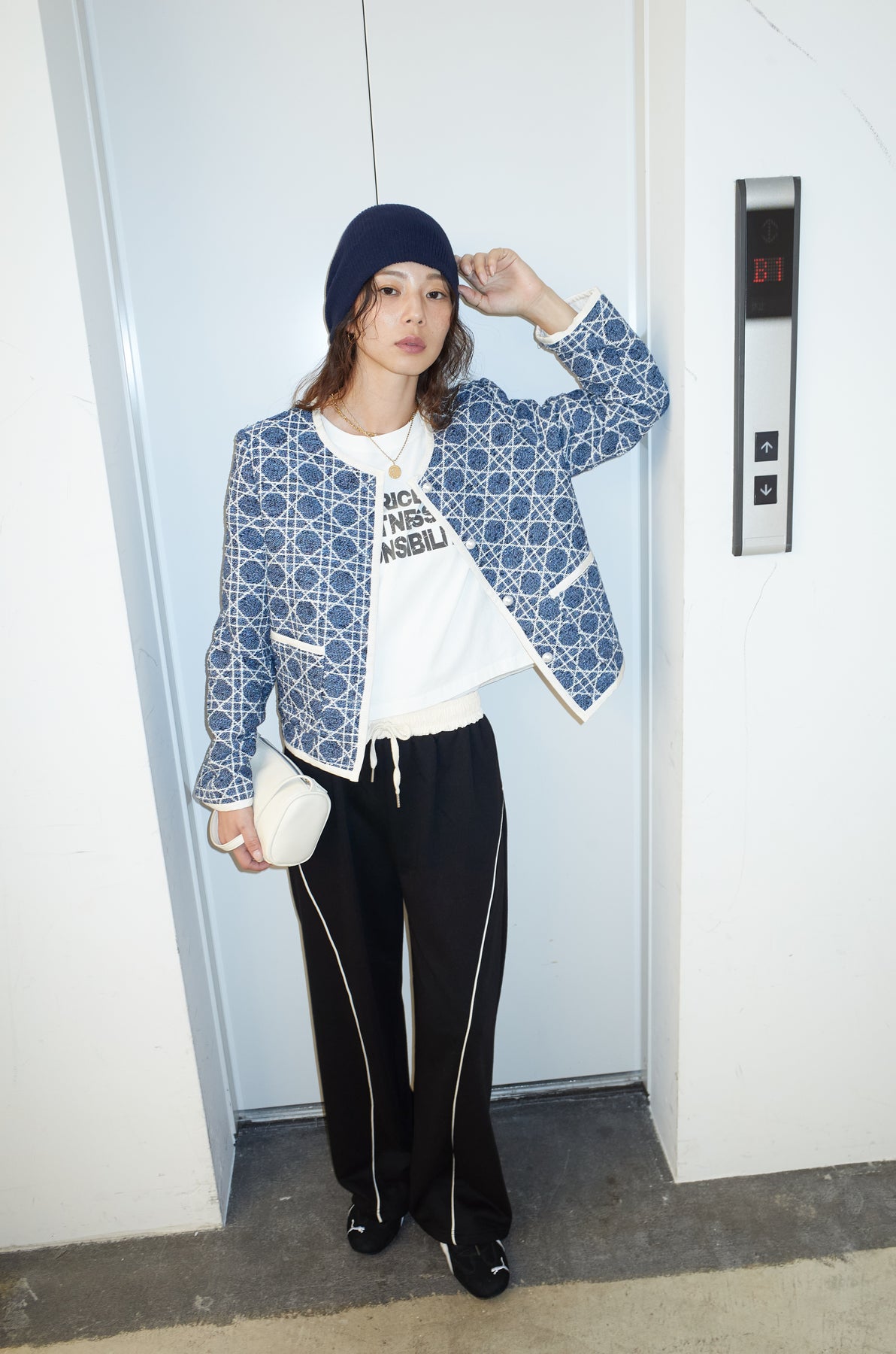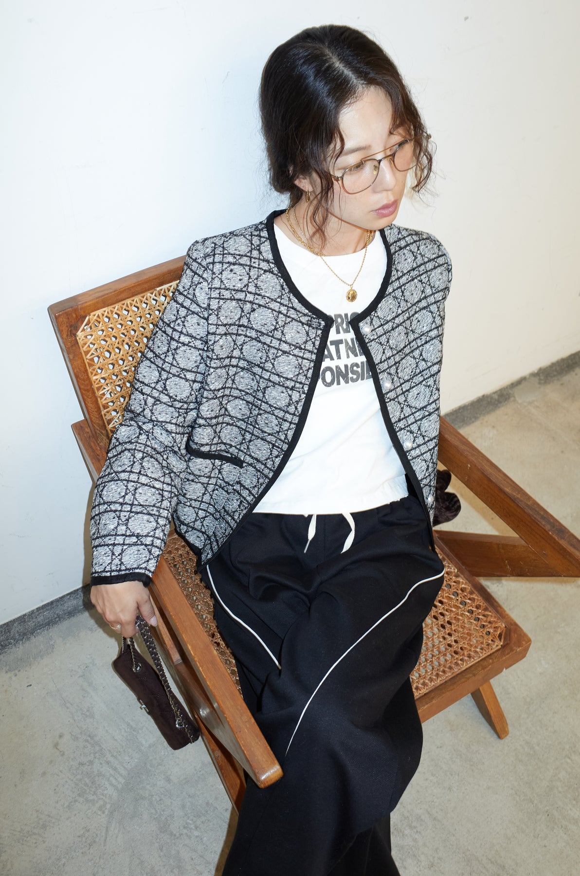 [予約/SET]パイピングジャガードJK+ピグメントロゴショート丈T+裏毛カーブラインワイドパンツ(3set)