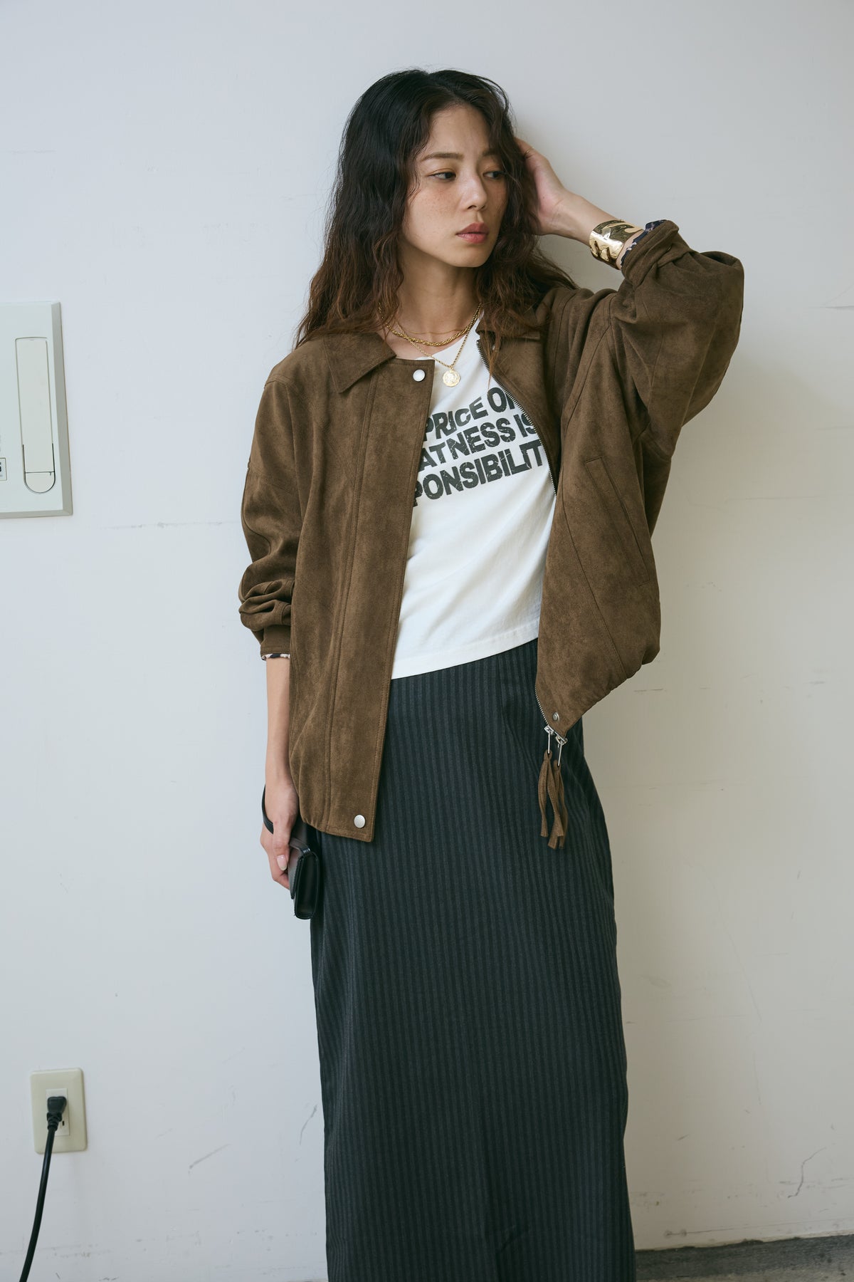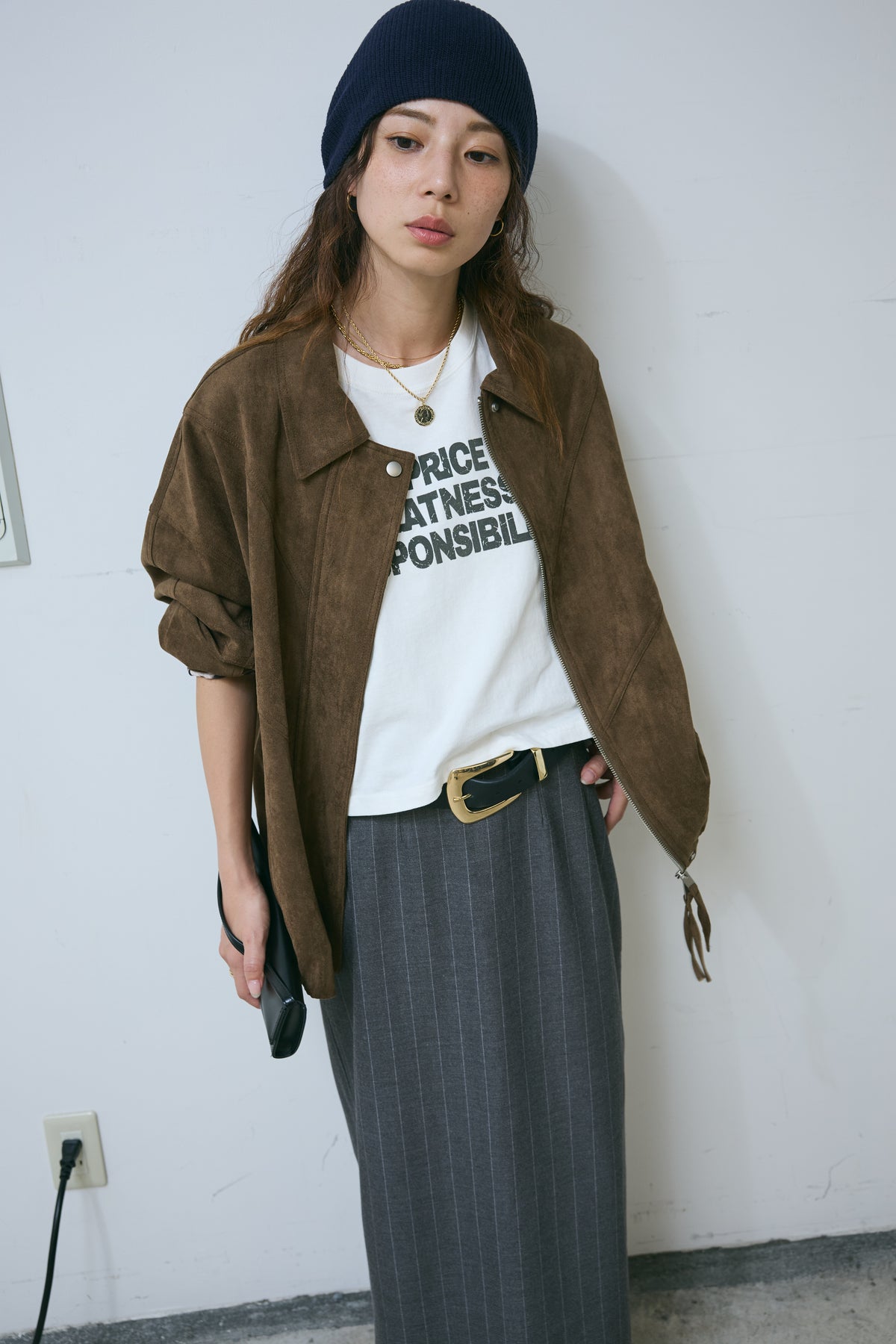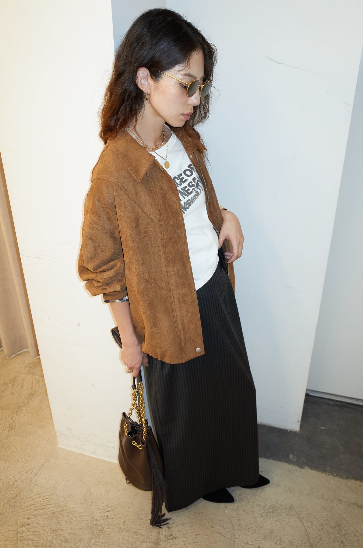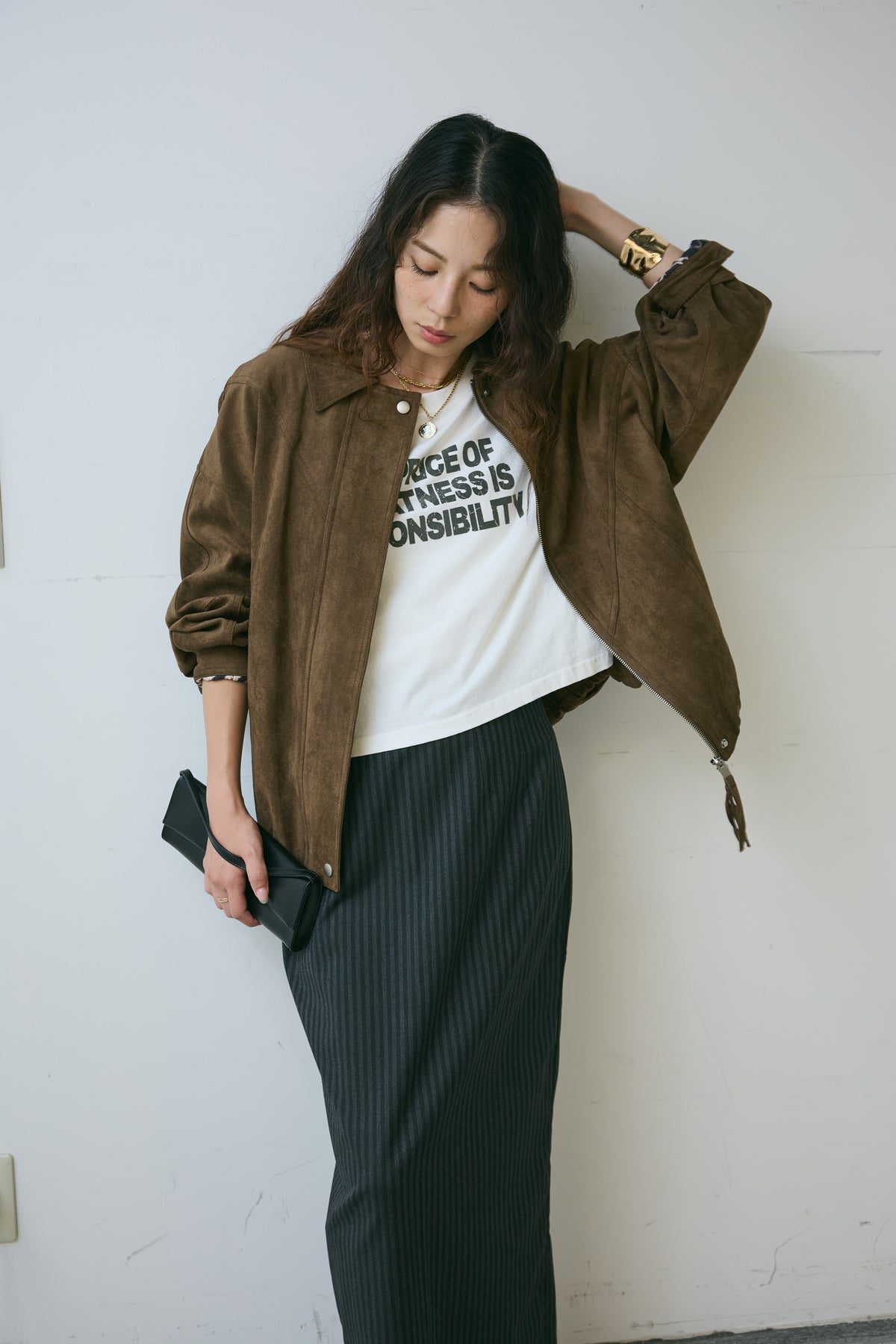 [予約/SET]フェイクスウェードブルゾン+ピグメントロゴショート丈T(2set)