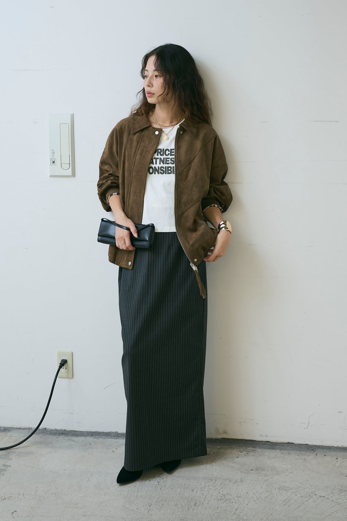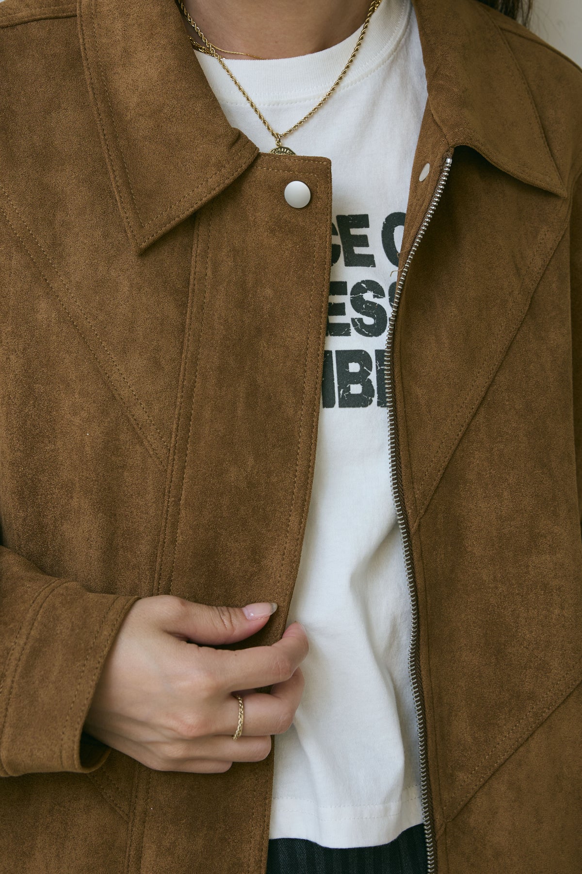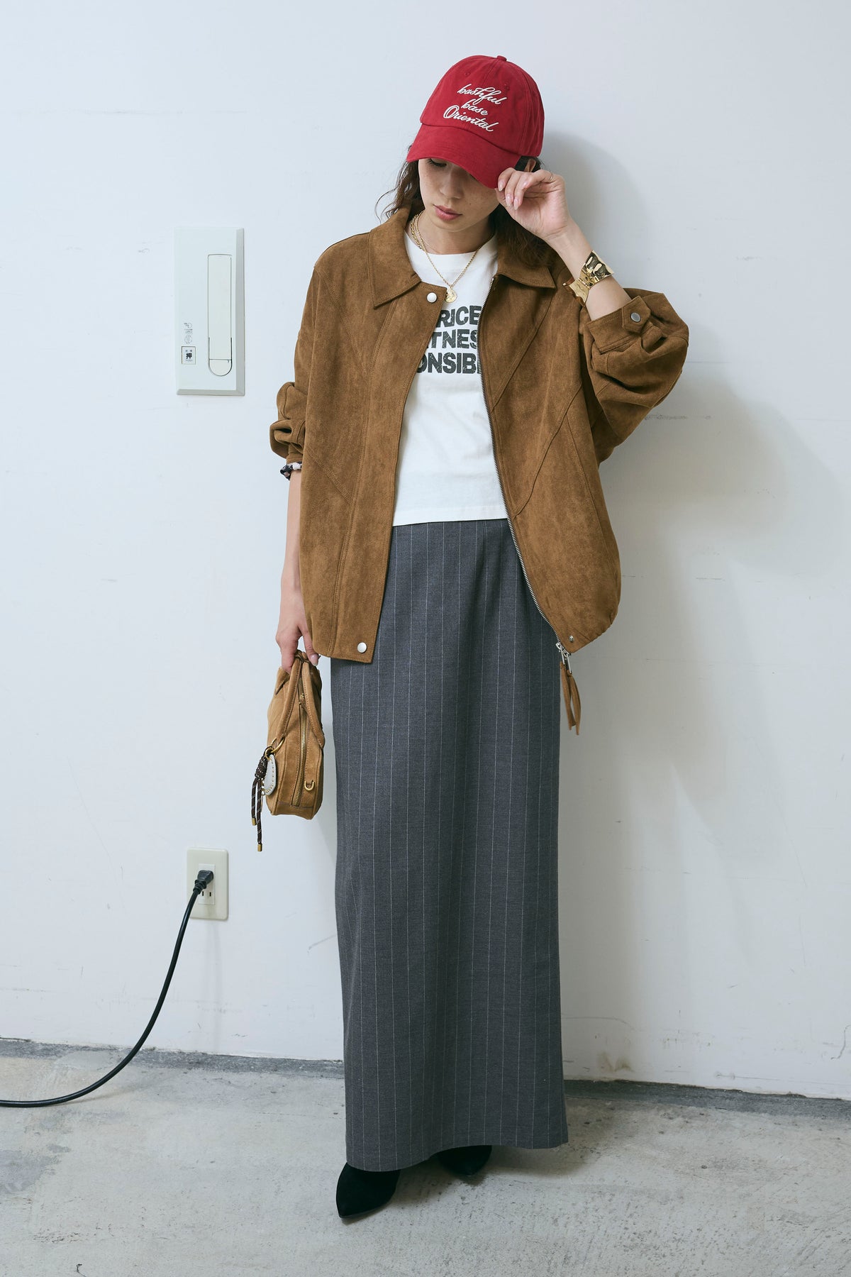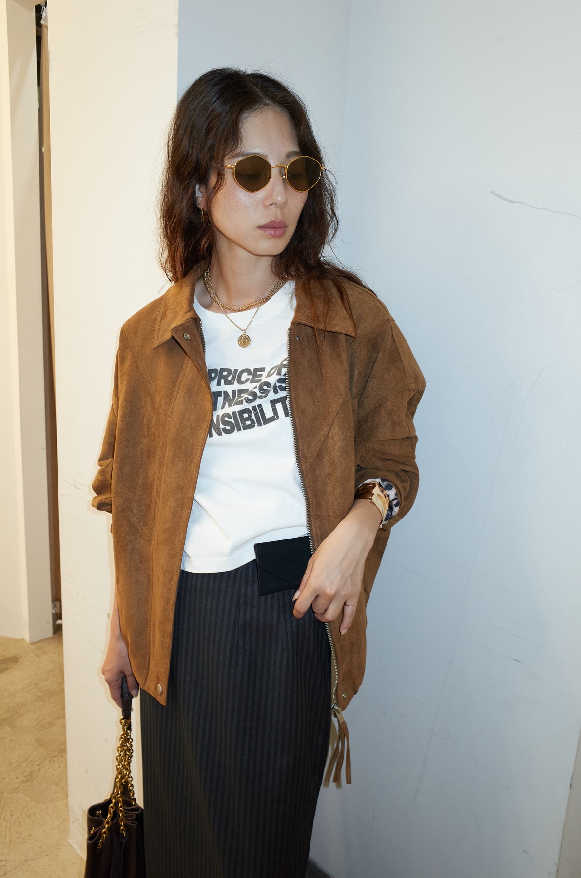 [予約/SET]フェイクスウェードブルゾン+ピグメントロゴショート丈T(2set)