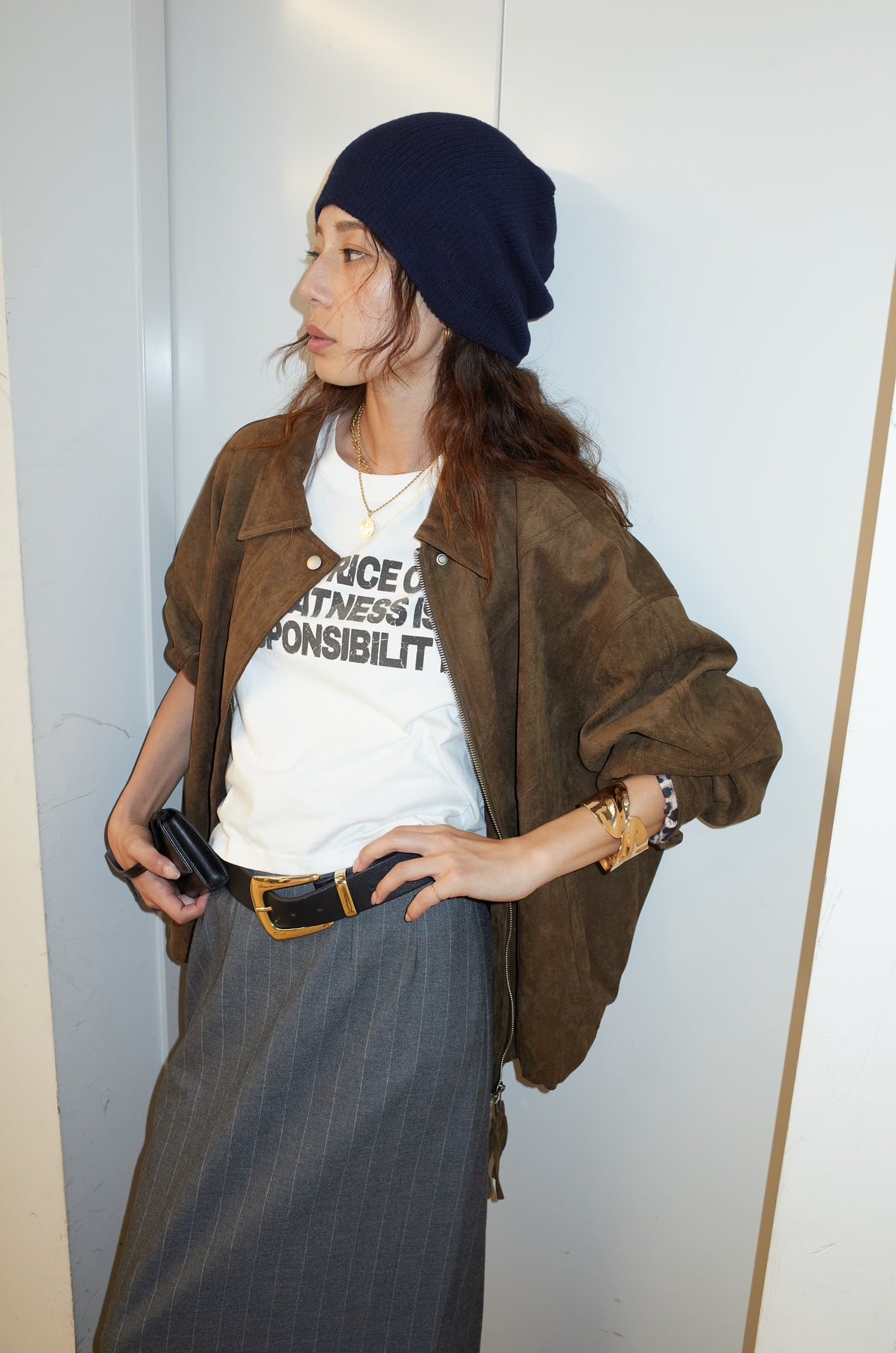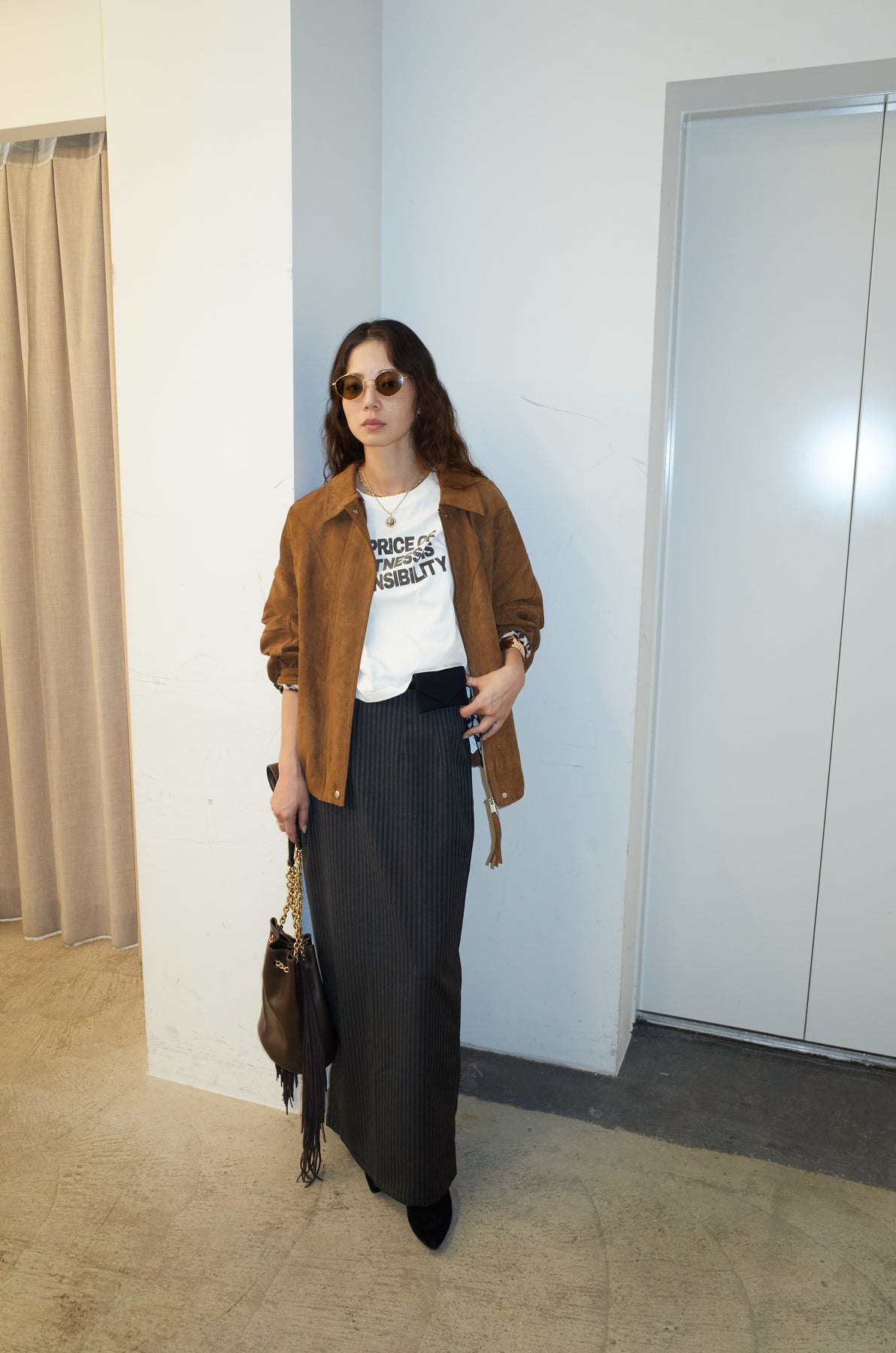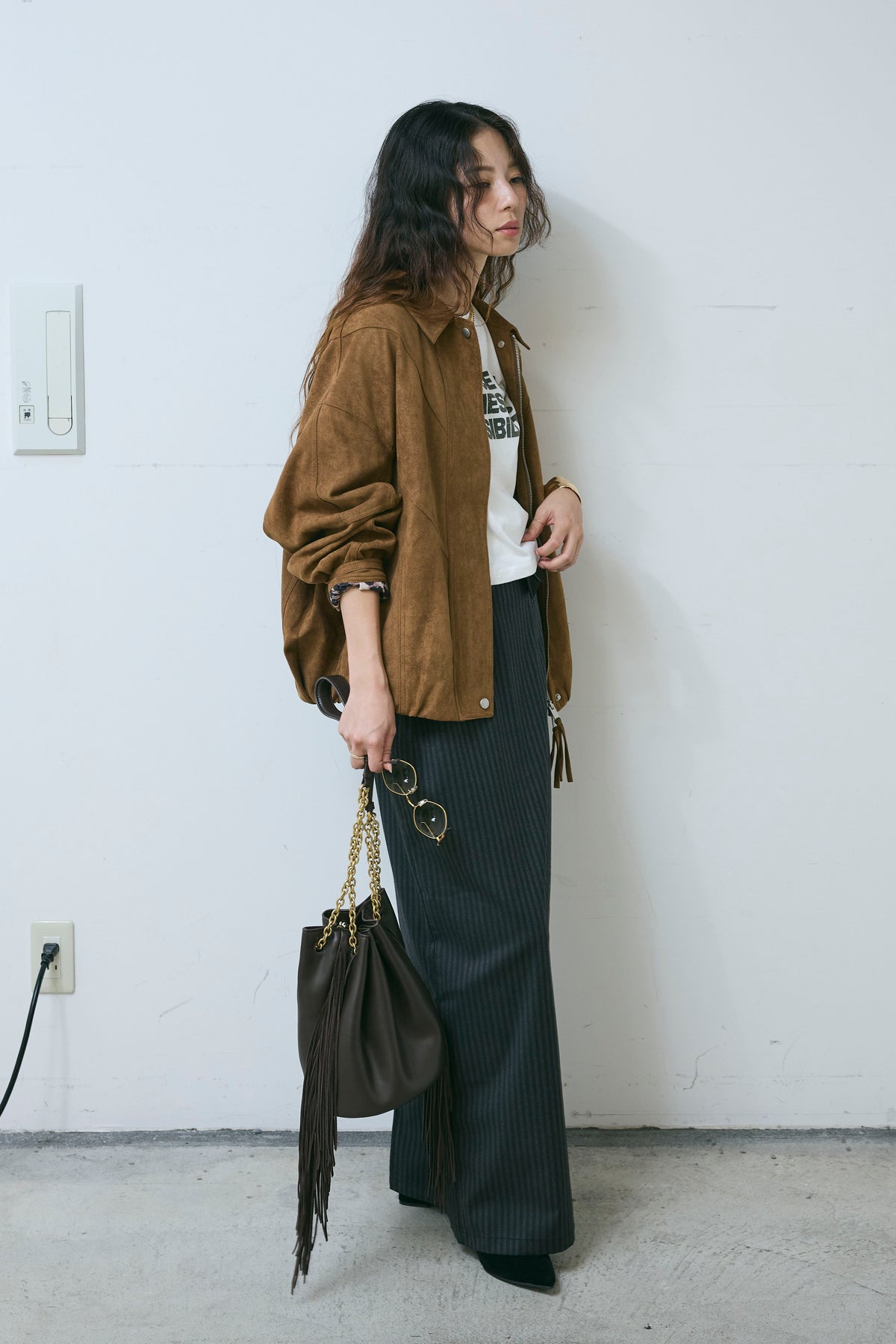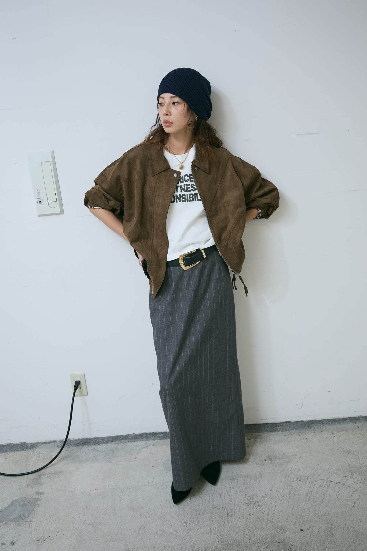 [予約/SET]フェイクスウェードブルゾン+ピグメントロゴショート丈T(2set)