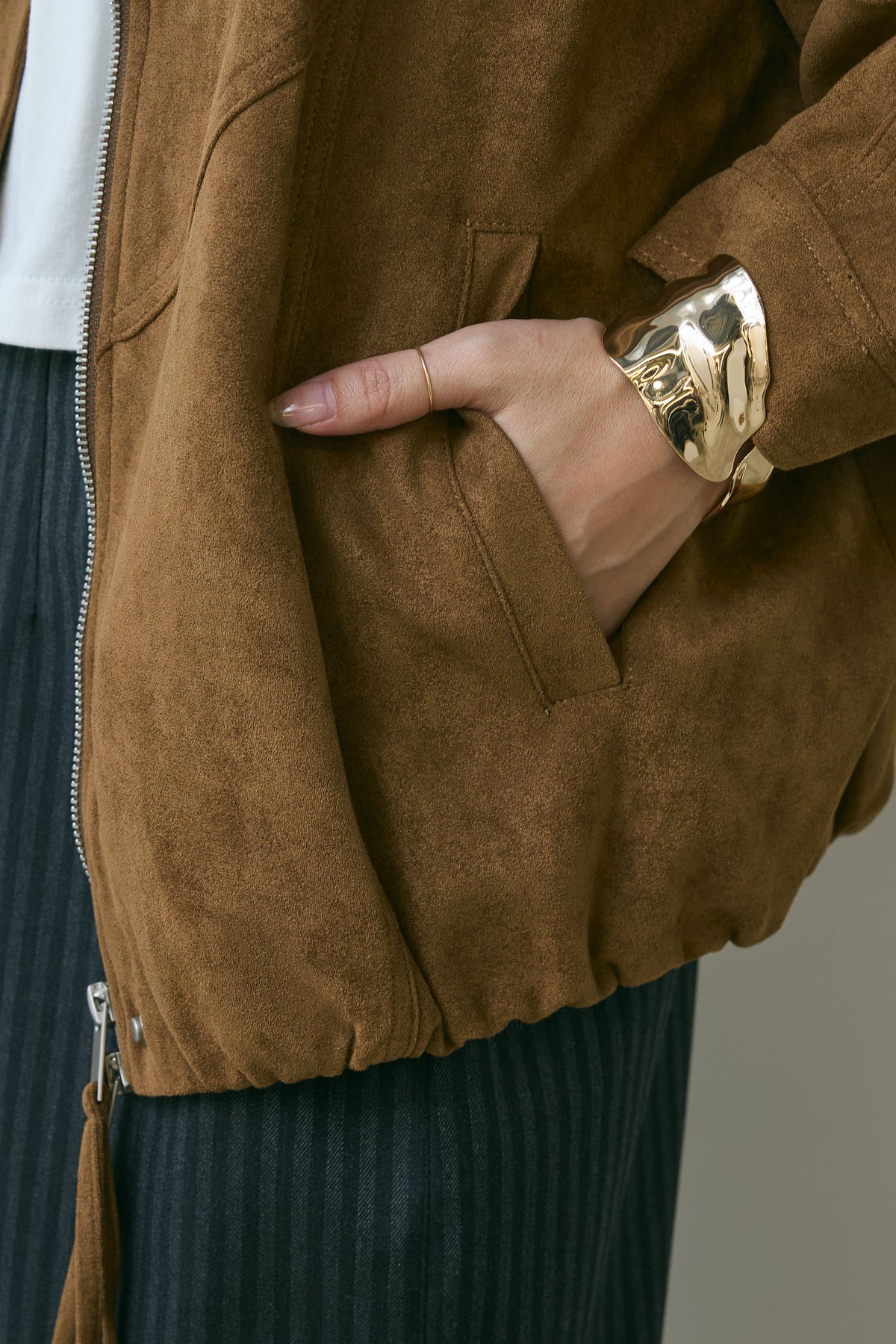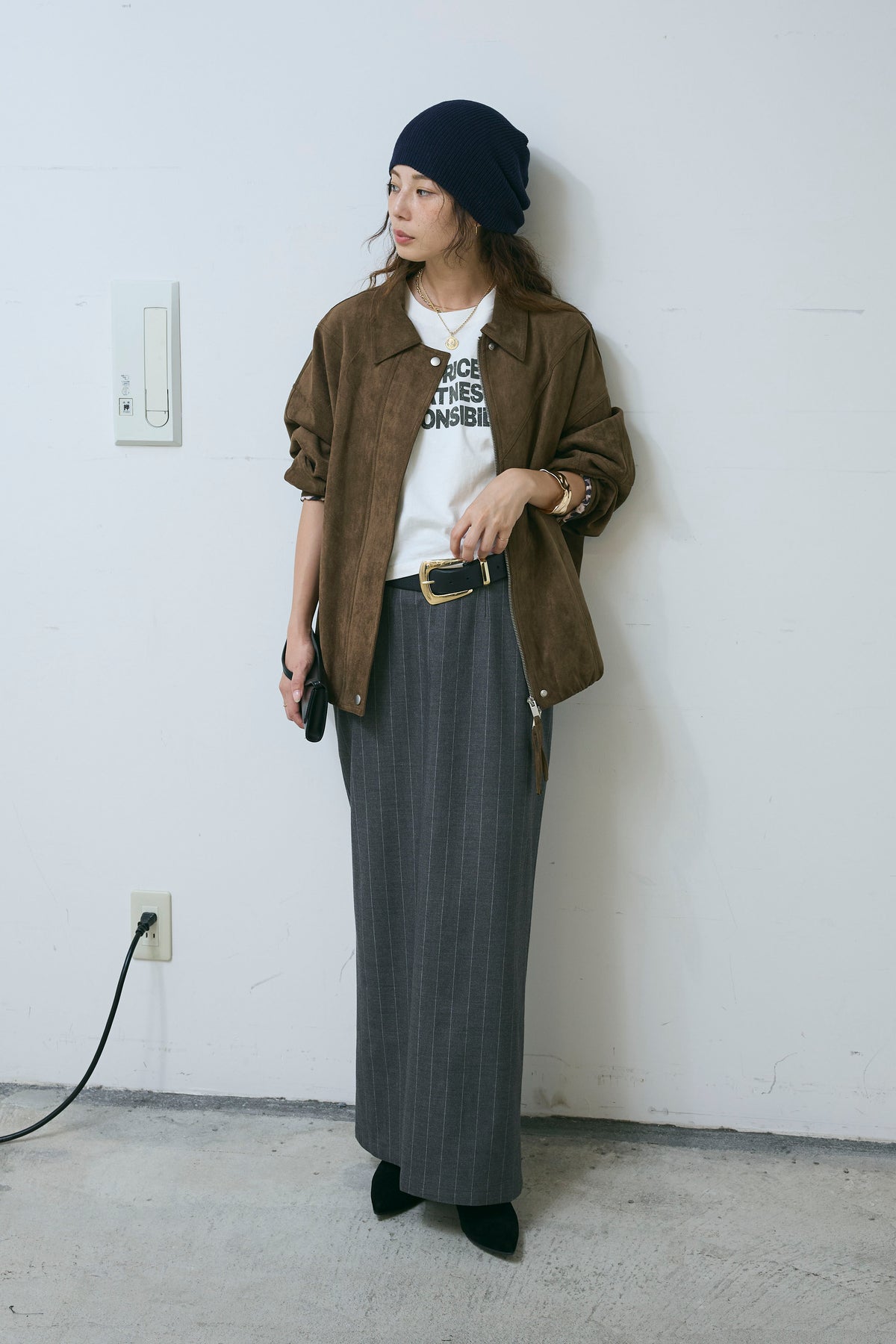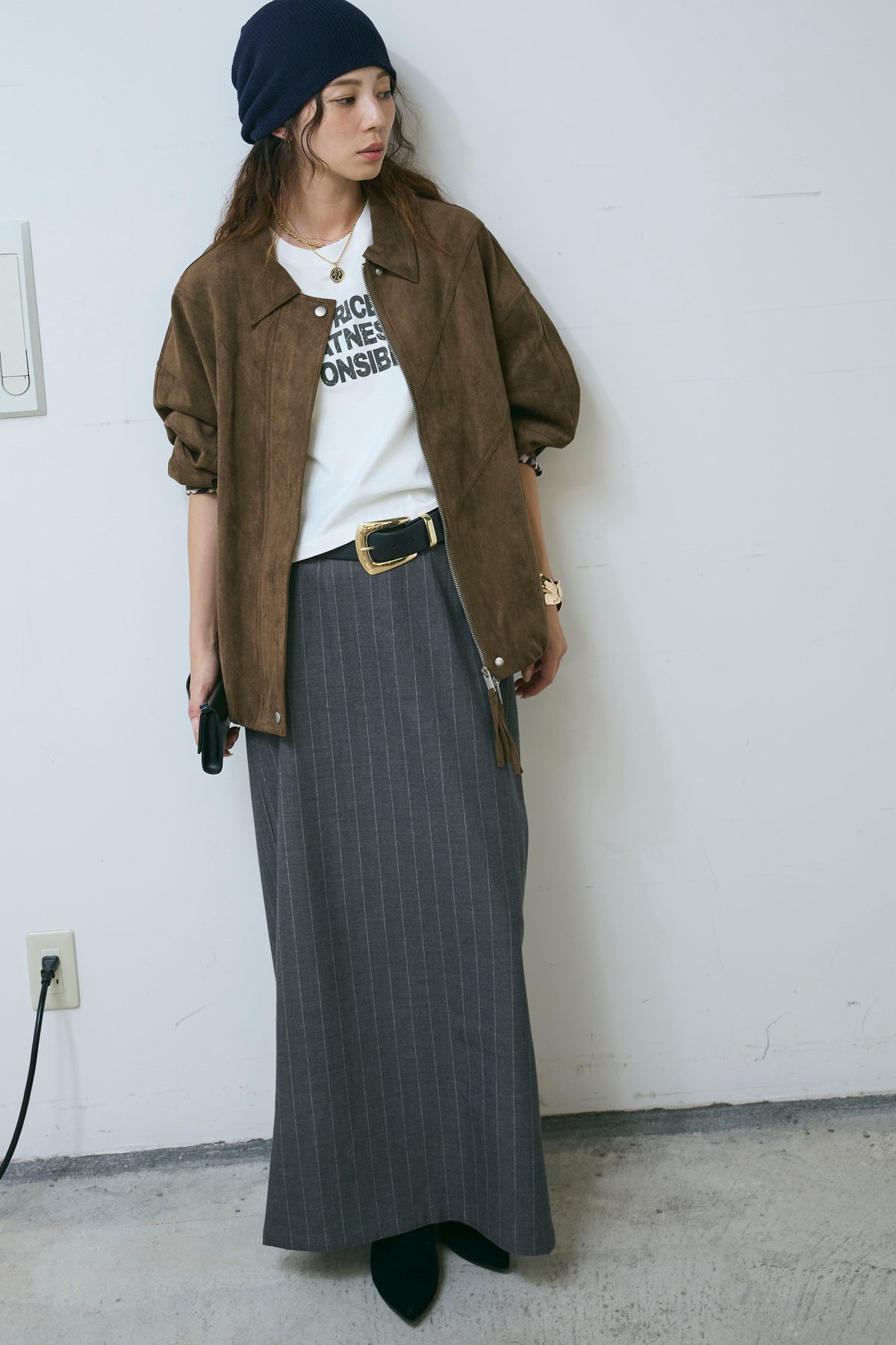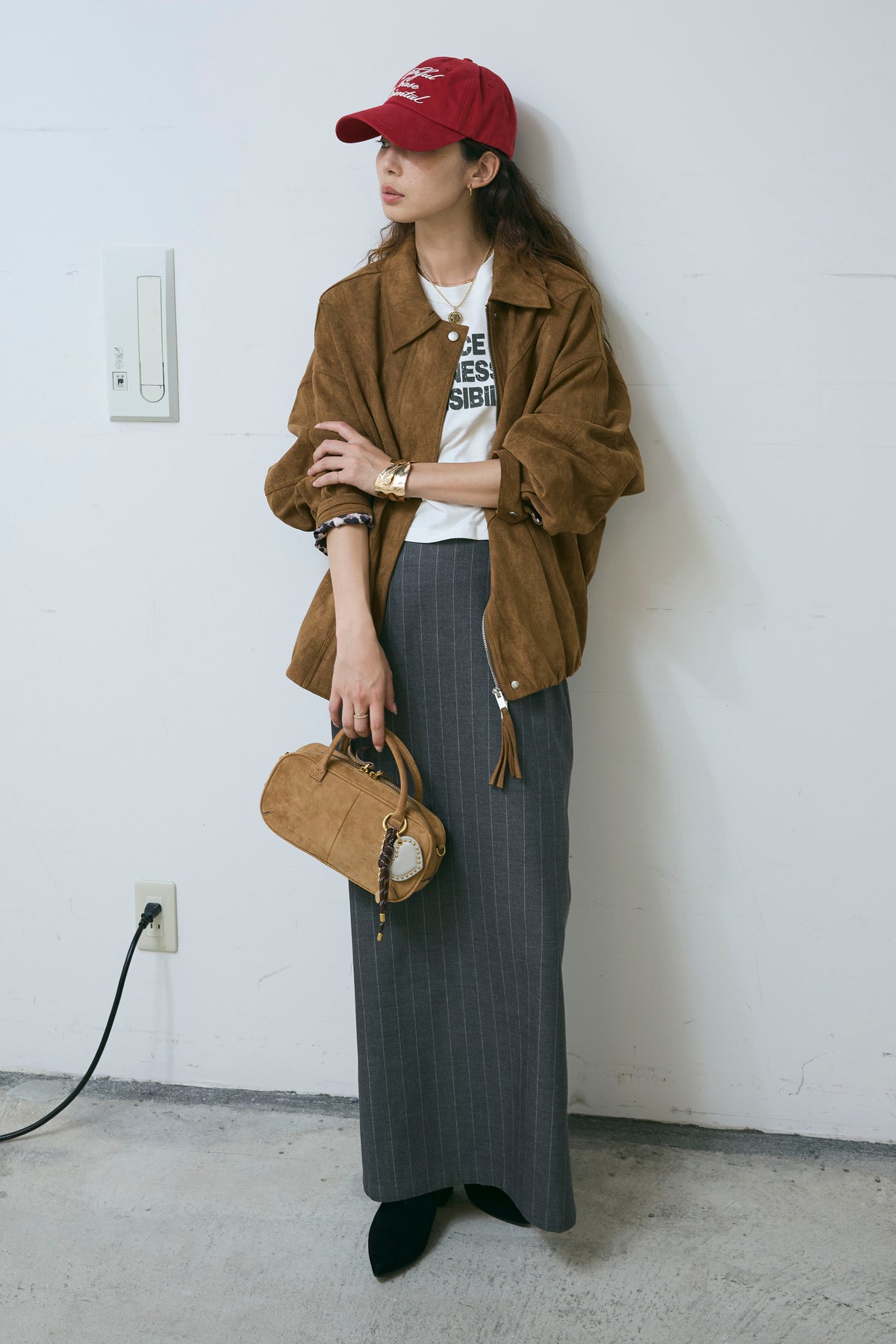 [予約/SET]フェイクスウェードブルゾン+ピグメントロゴショート丈T(2set)