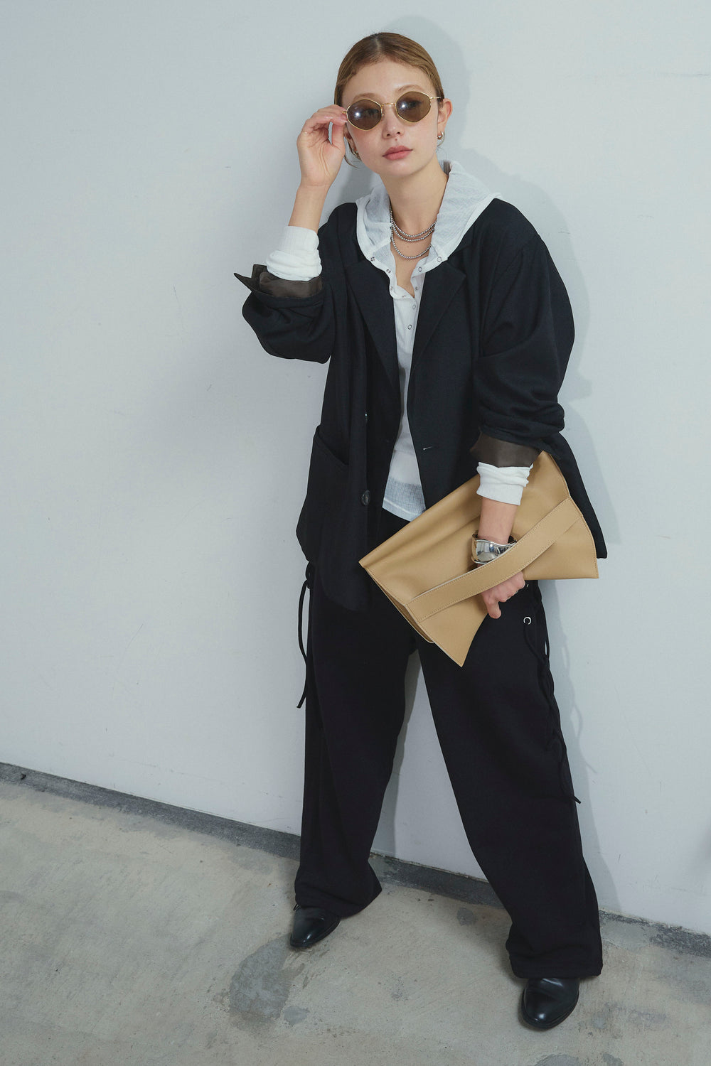[予約/SET]ヘザーツイルダブルジャケット+シアーレーストップス+サイドレースアップスウェットパンツ(3set)
