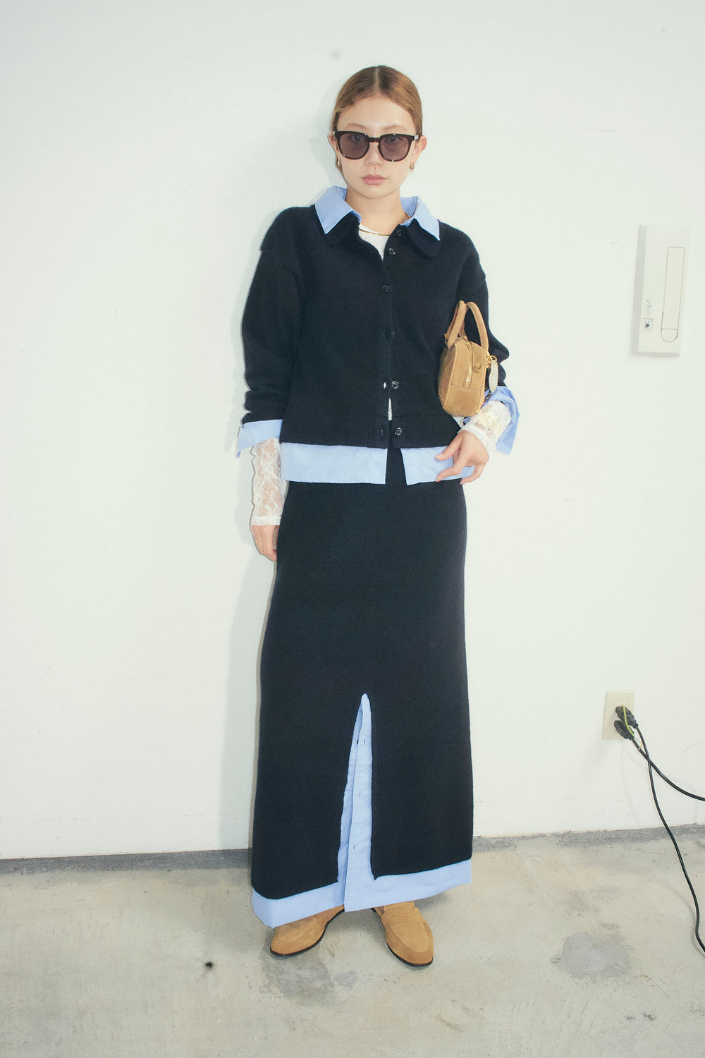 [予約/SET]シャツレイヤードライクニットカーデ+シャツレイヤードライクニットスカート(2set)