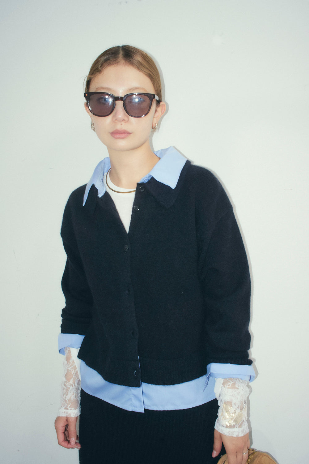 [予約/SET]シャツレイヤードライクニットカーデ+袖レースレイヤードプルオーバー+シャツレイヤードライクニットスカート(3set)
