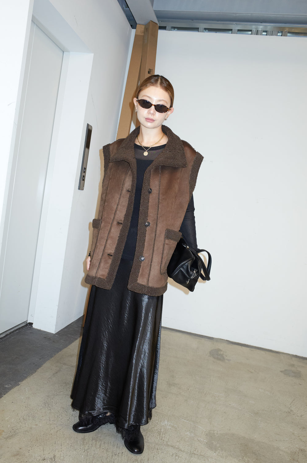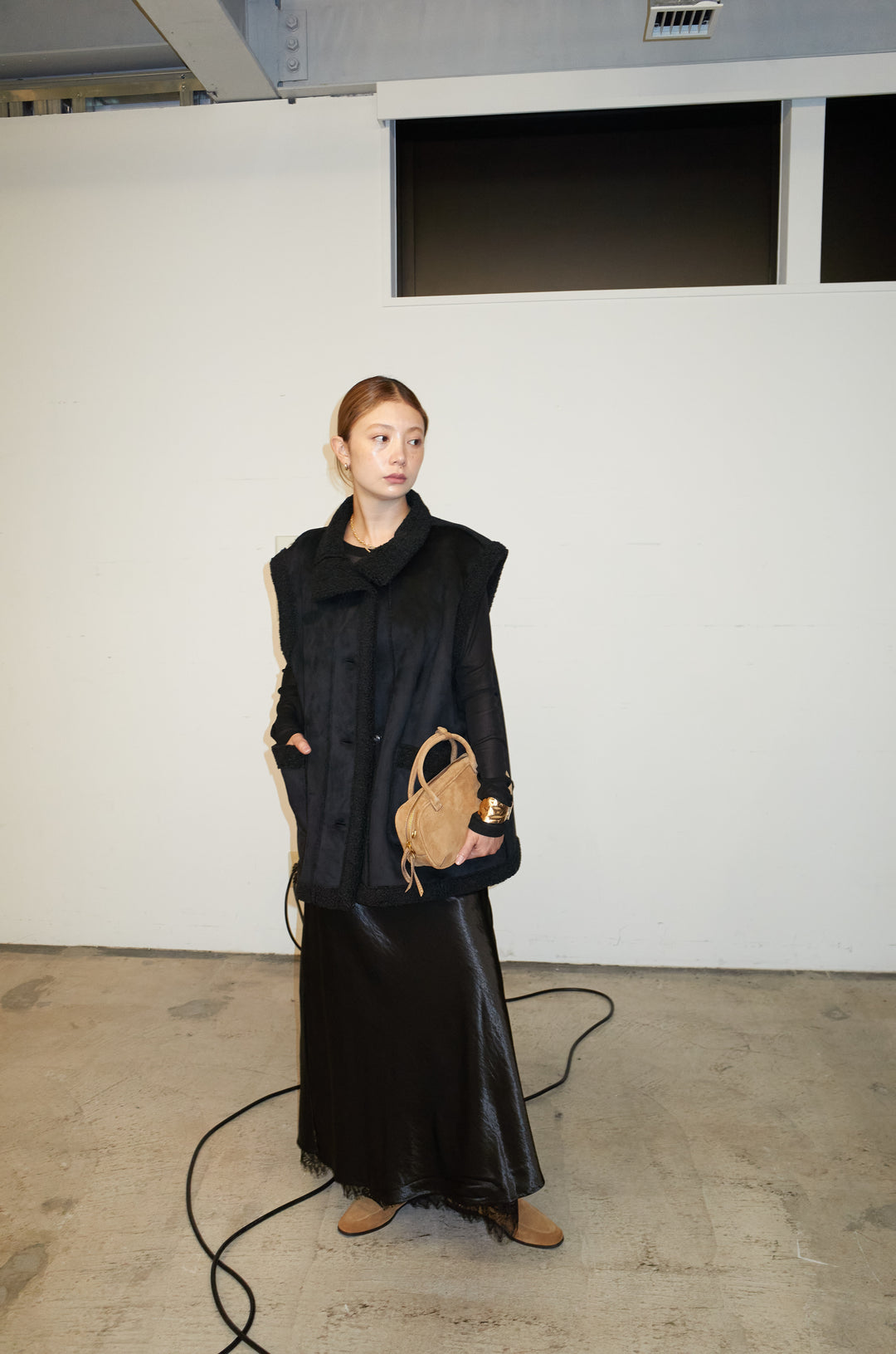 [予約/SET]ボアベスト+ラウンドバックシアートップス+裾レースサテンスカート(3set)