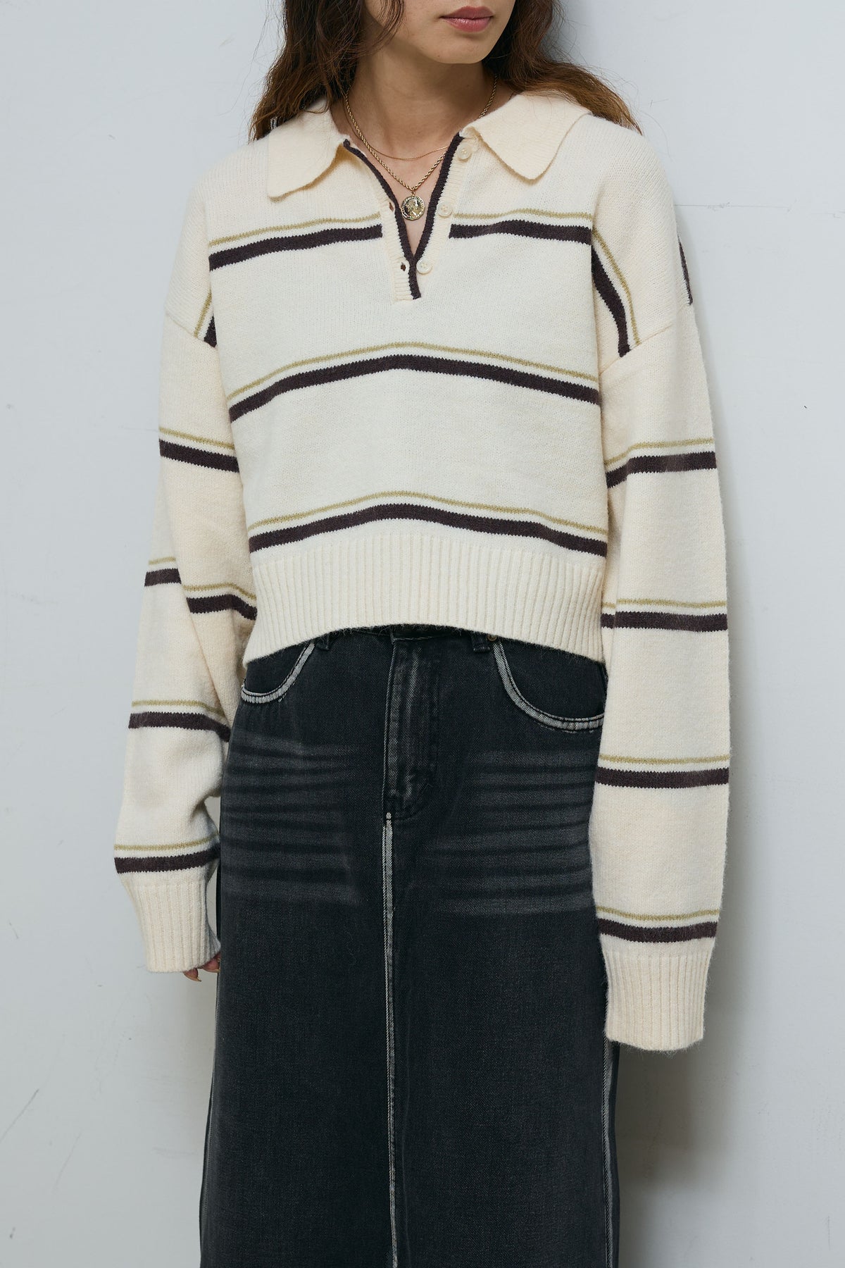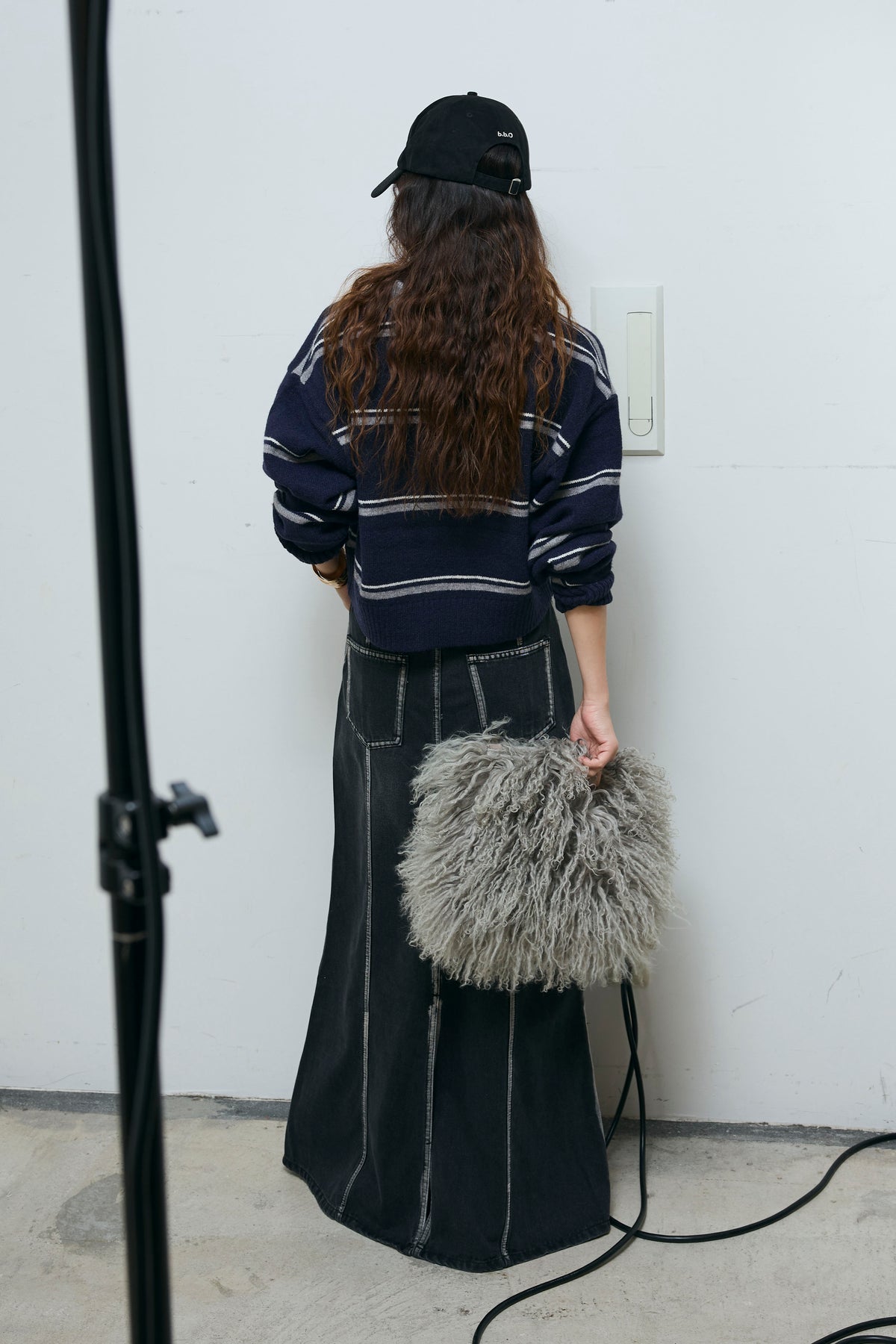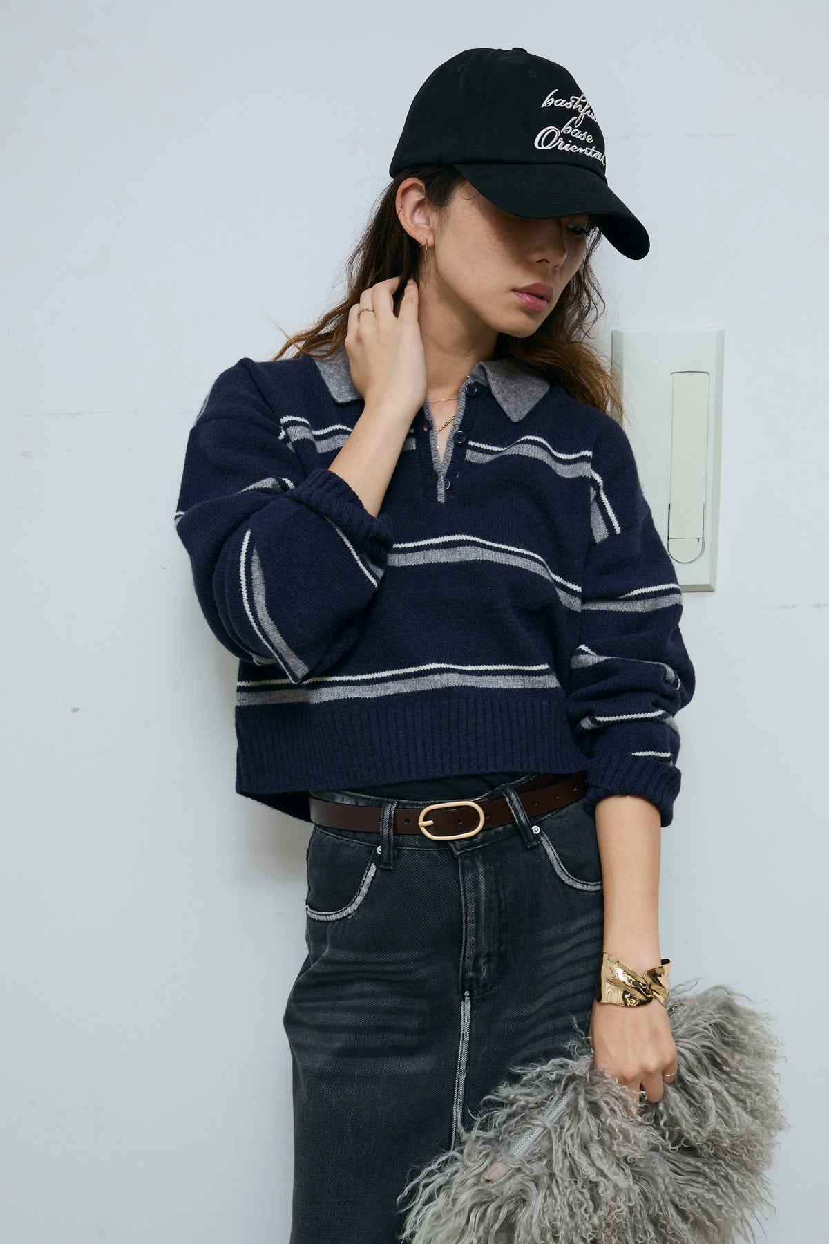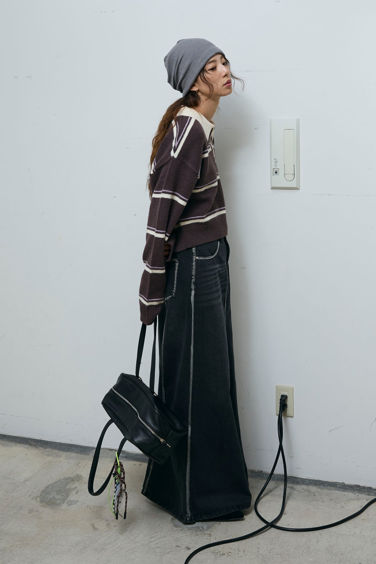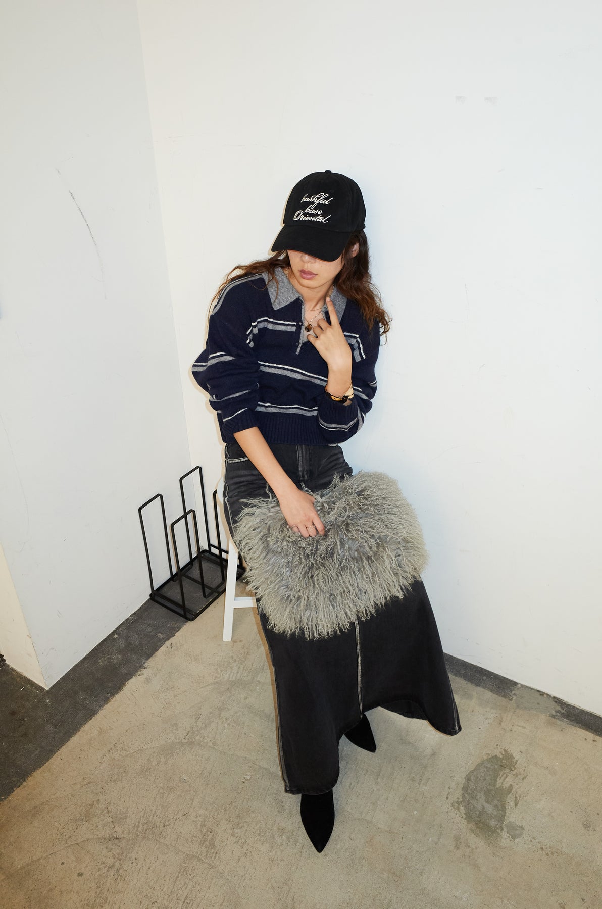 [予約/SET]ボーダーポロニット+ベルト付きデニムロングスカート(2set)