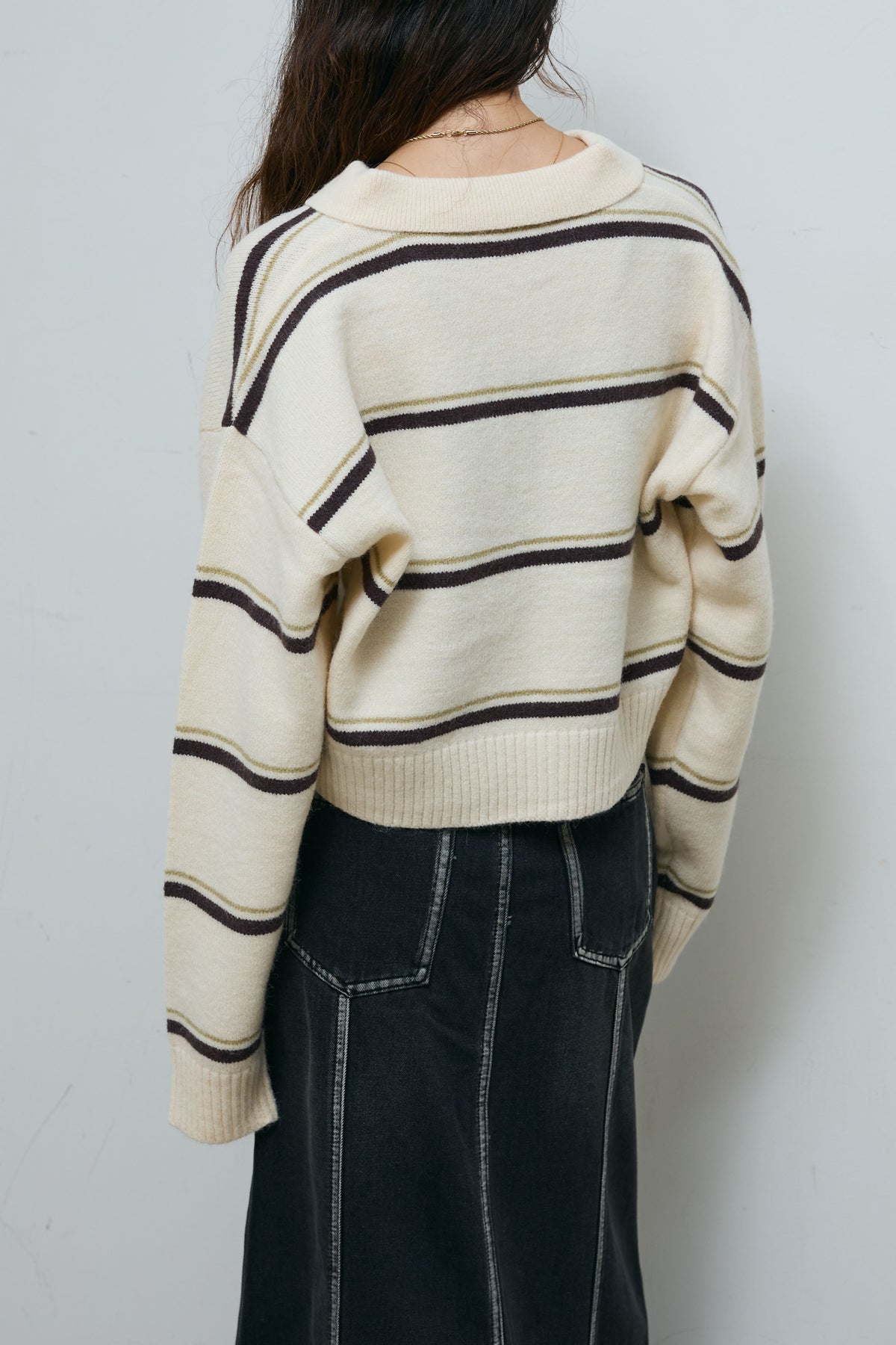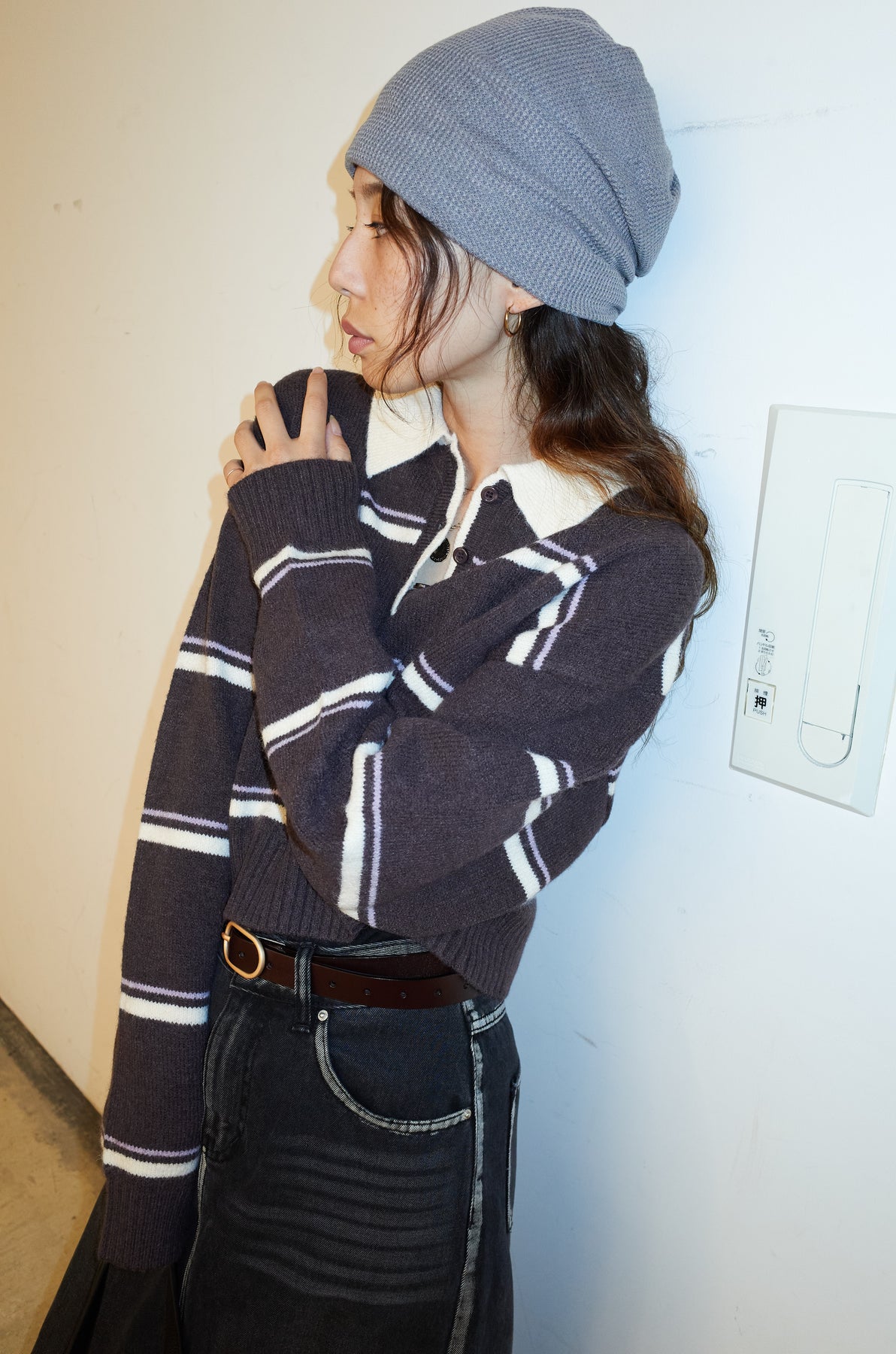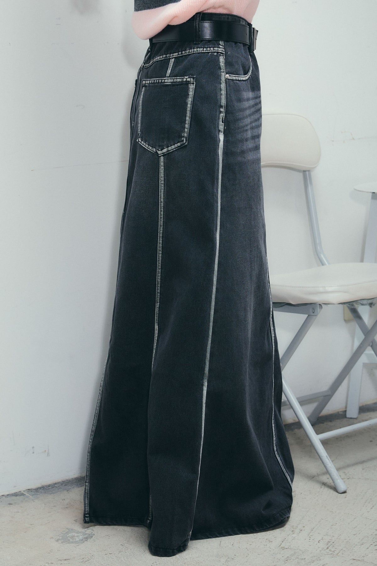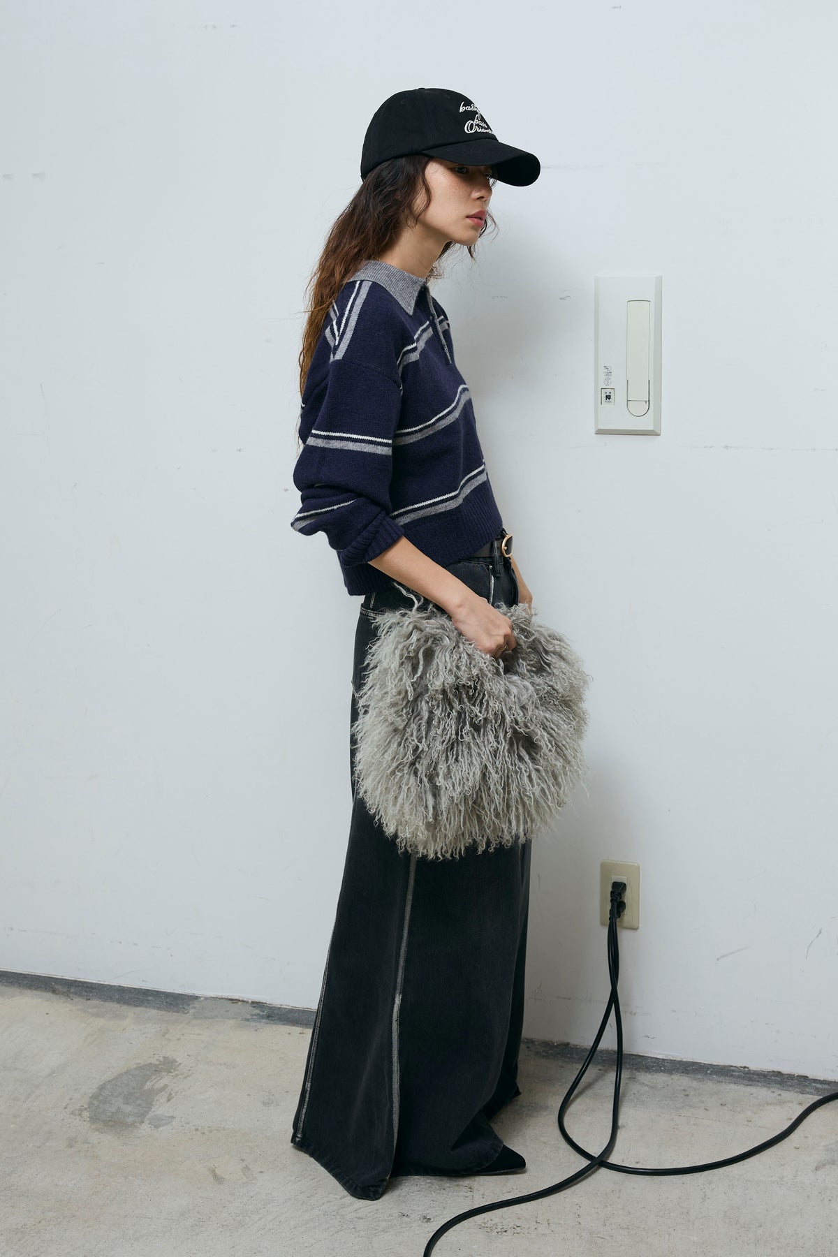 [予約/SET]ボーダーポロニット+ベルト付きデニムロングスカート(2set)