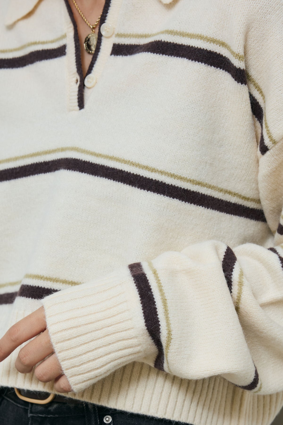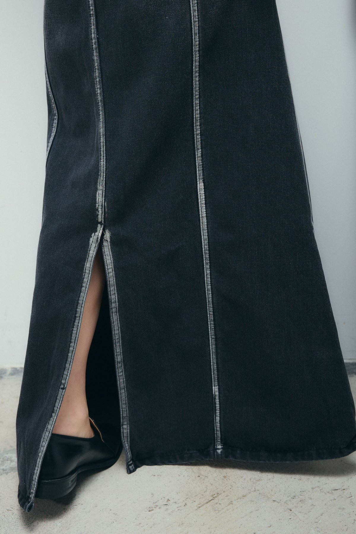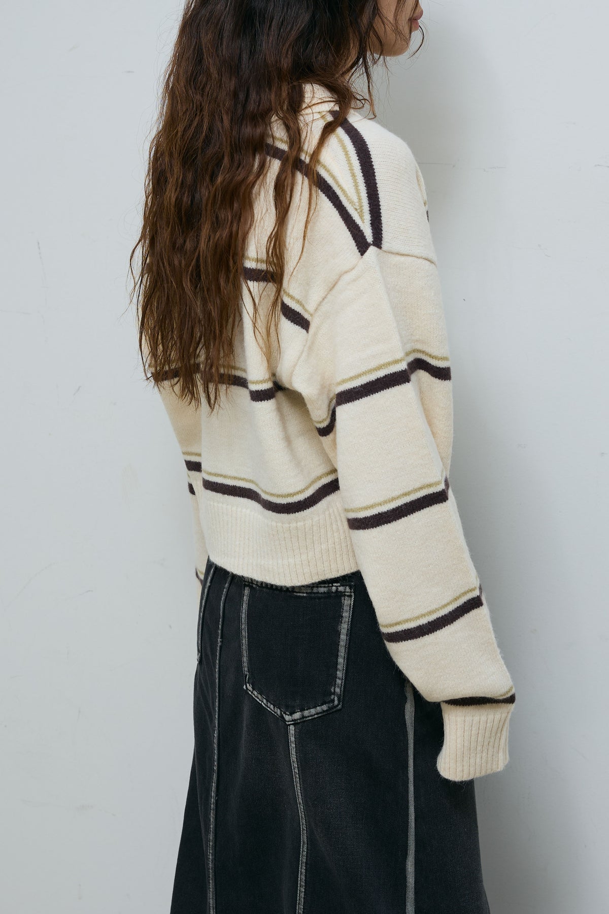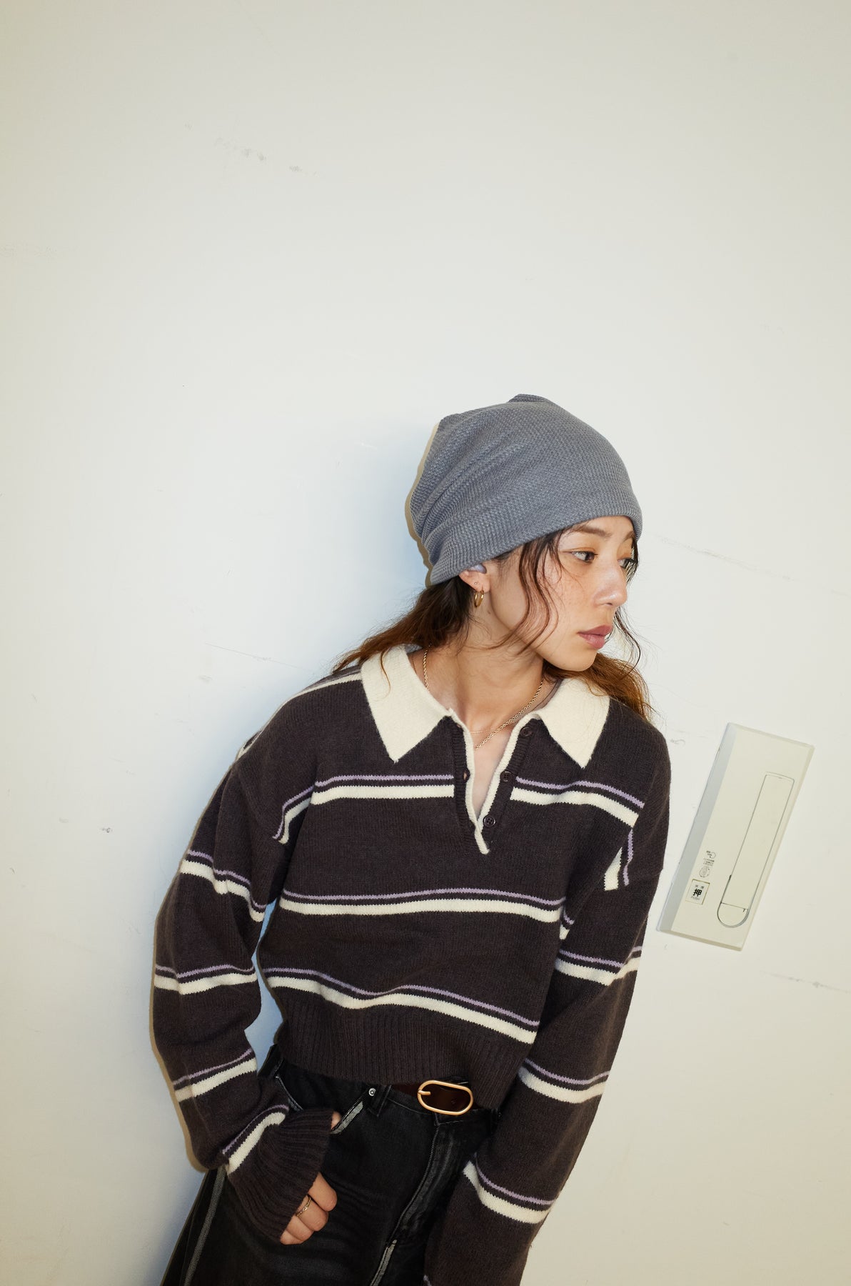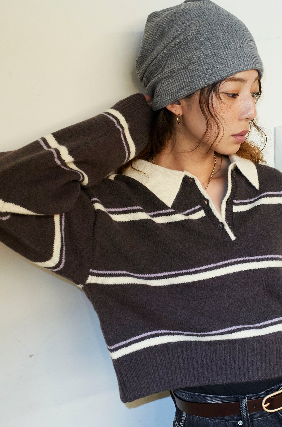 [予約/SET]ボーダーポロニット+ベルト付きデニムロングスカート(2set)