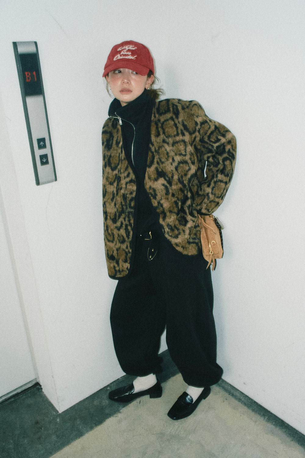 [予約/SET]ノーカラーレオパードジャコット+裏起毛カーブパンツ(2set)