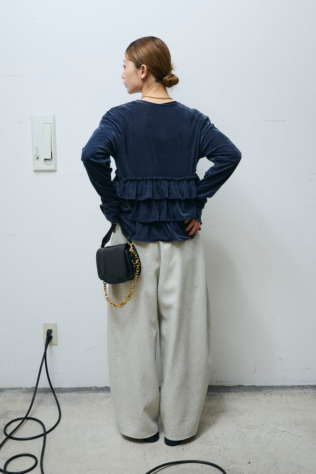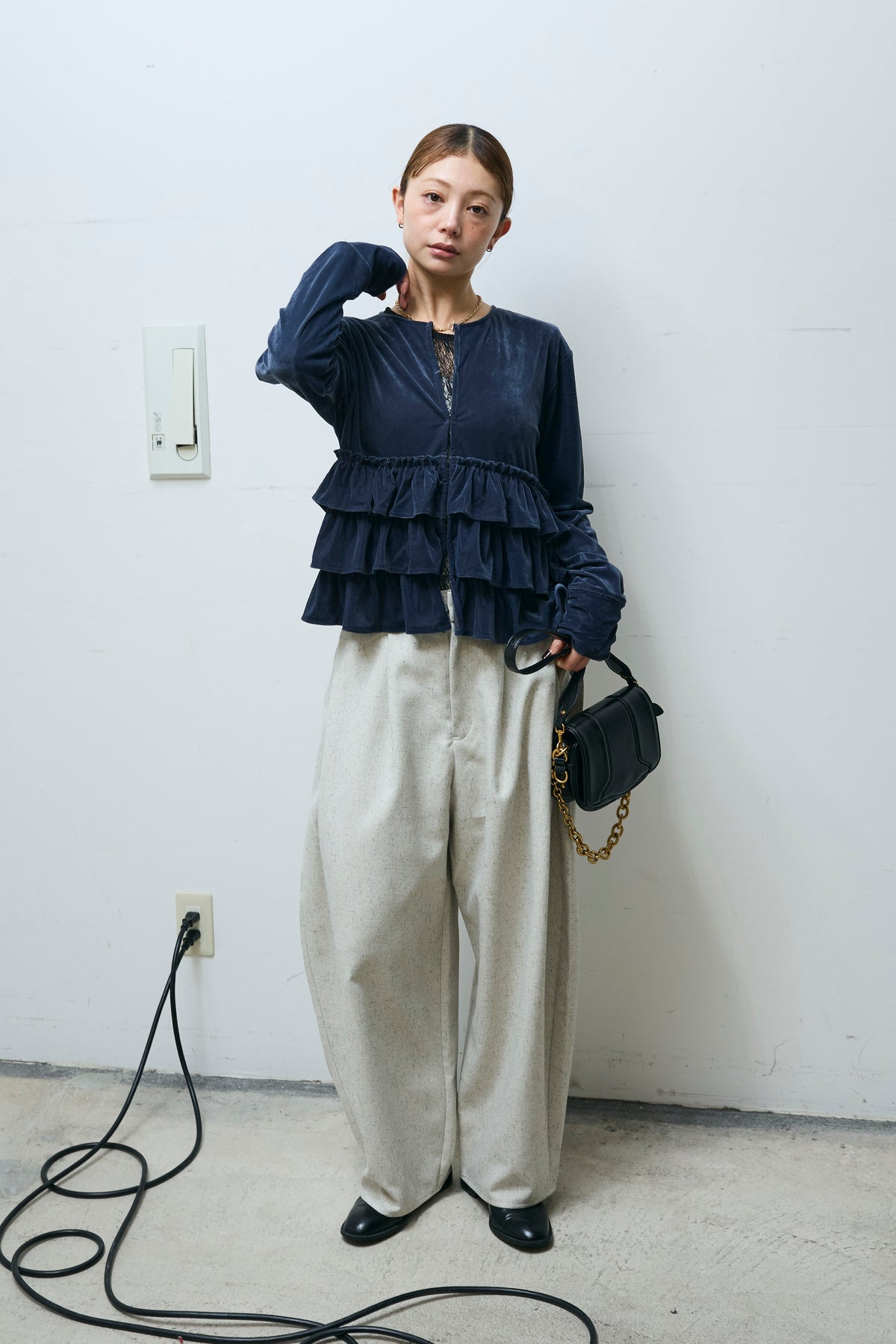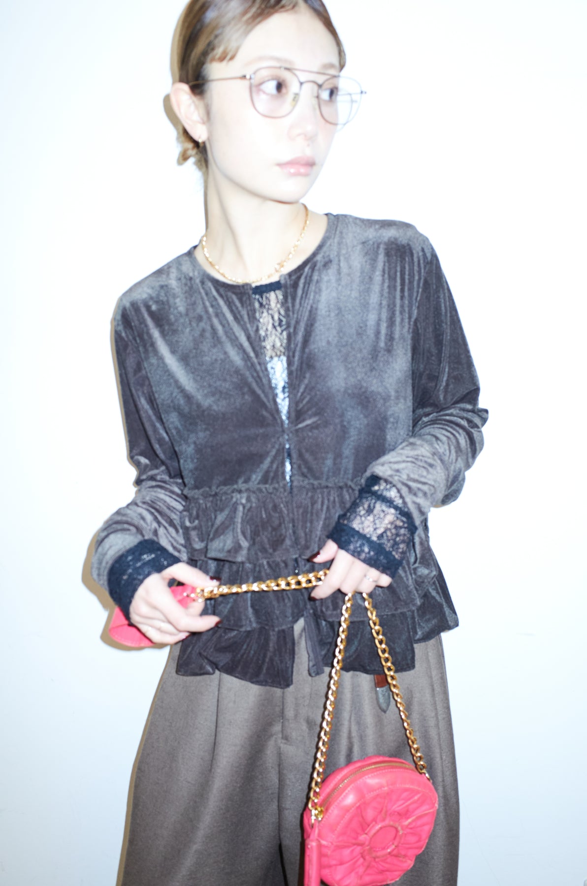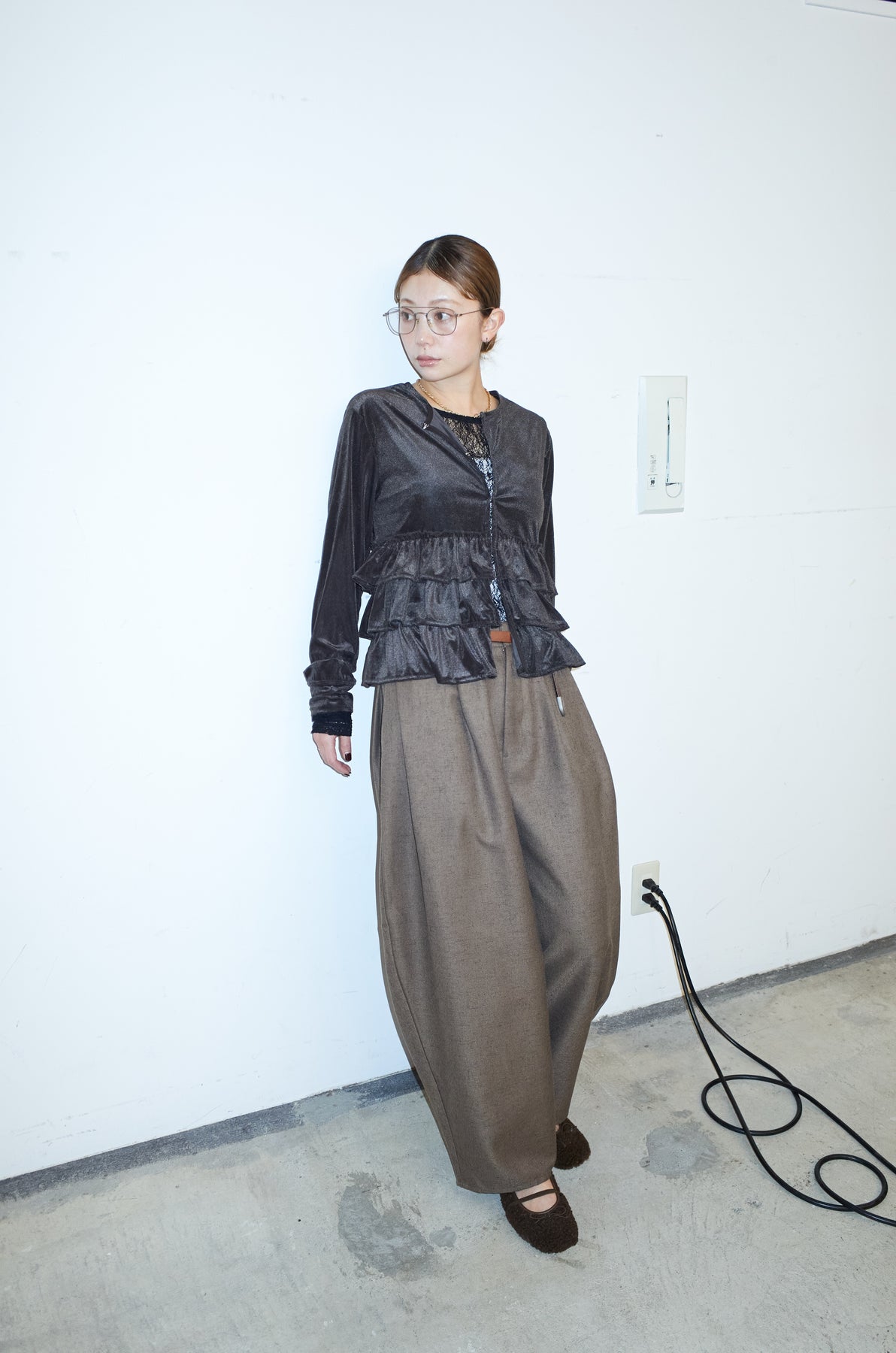 [予約/SET]シアーベロアティアードカーディガン+シアーレーストップス+ミックスカルゼサイドタックコクーンPT(3set)