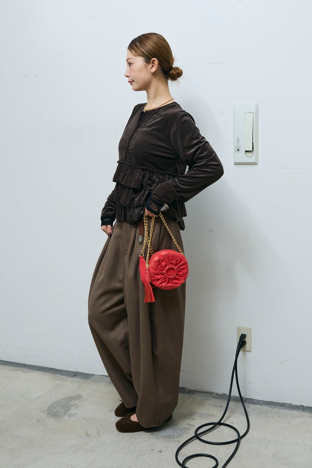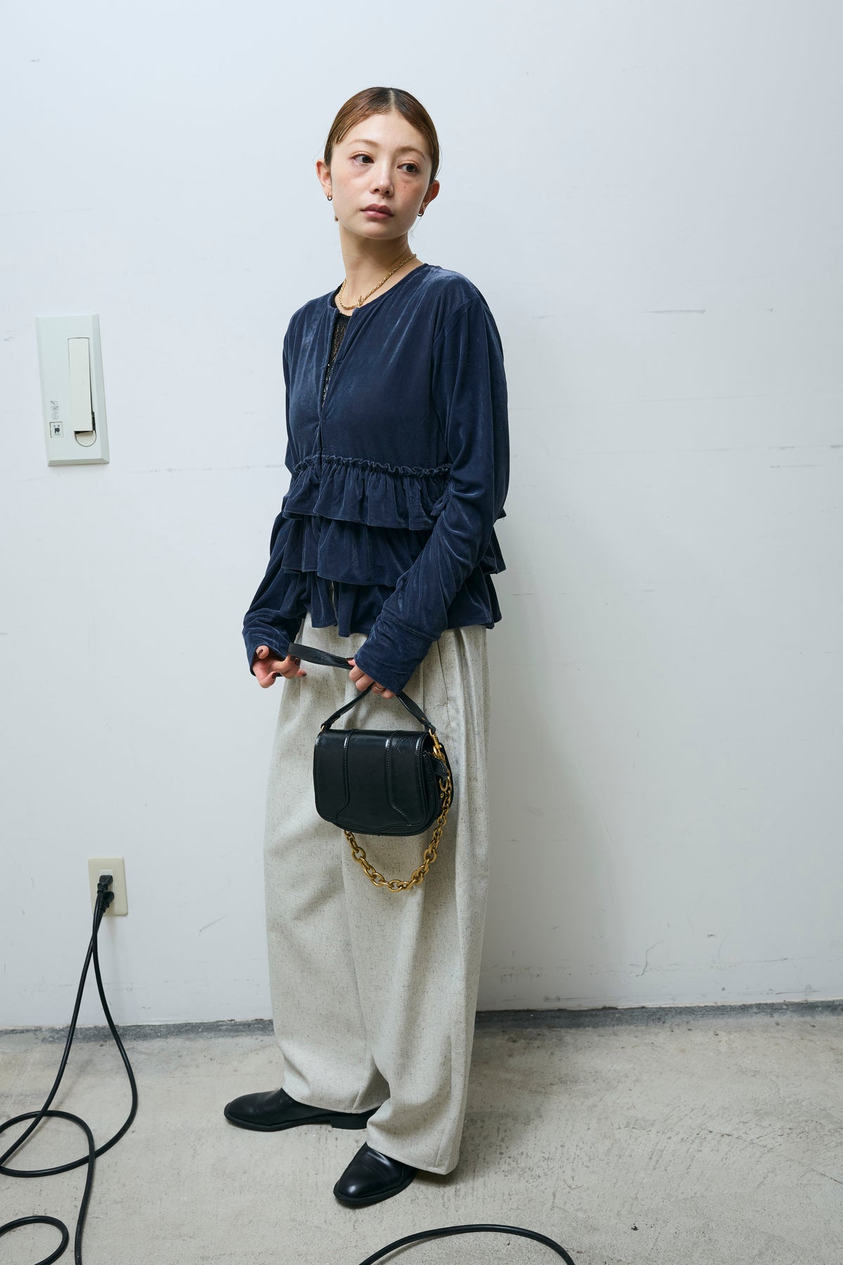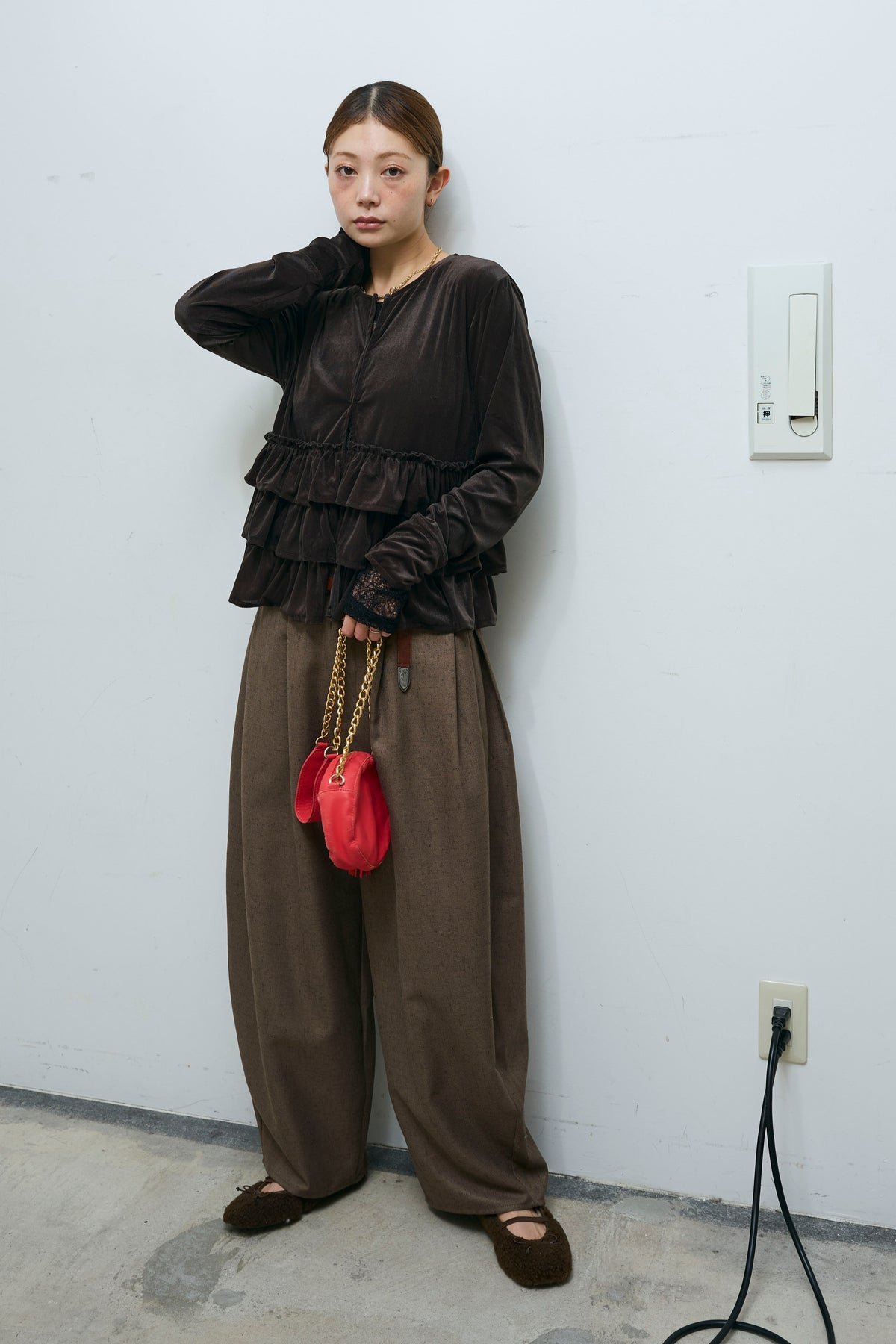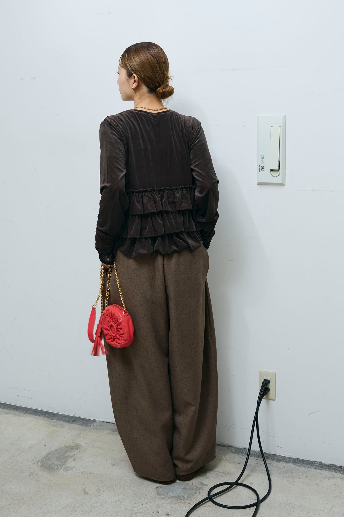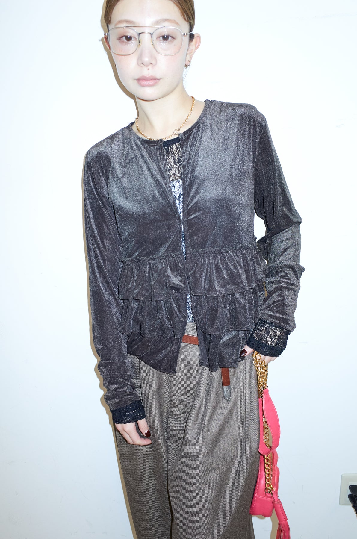 [予約/SET]シアーベロアティアードカーディガン+シアーレーストップス+ミックスカルゼサイドタックコクーンPT(3set)
