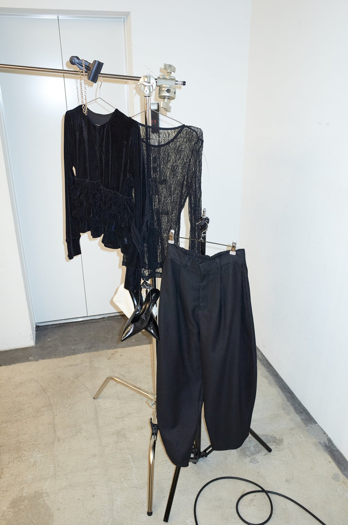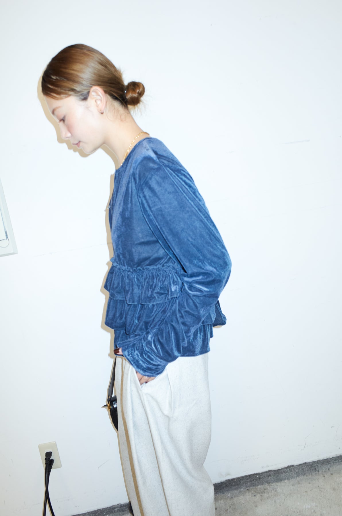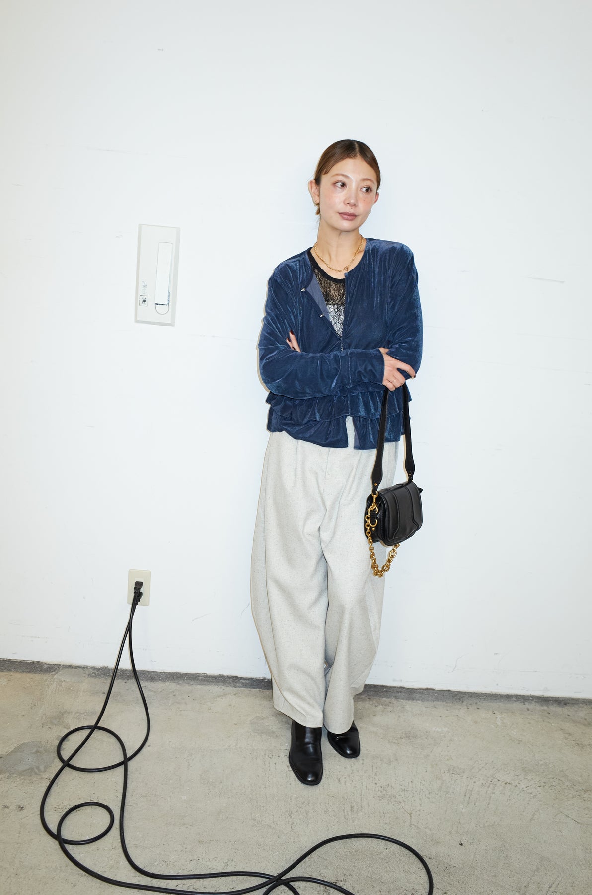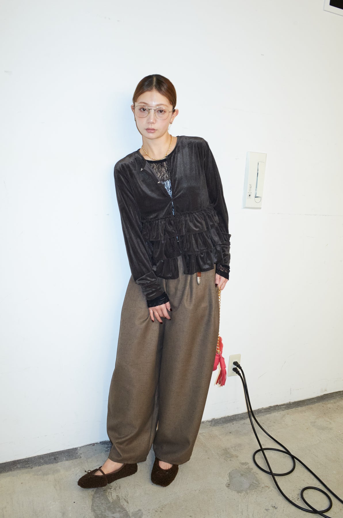 [予約/SET]シアーベロアティアードカーディガン+シアーレーストップス+ミックスカルゼサイドタックコクーンPT(3set)