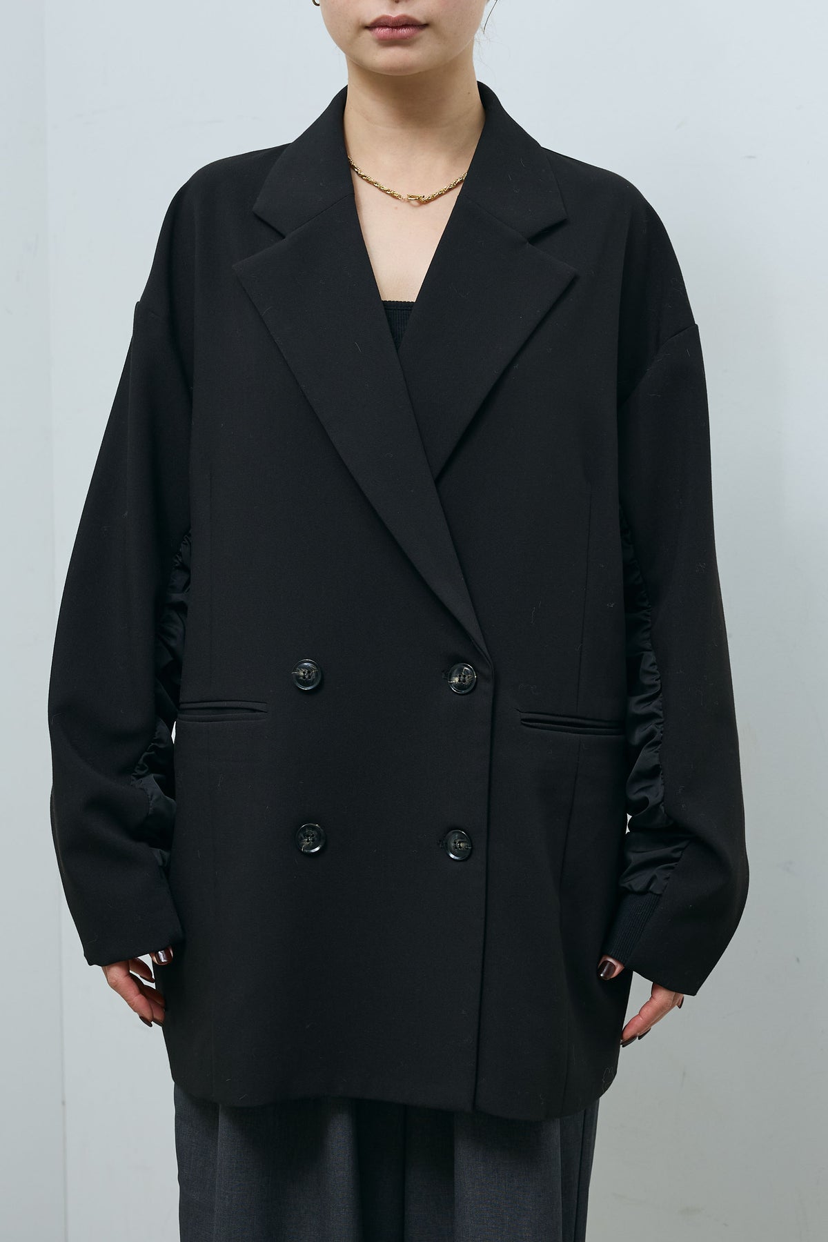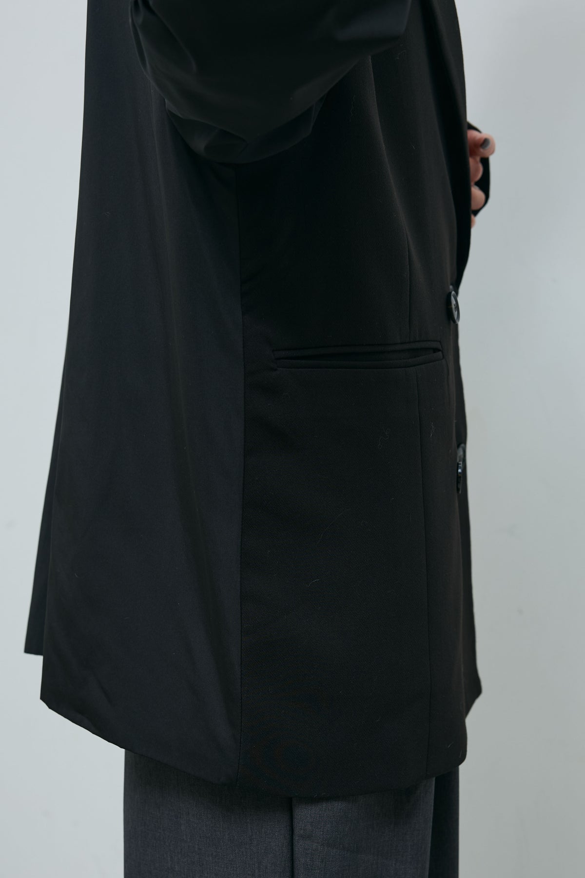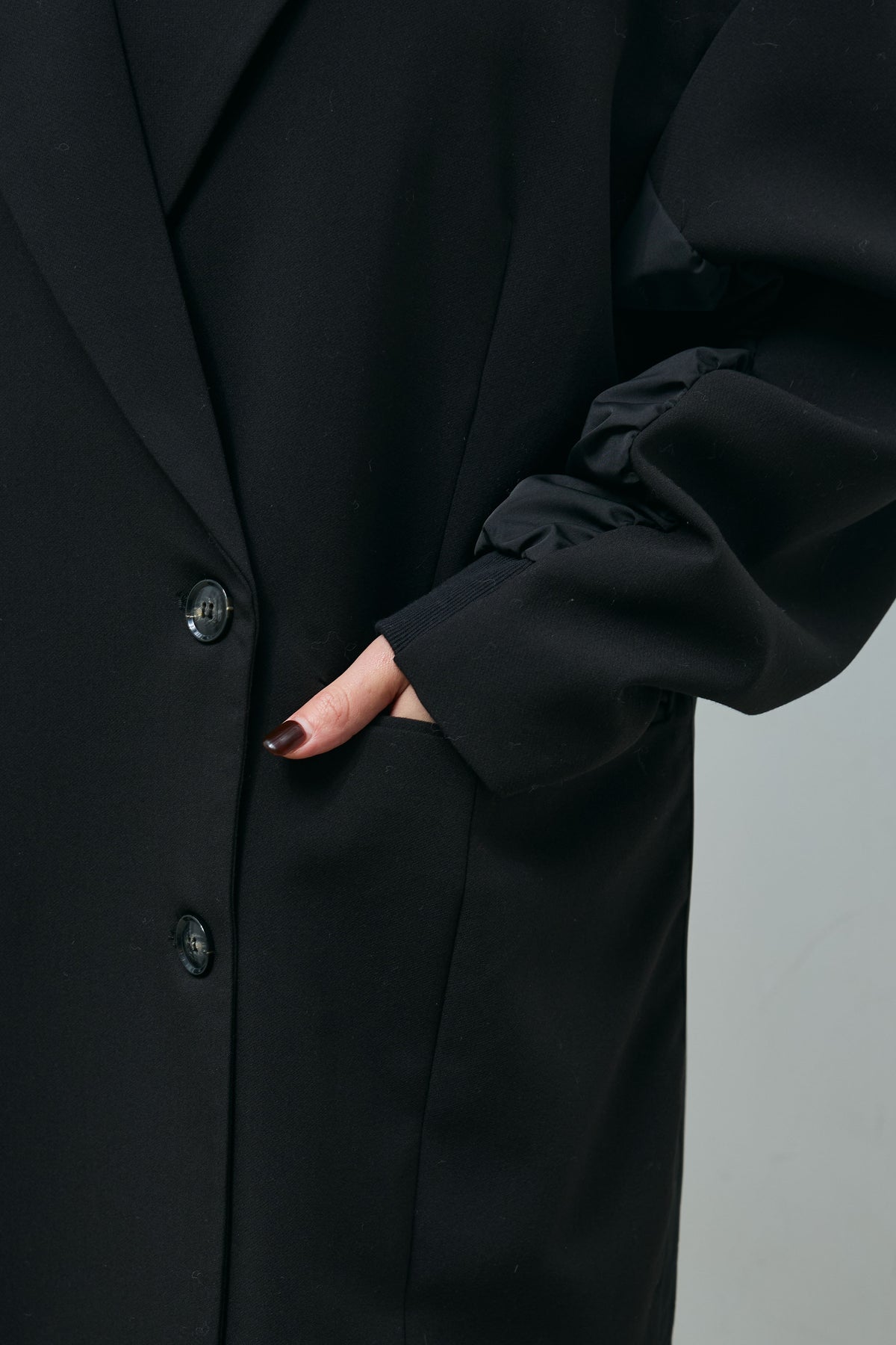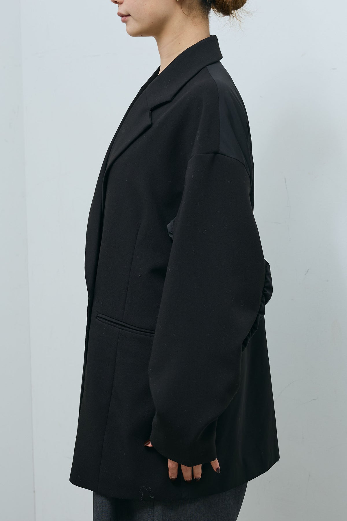 ・素材:ポリエステル74% レーヨン20% ポリウレタン6% 別地:ポリエステル100% リブ部分:綿95% ポリウレタン5% 裏地:ポリエステル100%