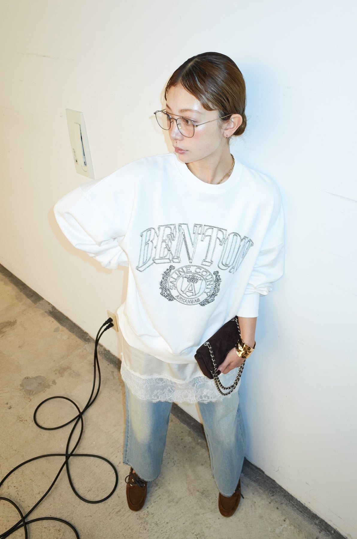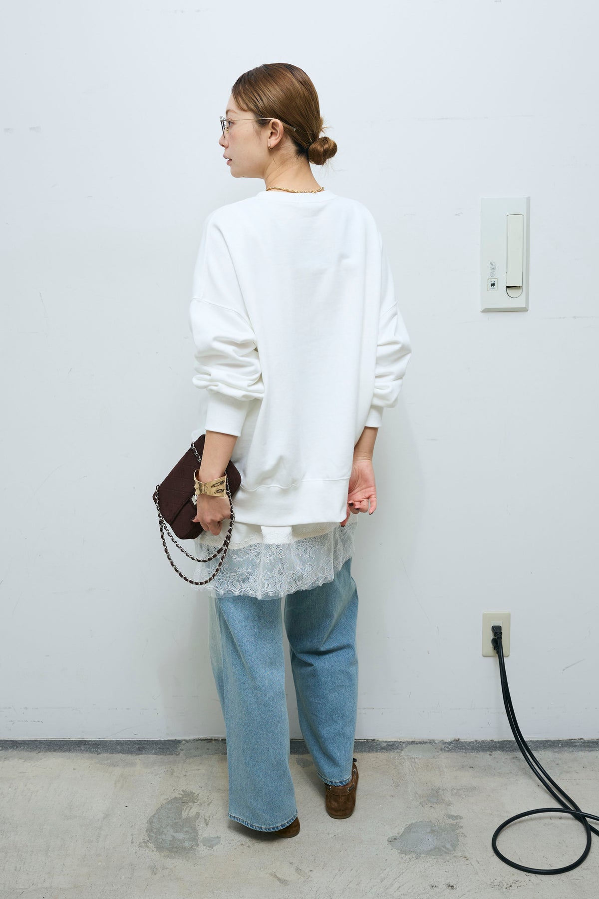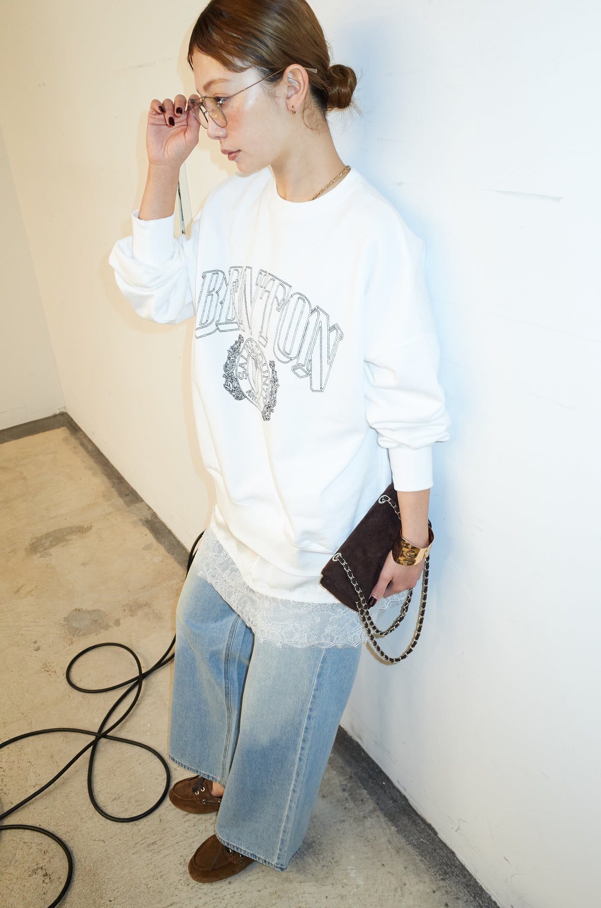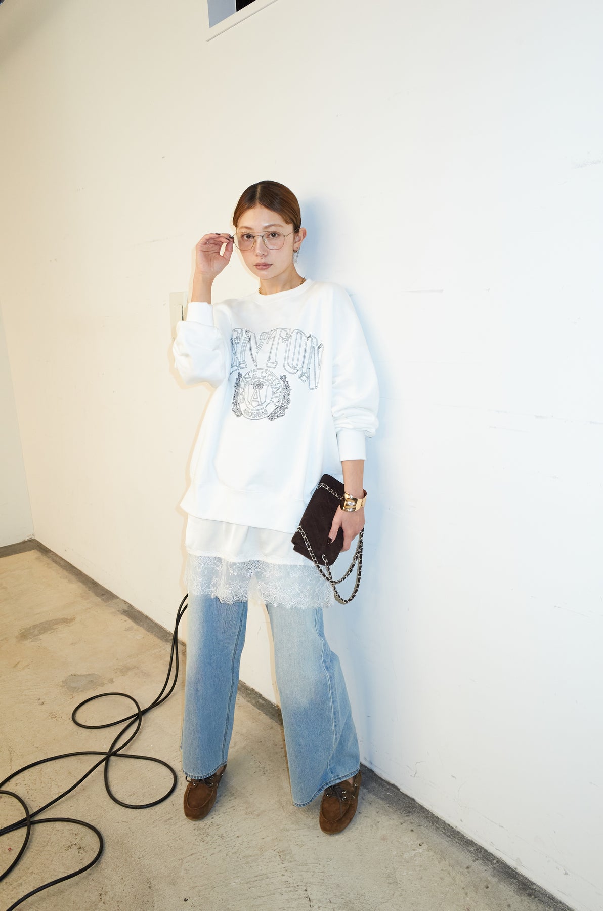 [予約/SET]カレッジロゴ刺繍スウェット+レースキャミ+ウエスト切り替えストレートデニム(3set)