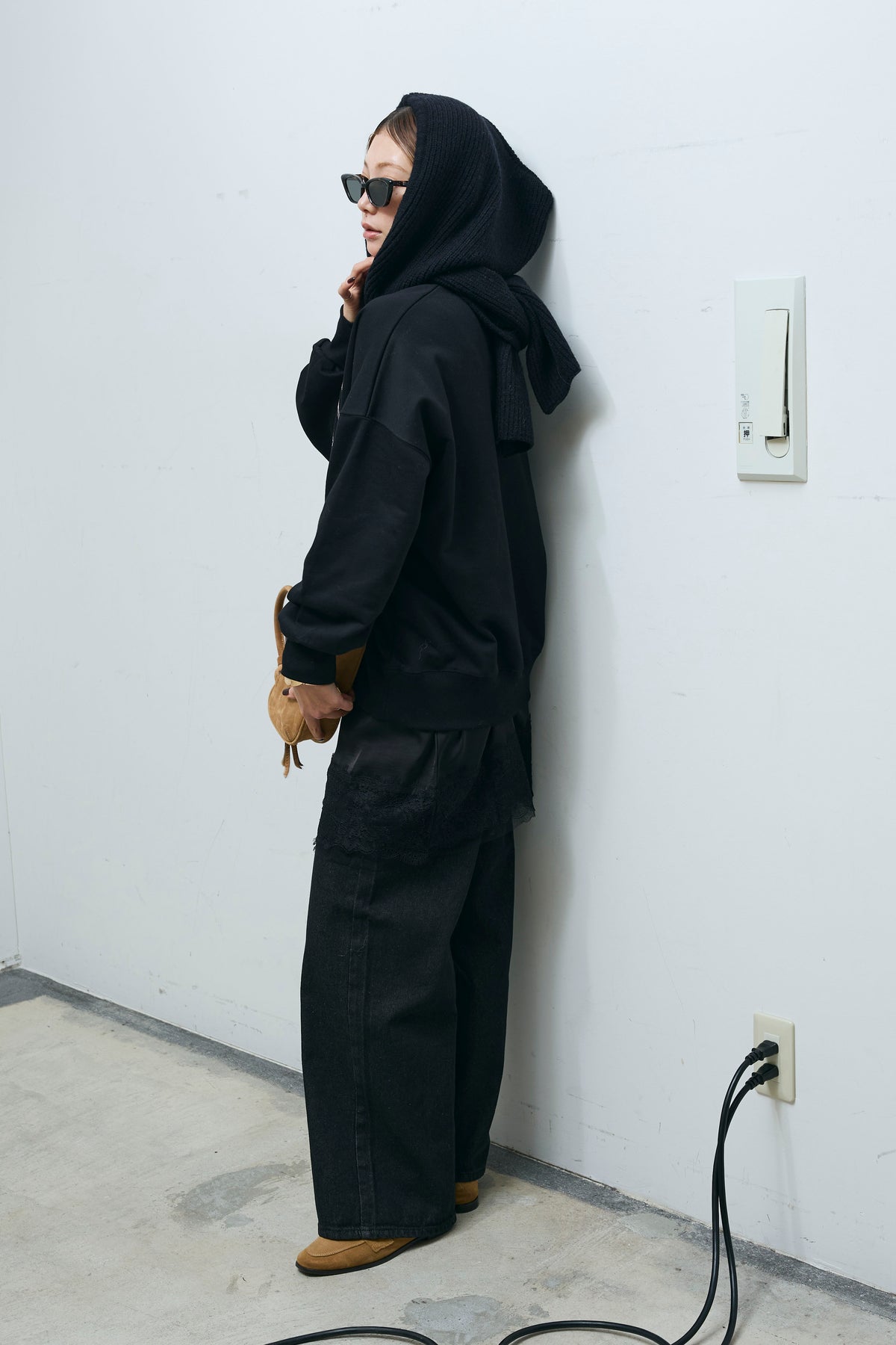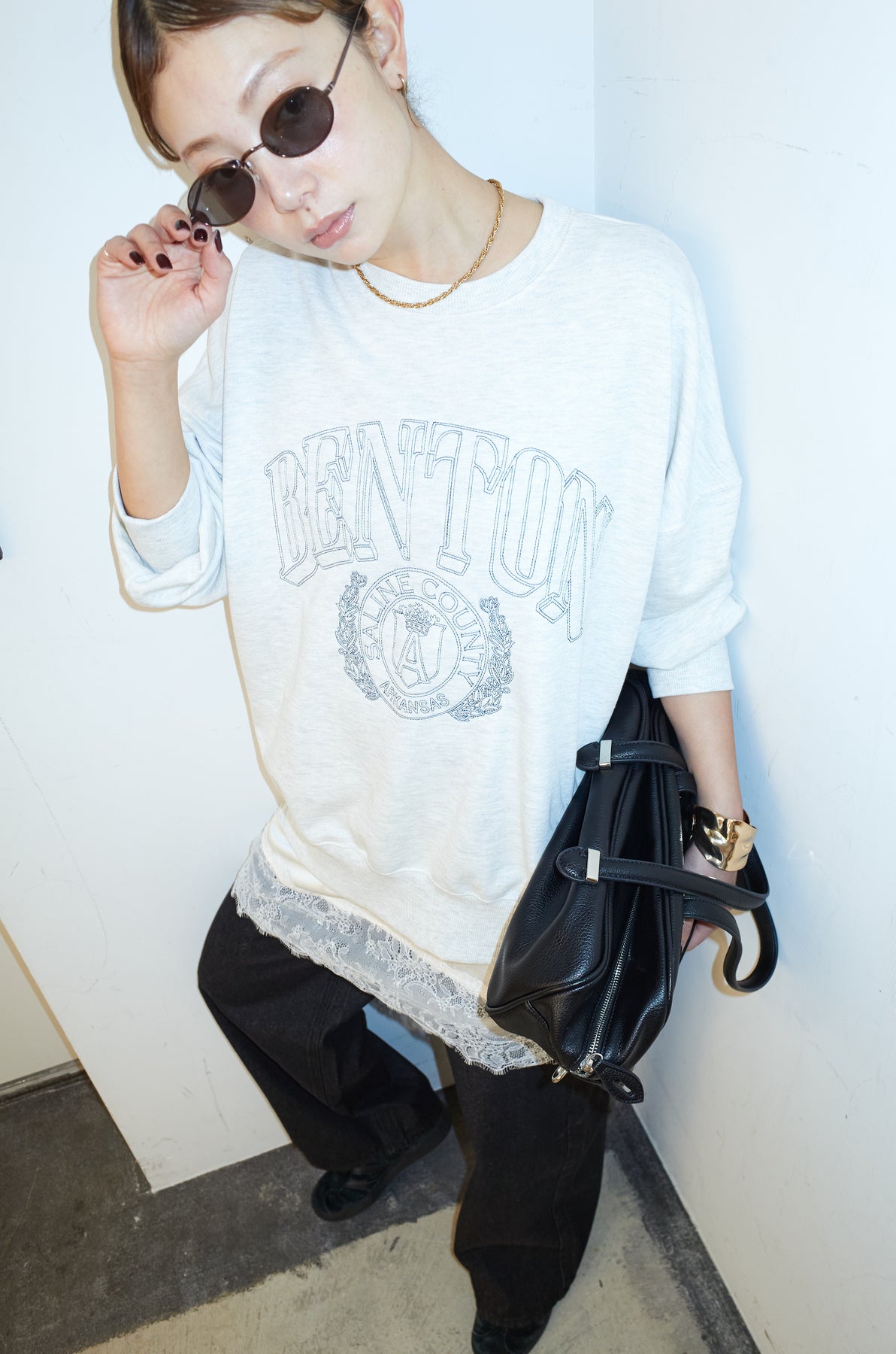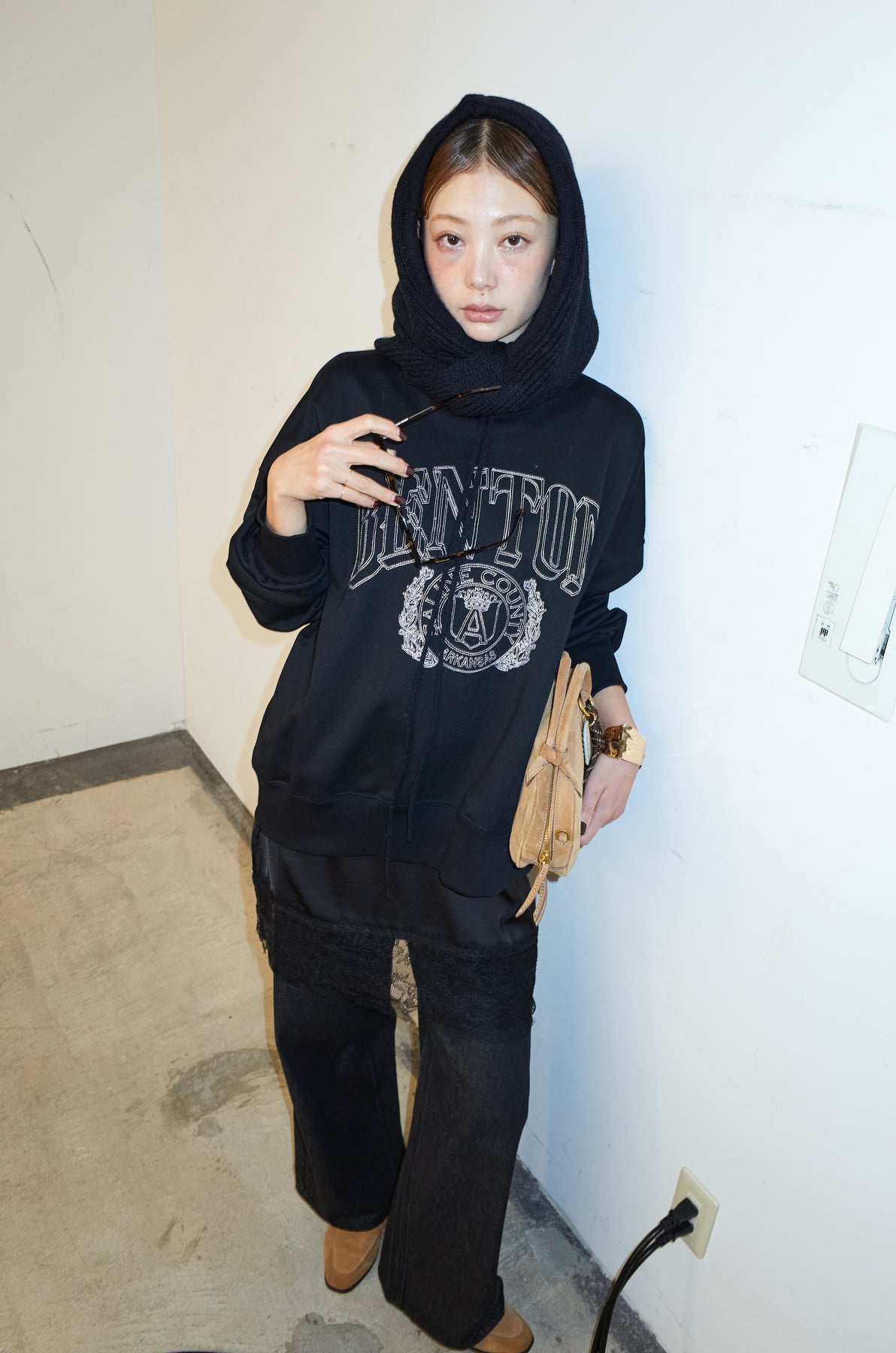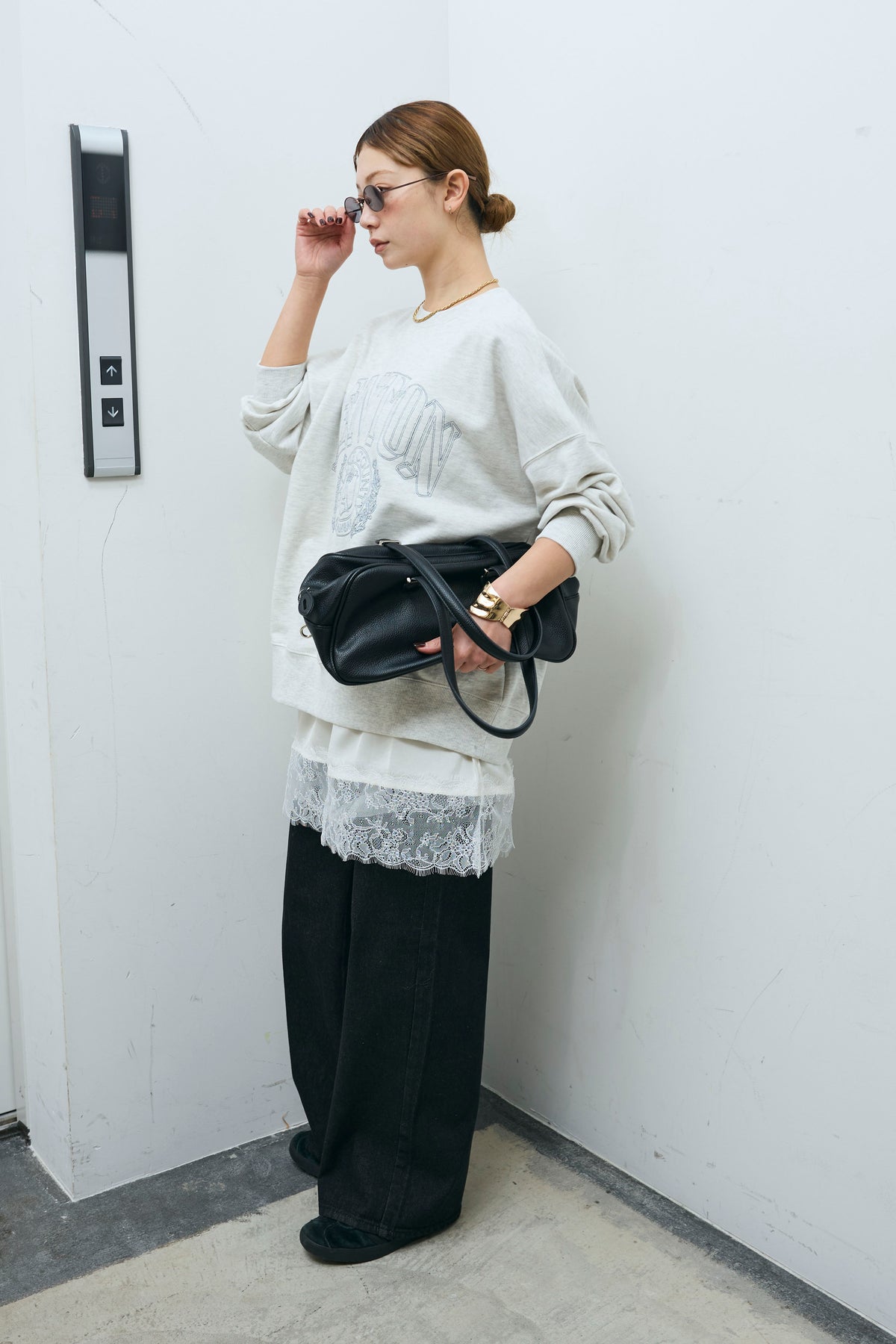 [予約/SET]カレッジロゴ刺繍スウェット+レースキャミ+ウエスト切り替えストレートデニム(3set)