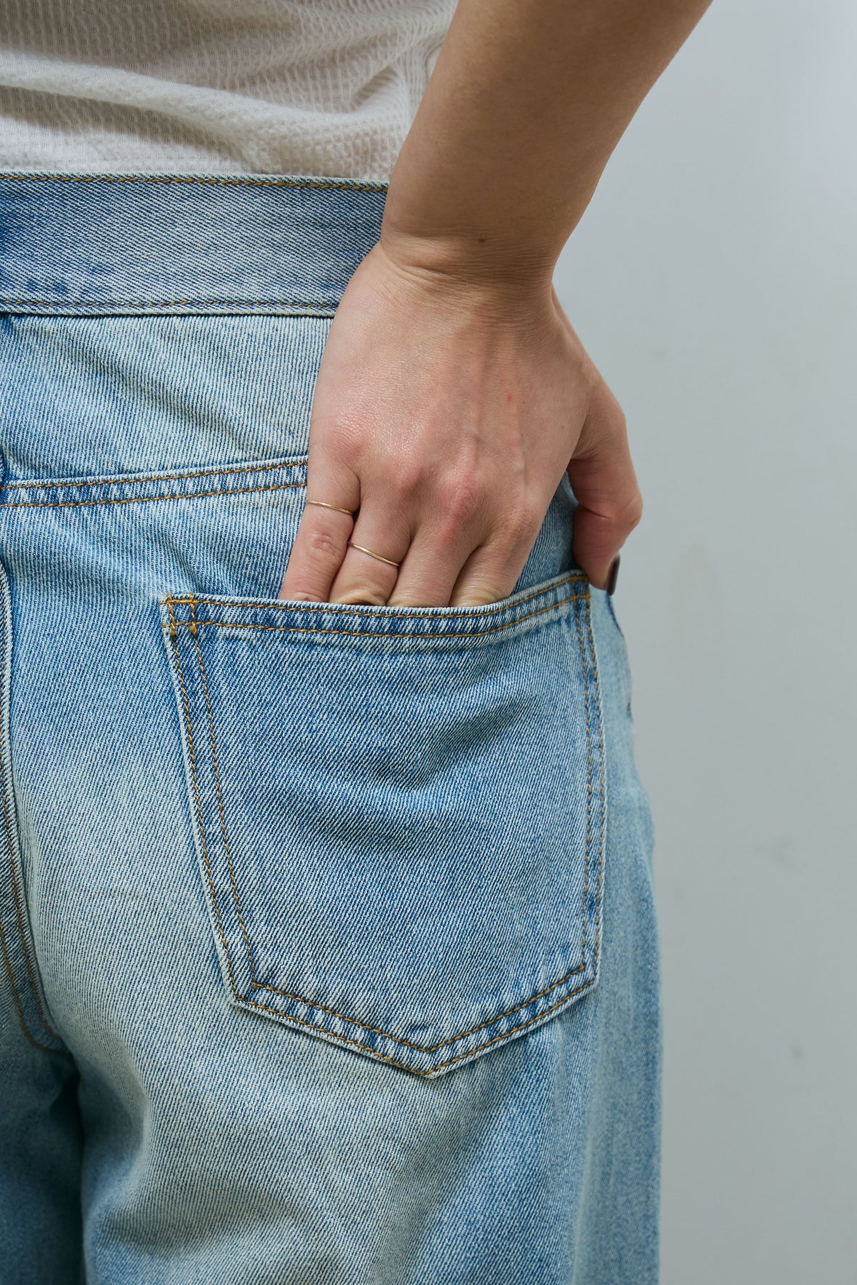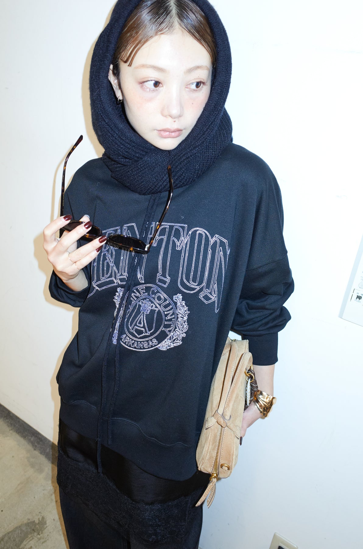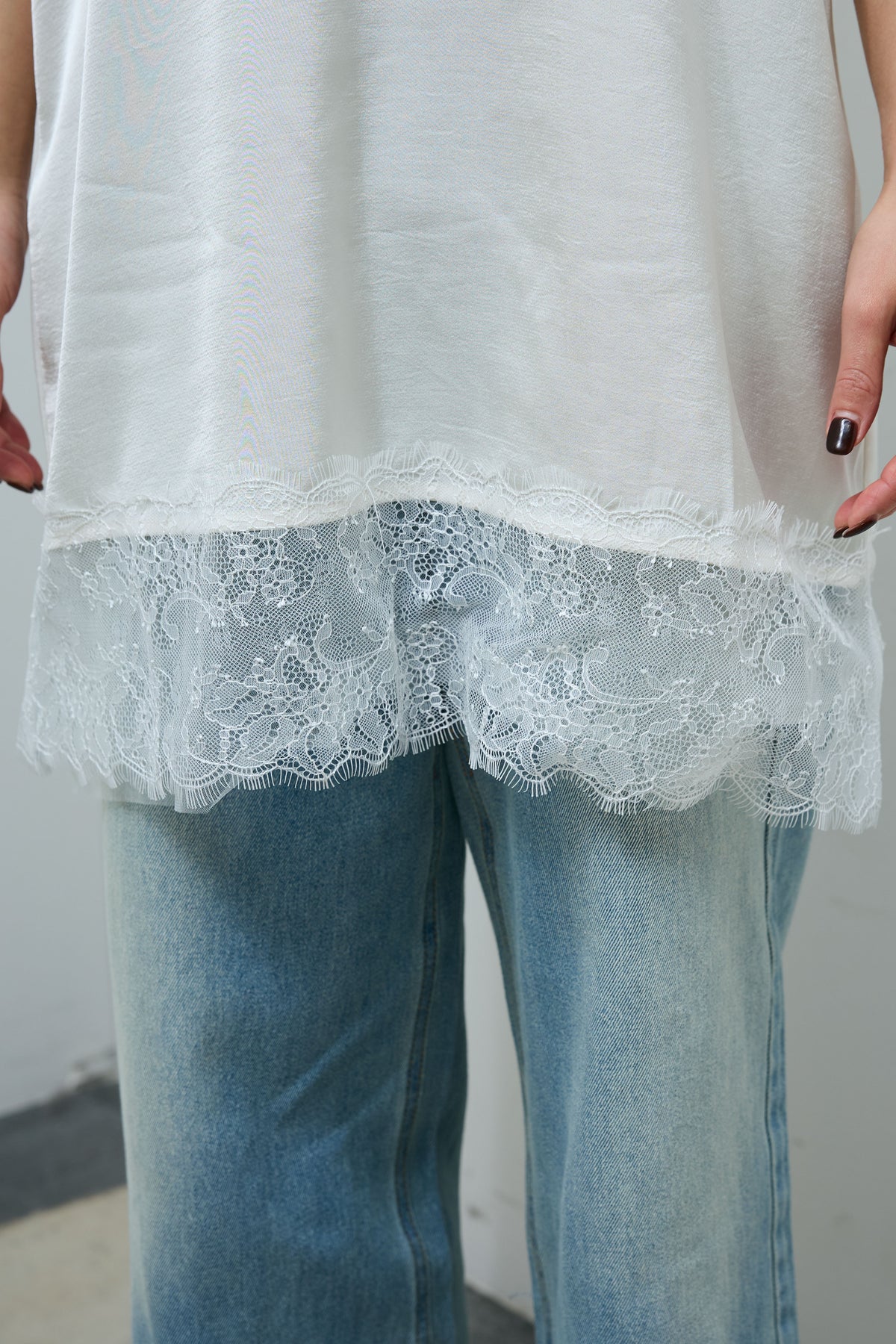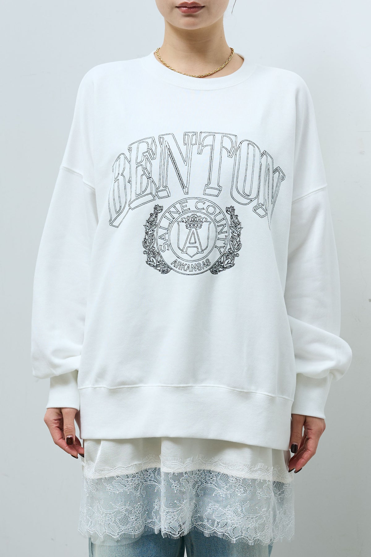 [予約/SET]カレッジロゴ刺繍スウェット+レースキャミ+ウエスト切り替えストレートデニム(3set)