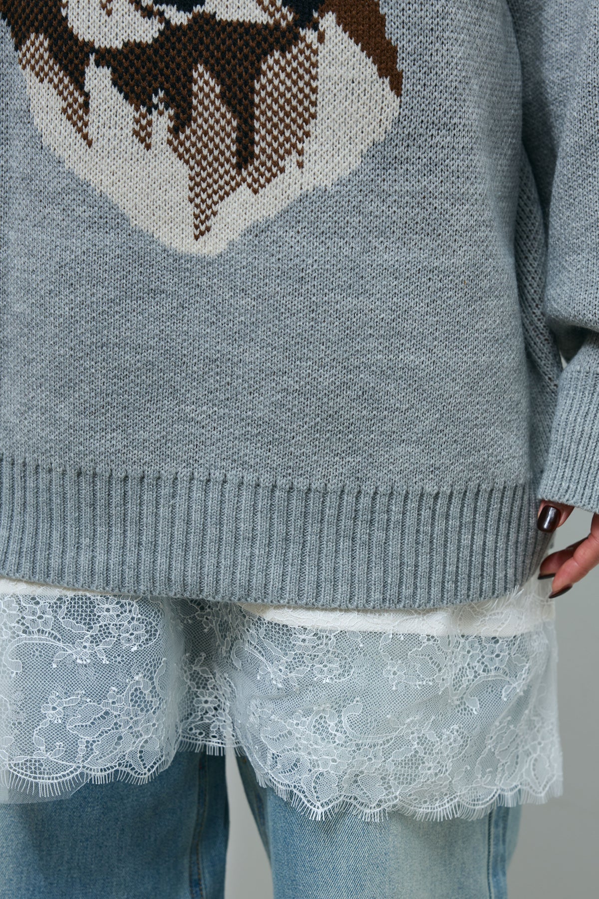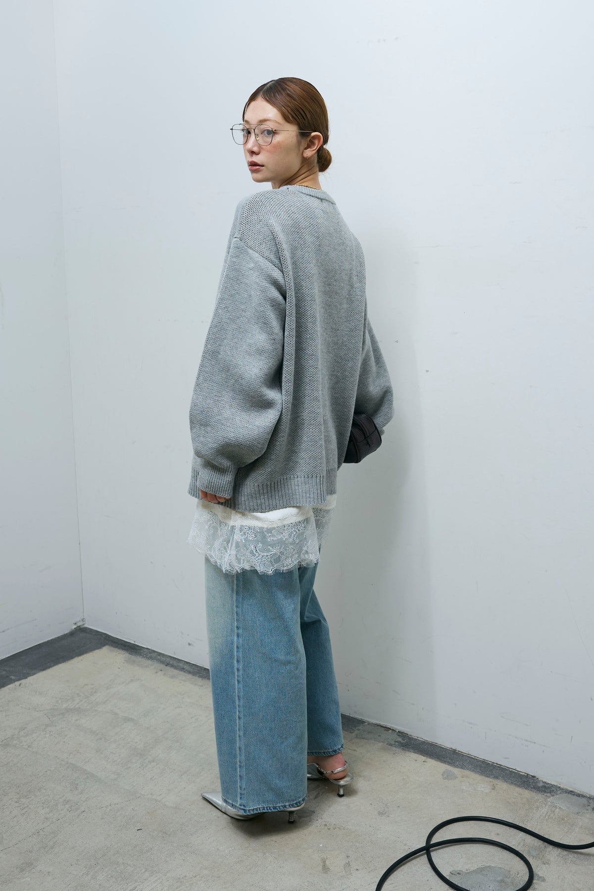 [予約/SET]バーナードジャガードプルオーバー+レースキャミ+ウエスト切り替えストレートデニム(3set)