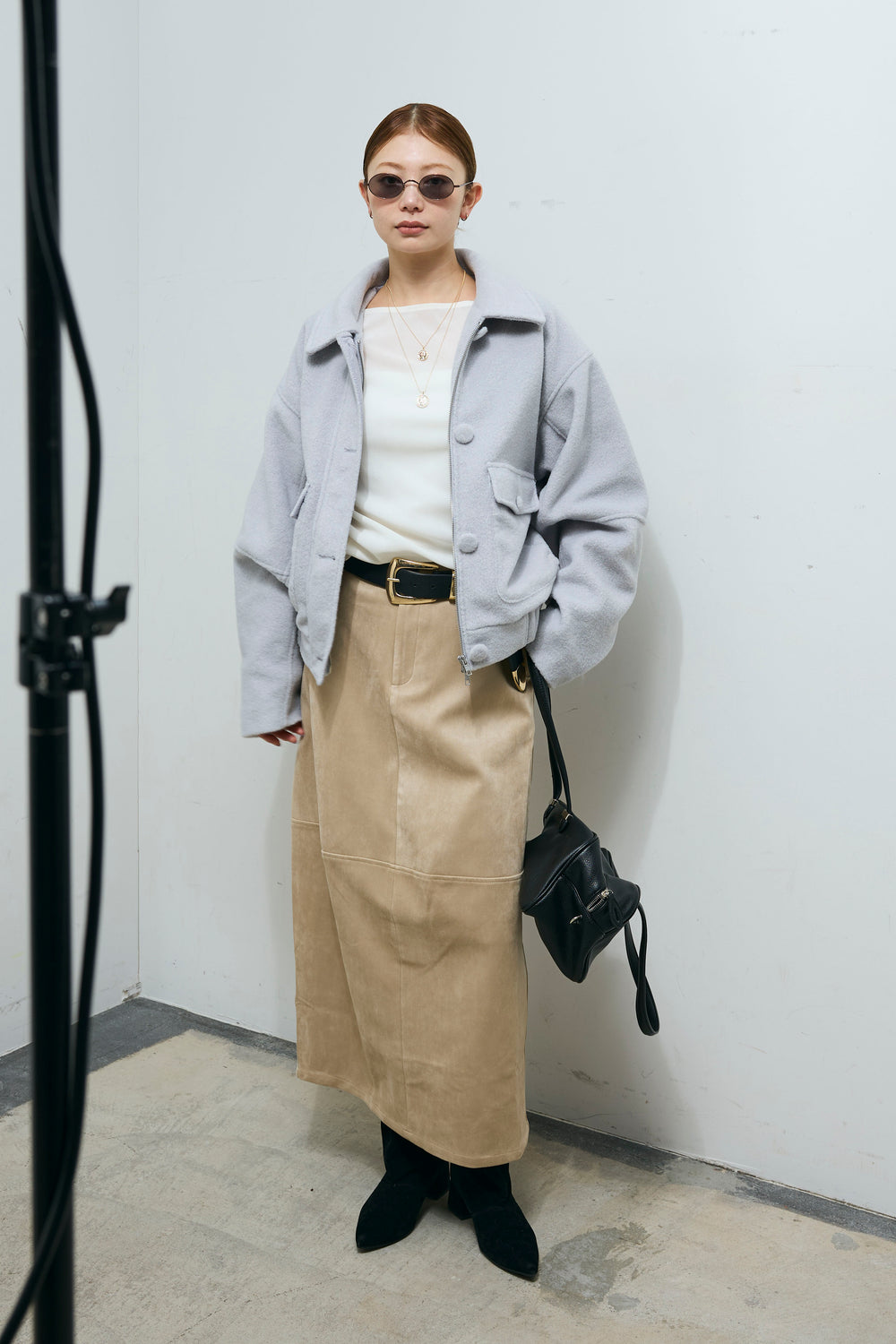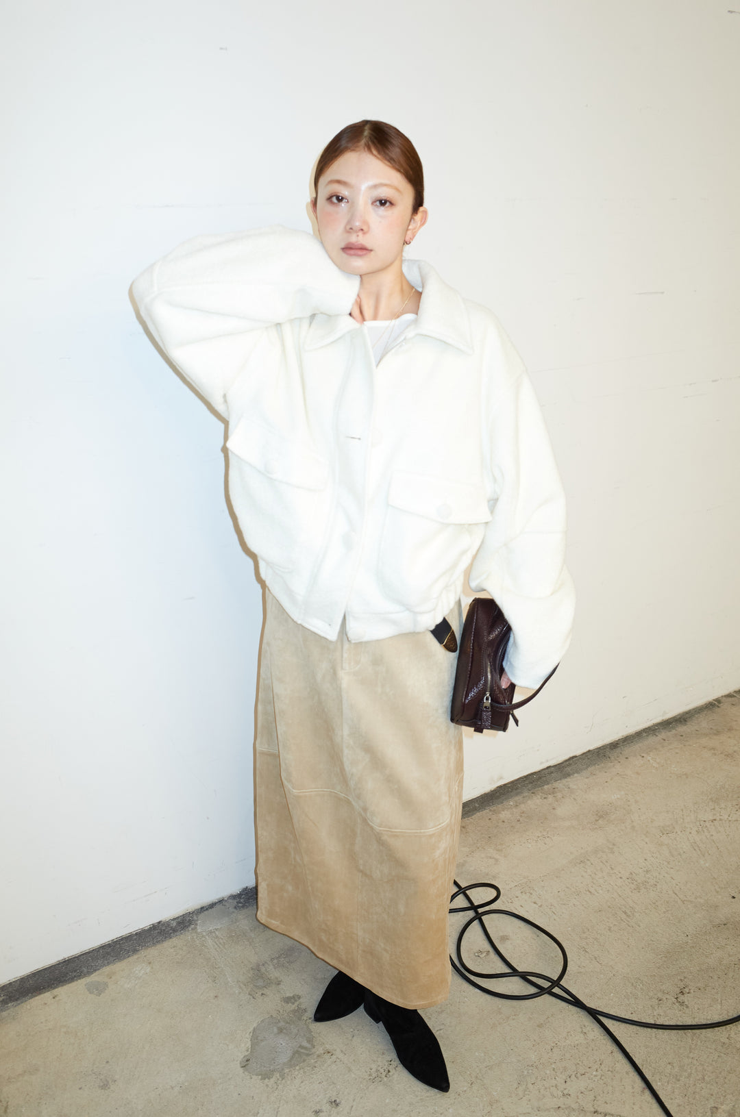 [予約/SET]ソフトシャギー ブルゾン+スウェードタッチコクーンスカート(2set)