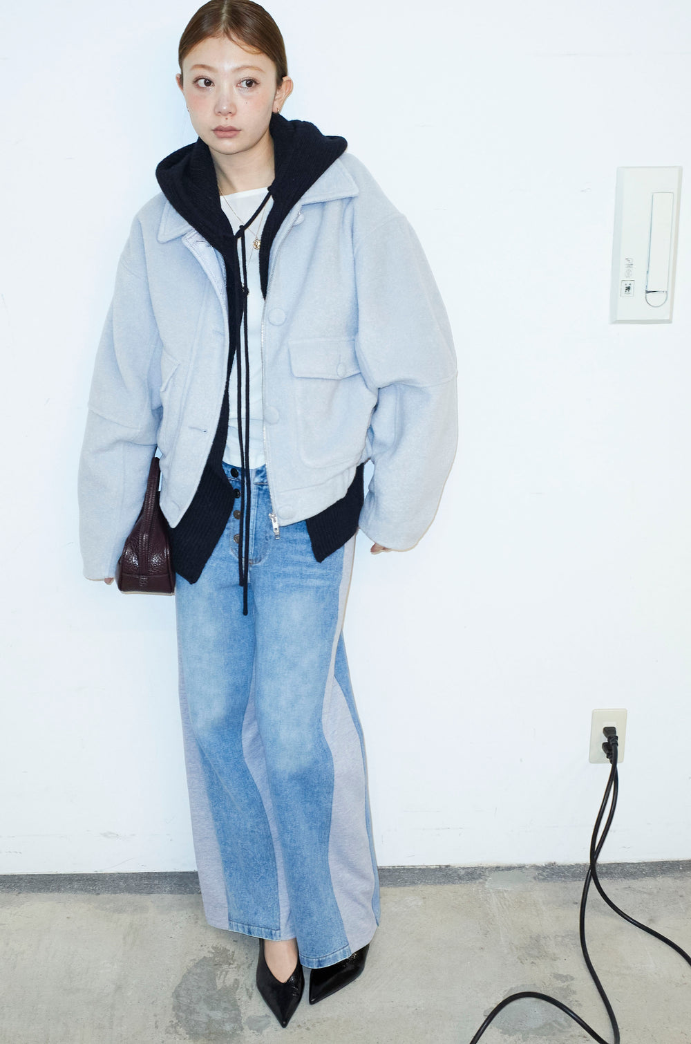 [予約/SET]起毛タッチバルーンデニムブルゾン+裏起毛スウェットワイドパンツ(2set)