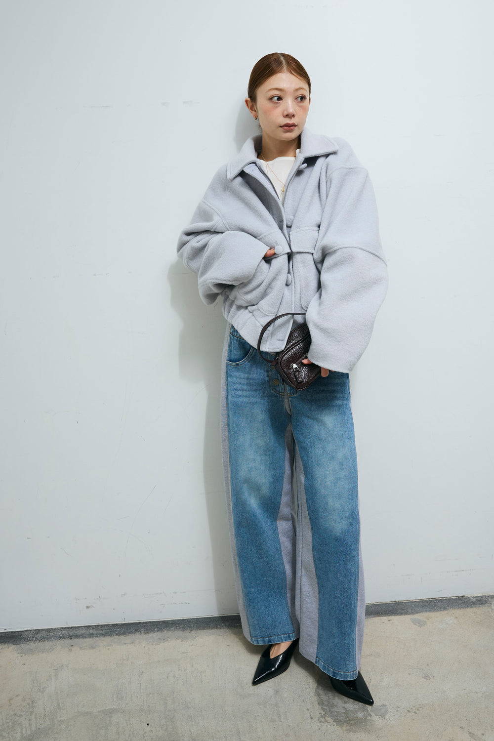 [予約/SET]ソフトシャギー ブルゾン+スウェット切り替えデニムパンツ(2set)