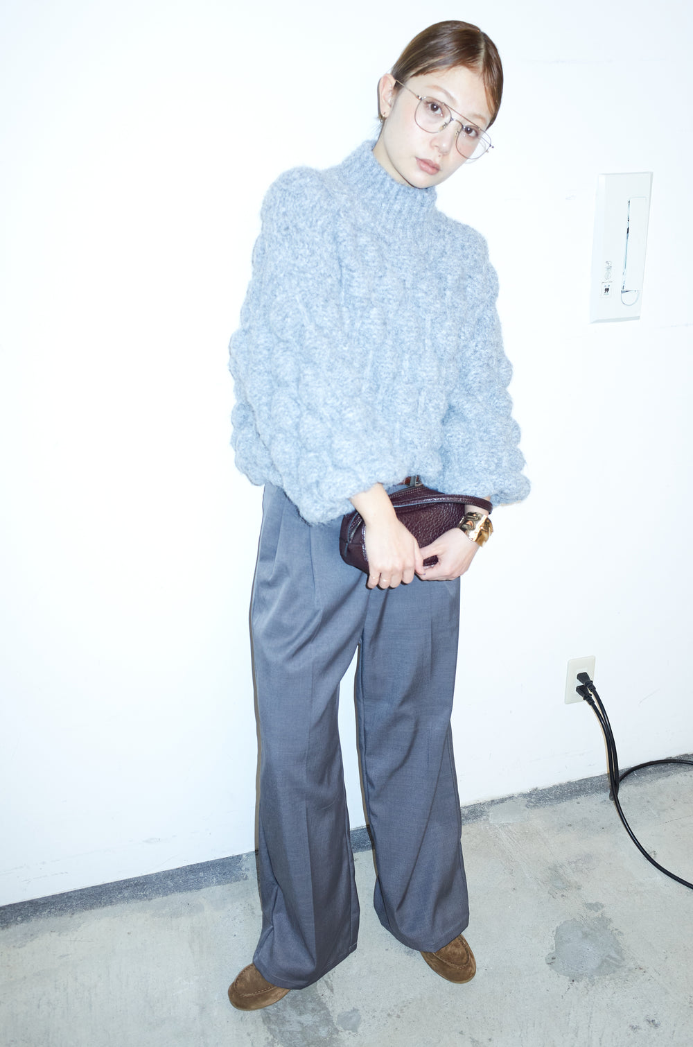 [予約/SET]テクスチャーハイネックニット+TRツイルスプリングカラータックパンツ(2set)