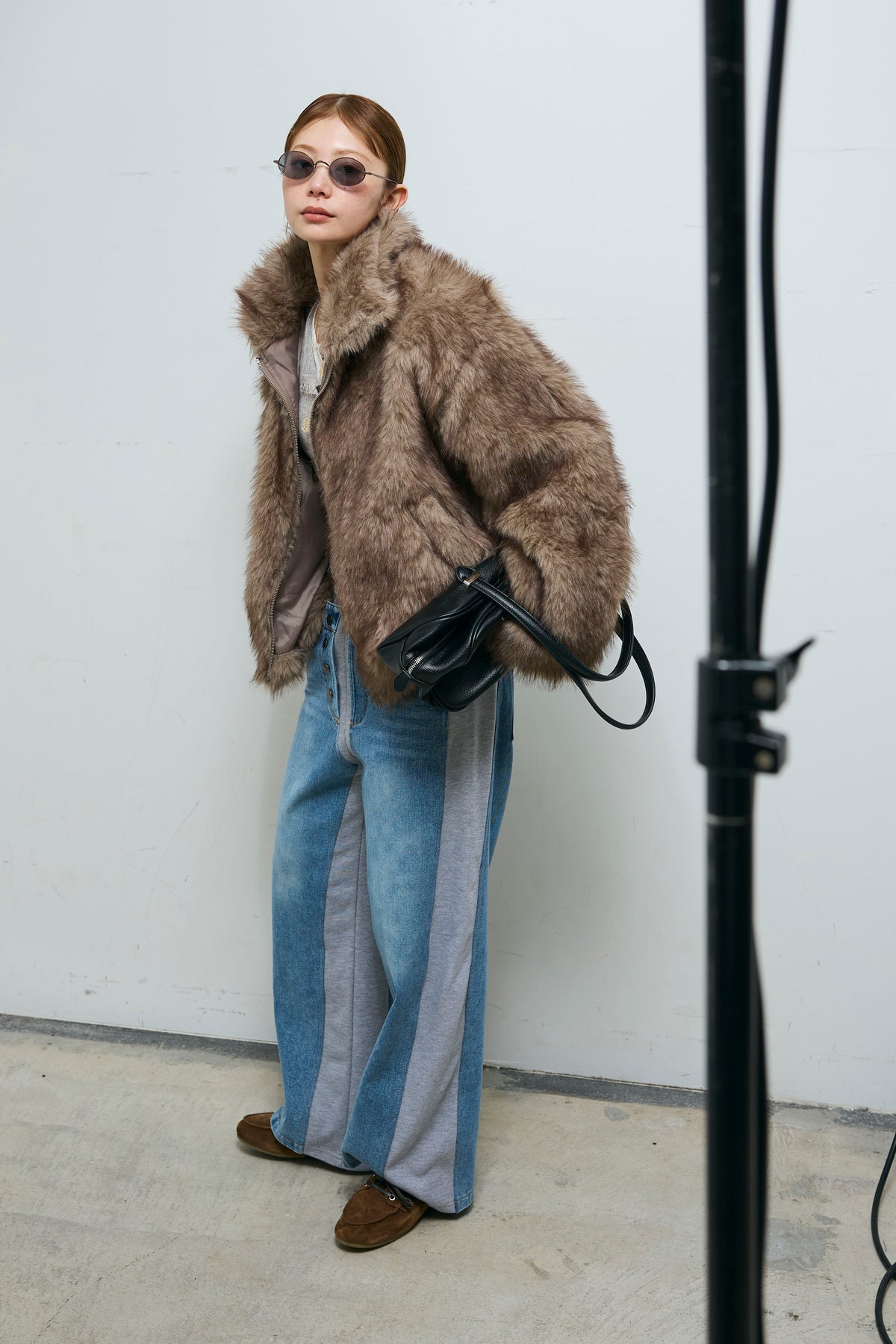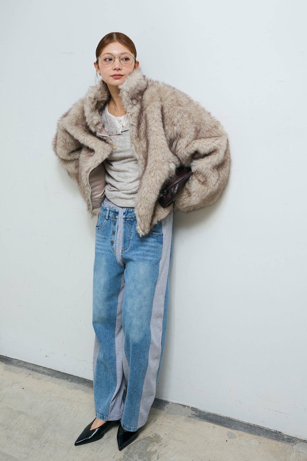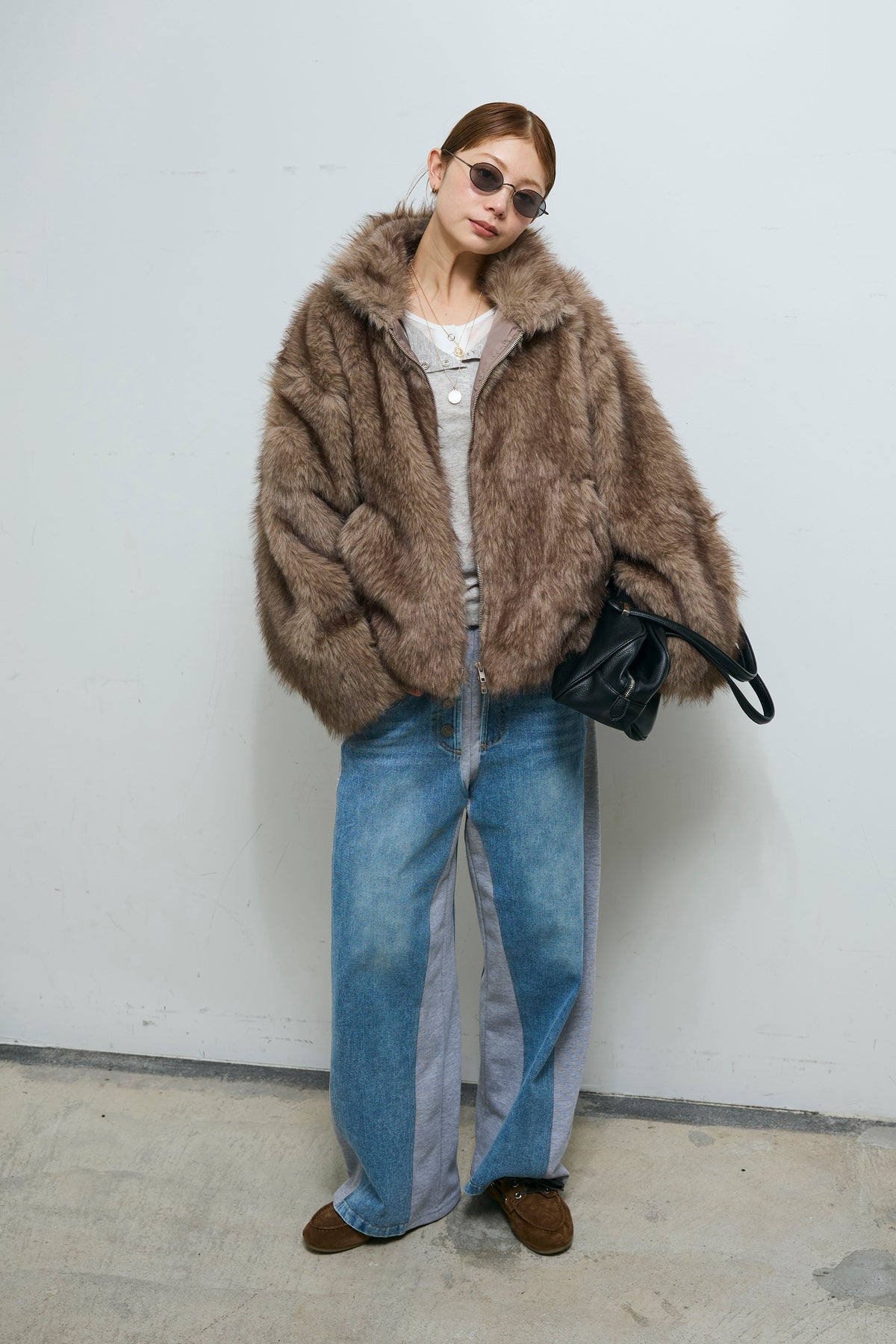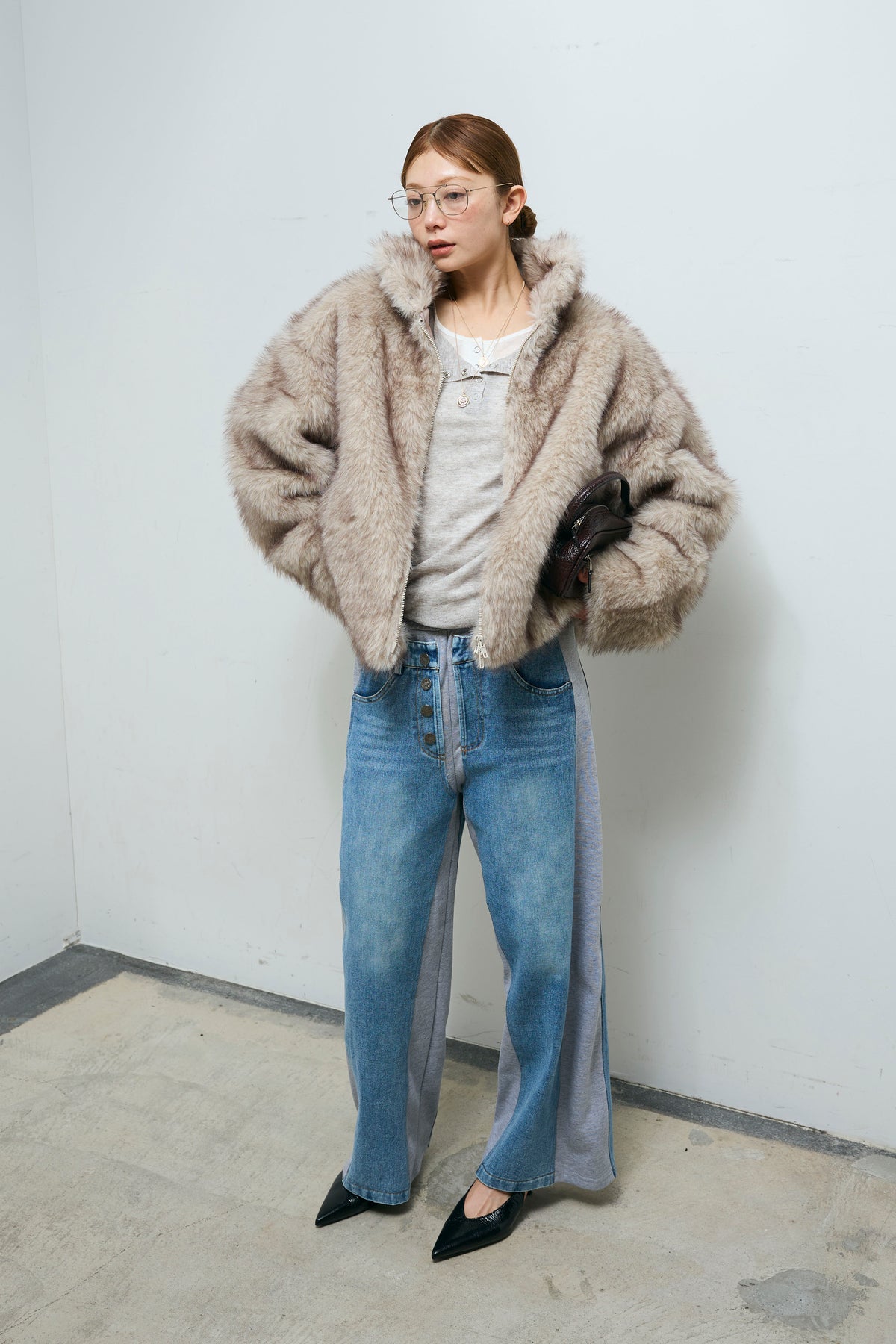 [予約/SET]ミックスファージップブルゾン+スウェット切り替えデニムパンツ(2set)