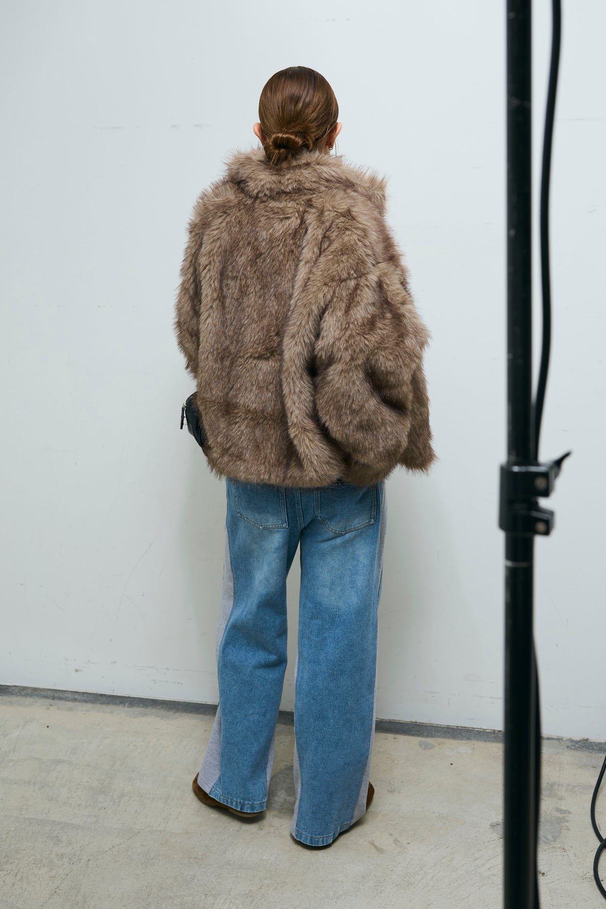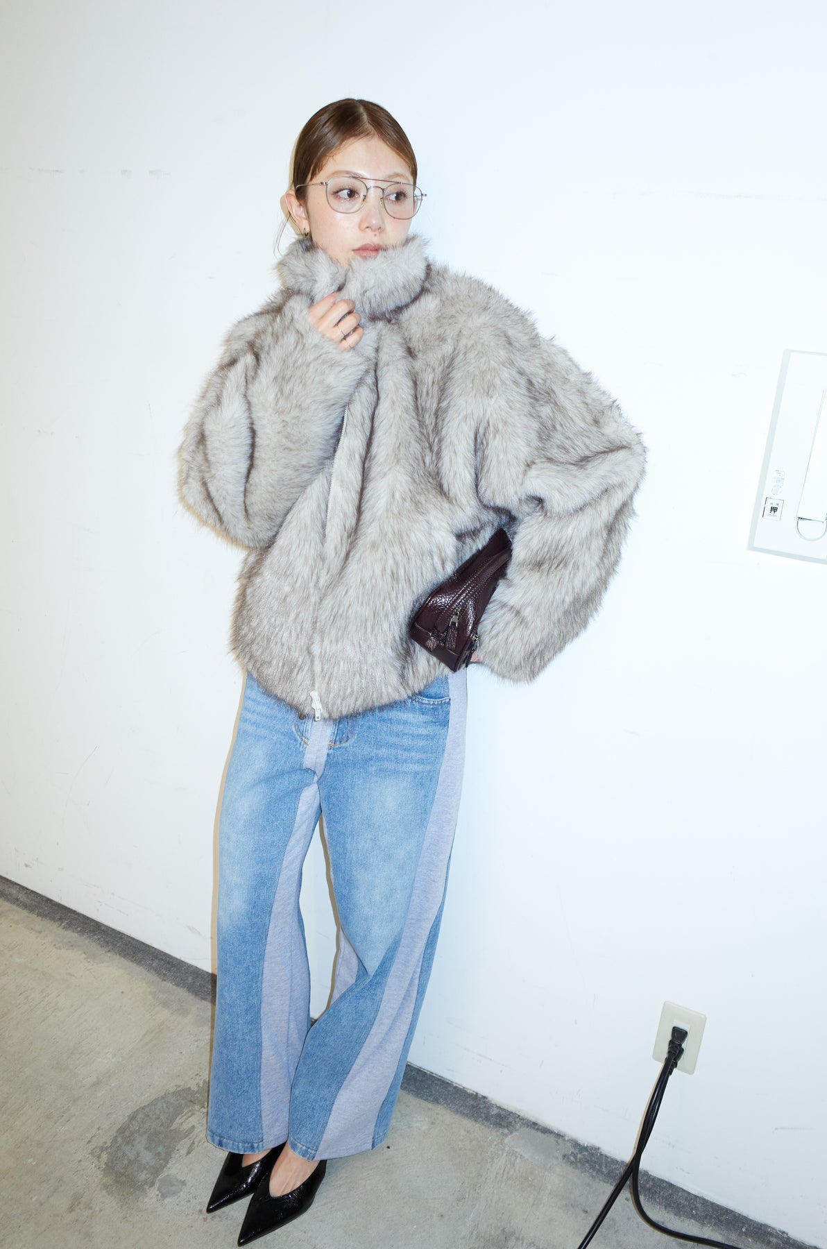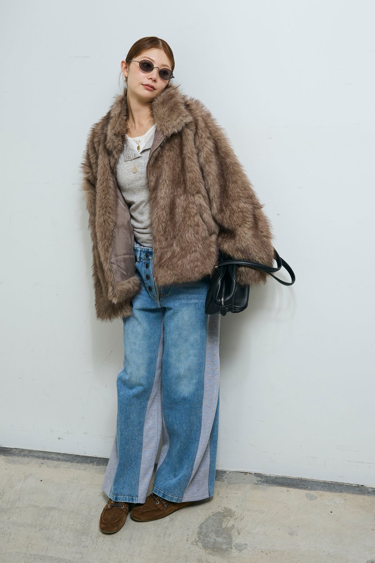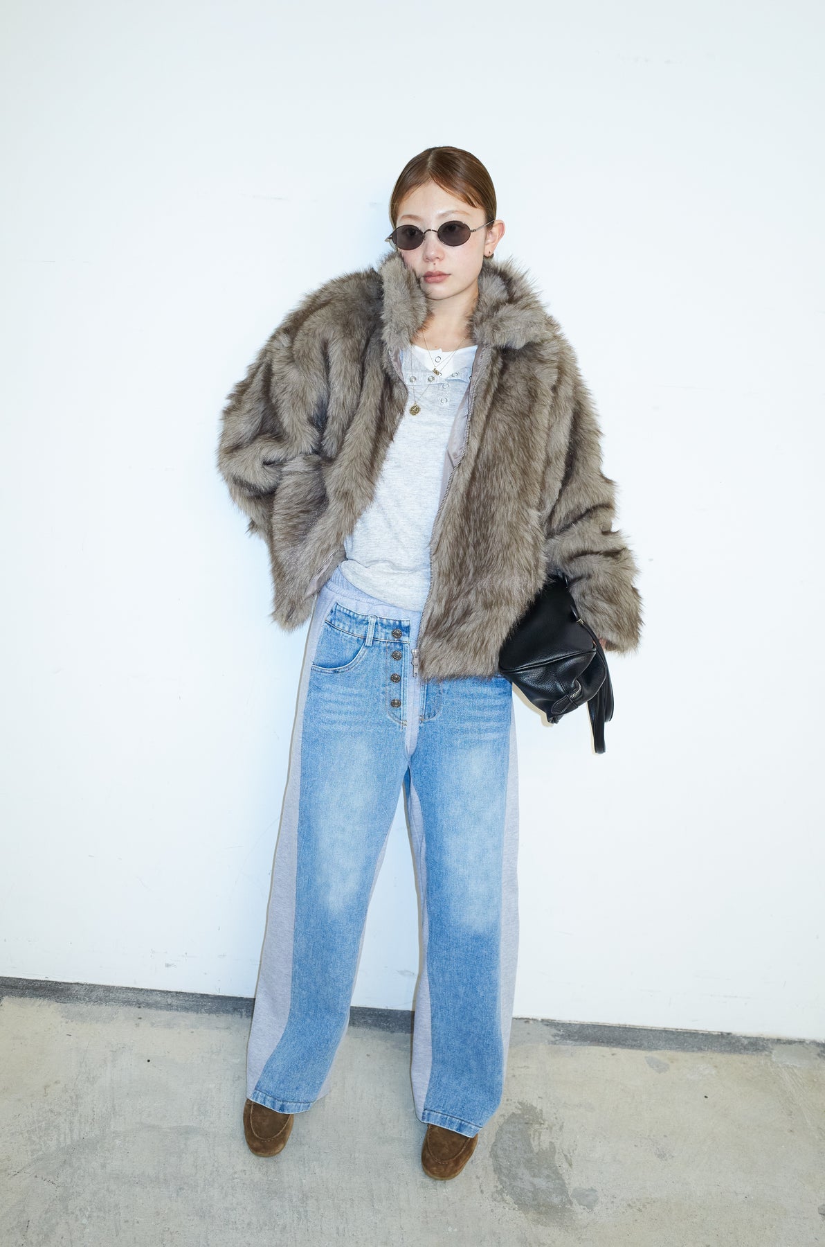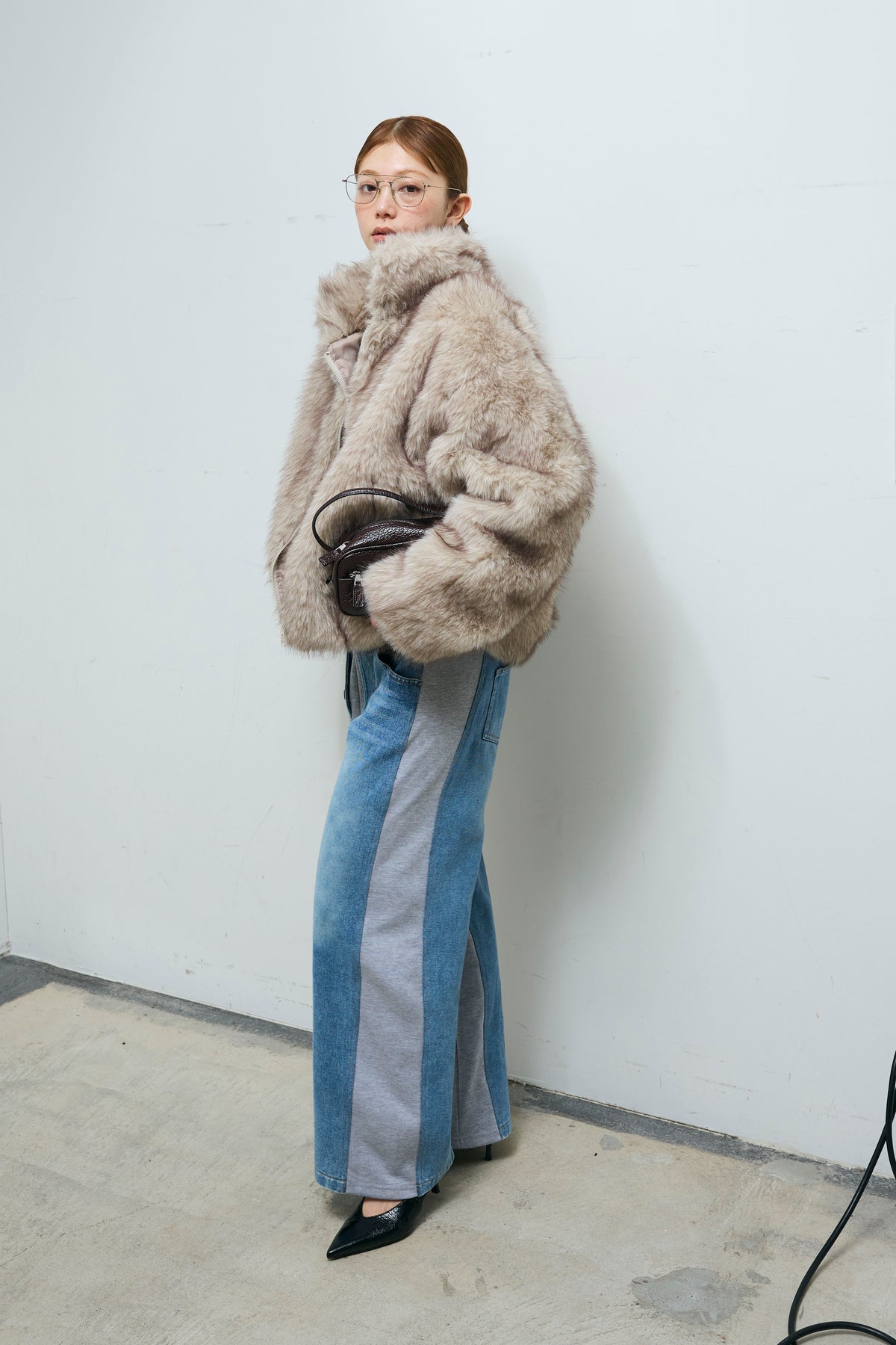 [予約/SET]ミックスファージップブルゾン+スウェット切り替えデニムパンツ(2set)