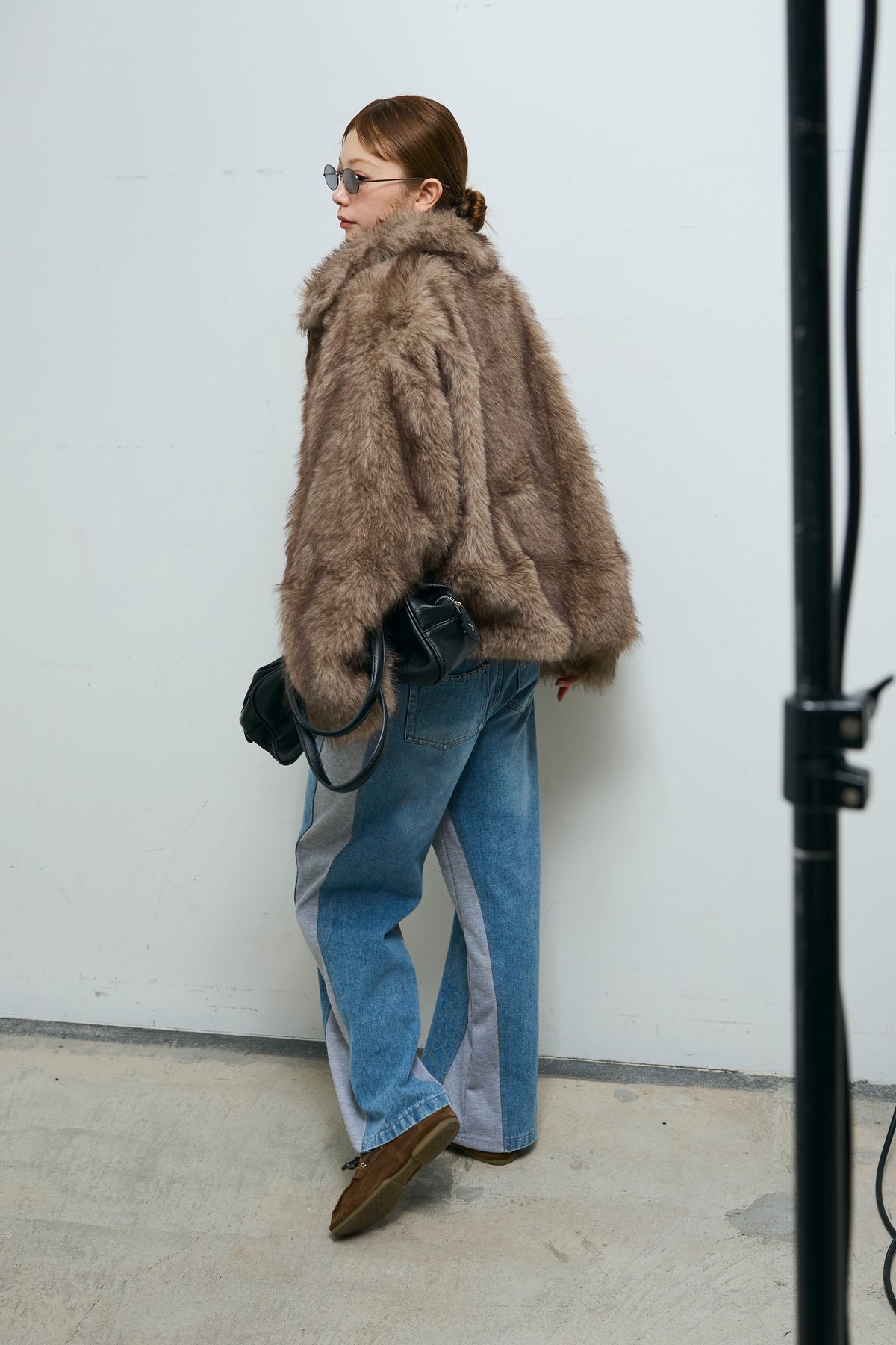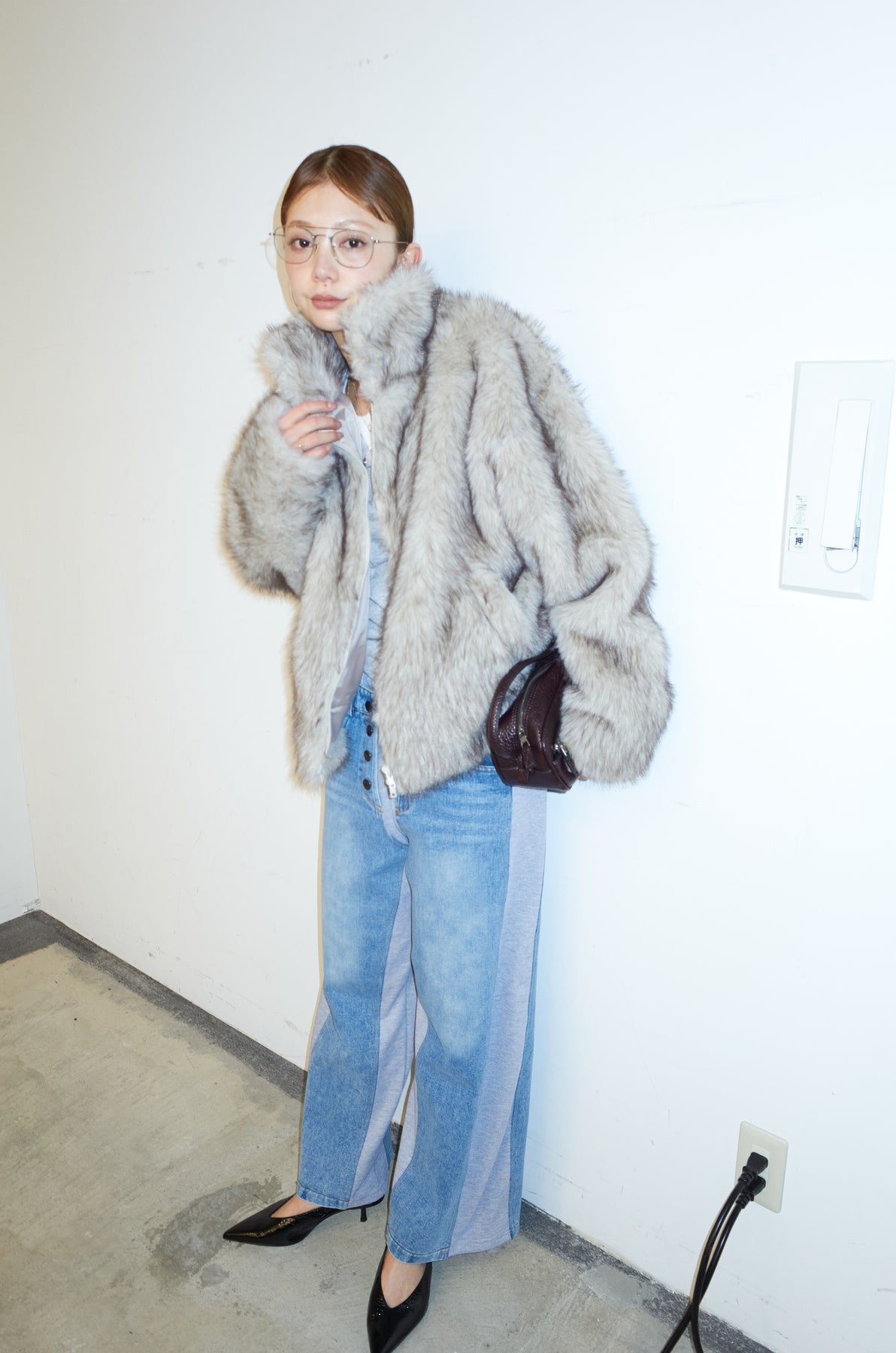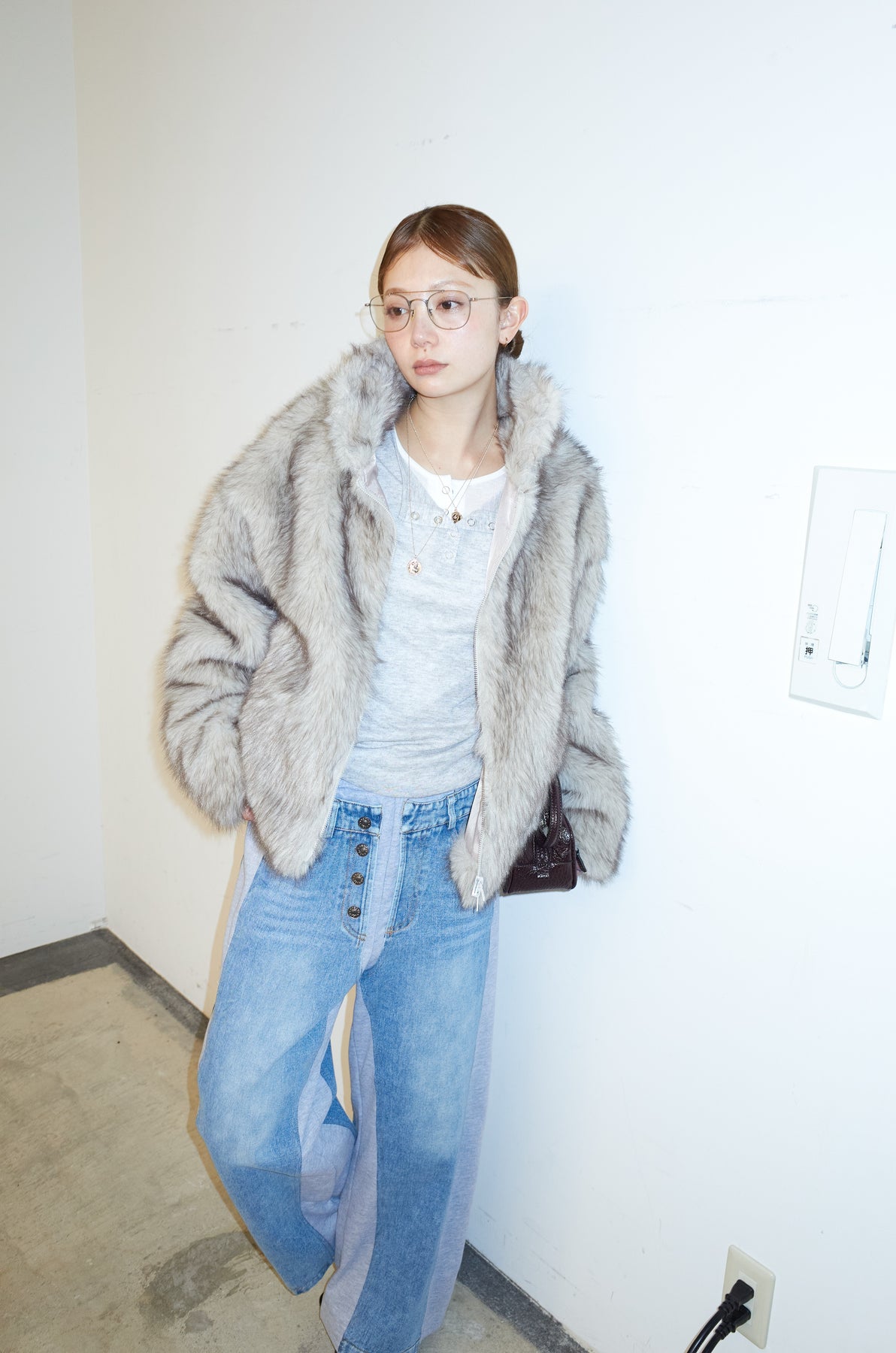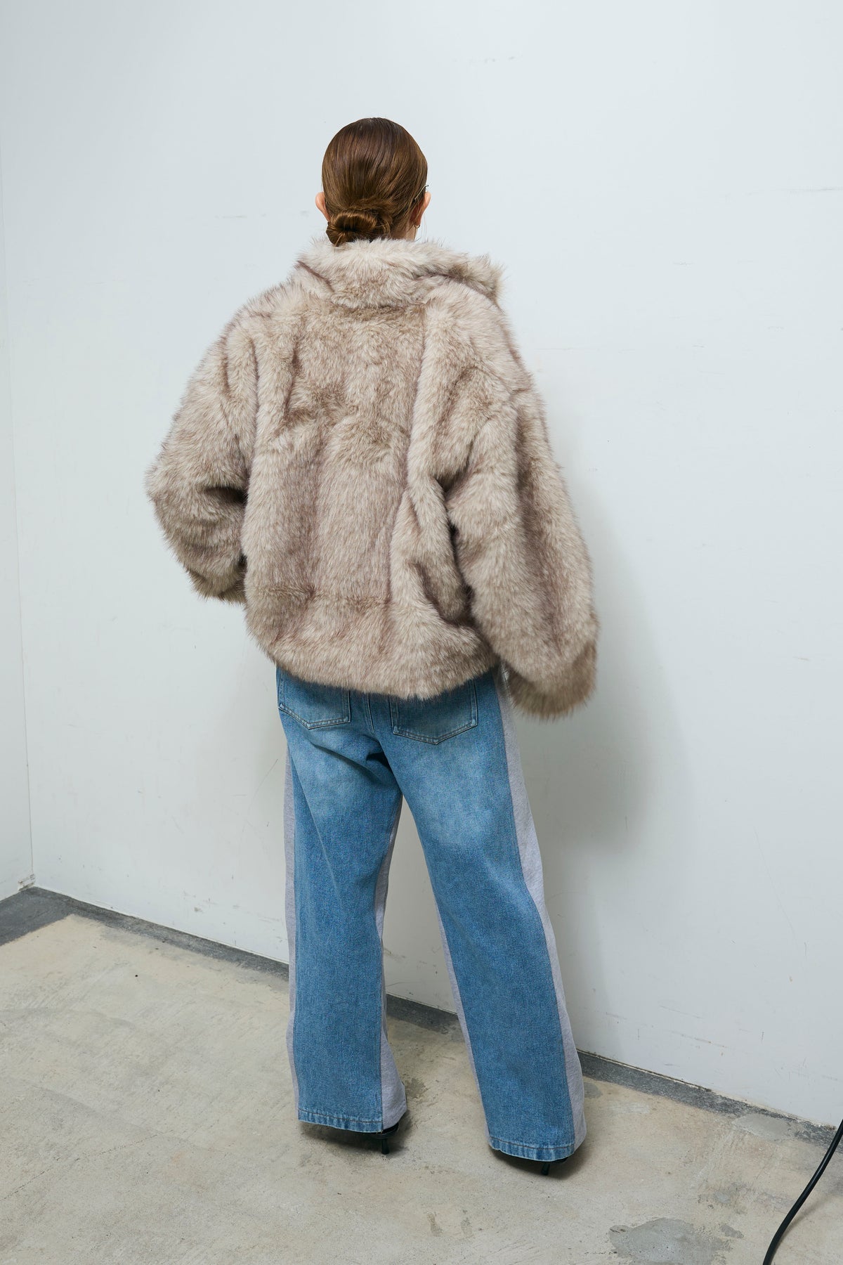 [予約/SET]ミックスファージップブルゾン+スウェット切り替えデニムパンツ(2set)