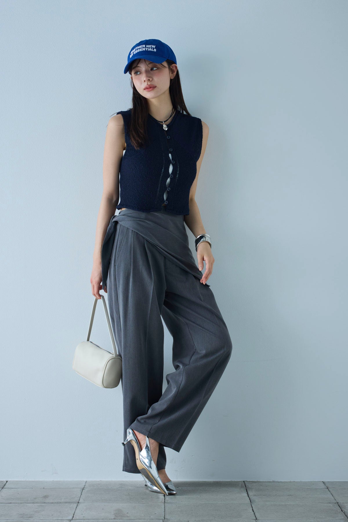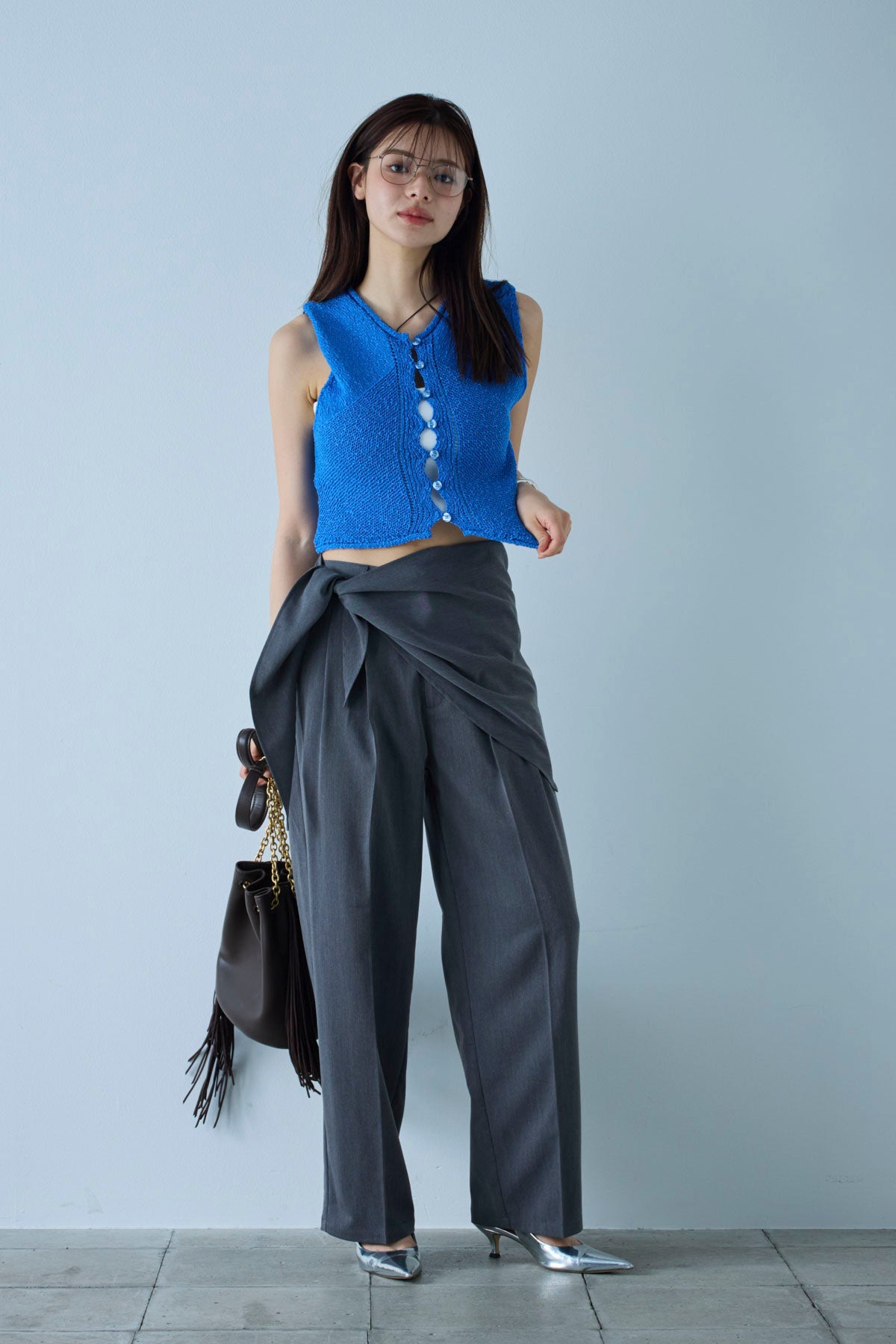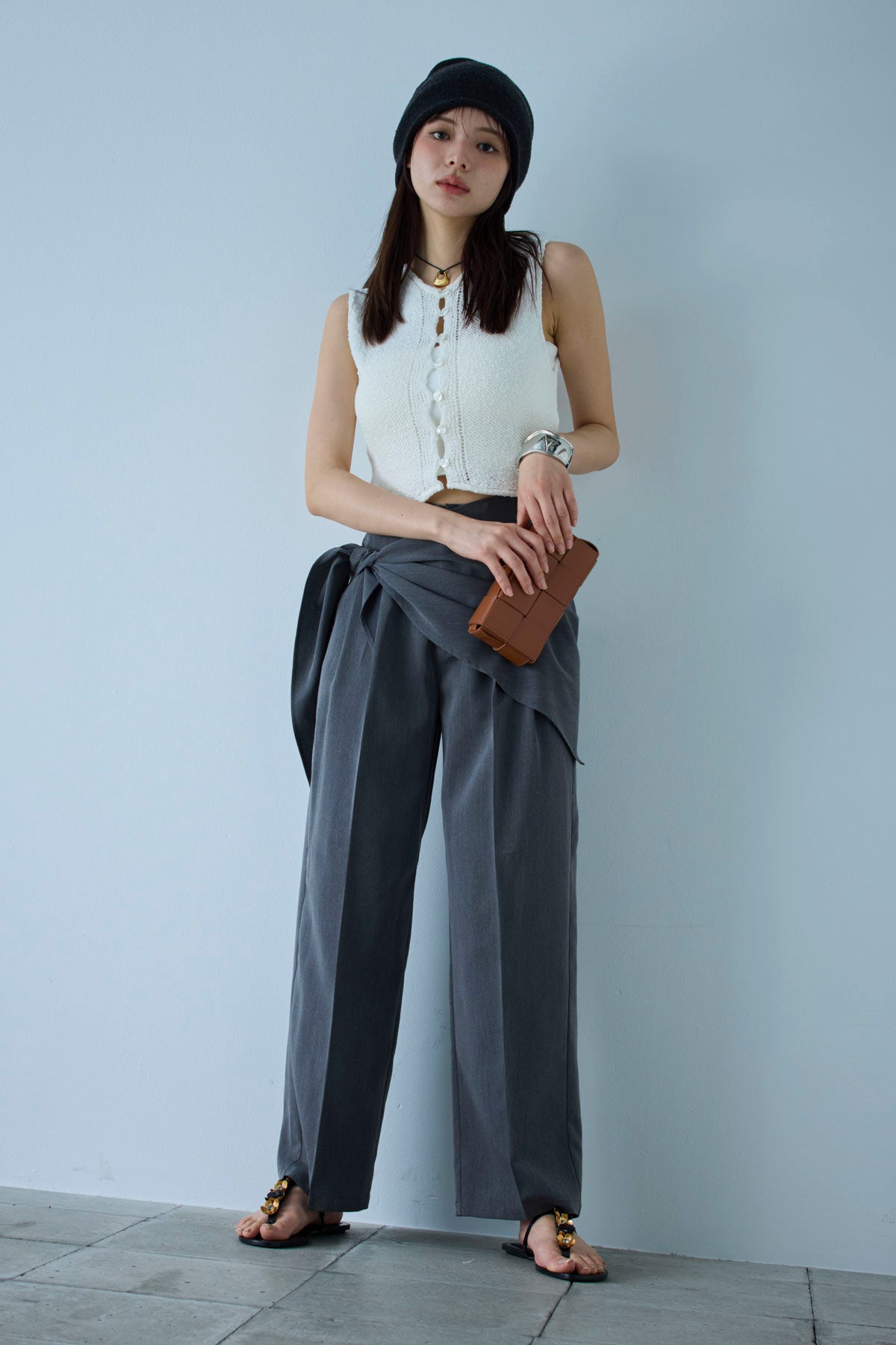 [予約/SET]フロントボタンPO+スカーフ付きタックパンツ(2set)