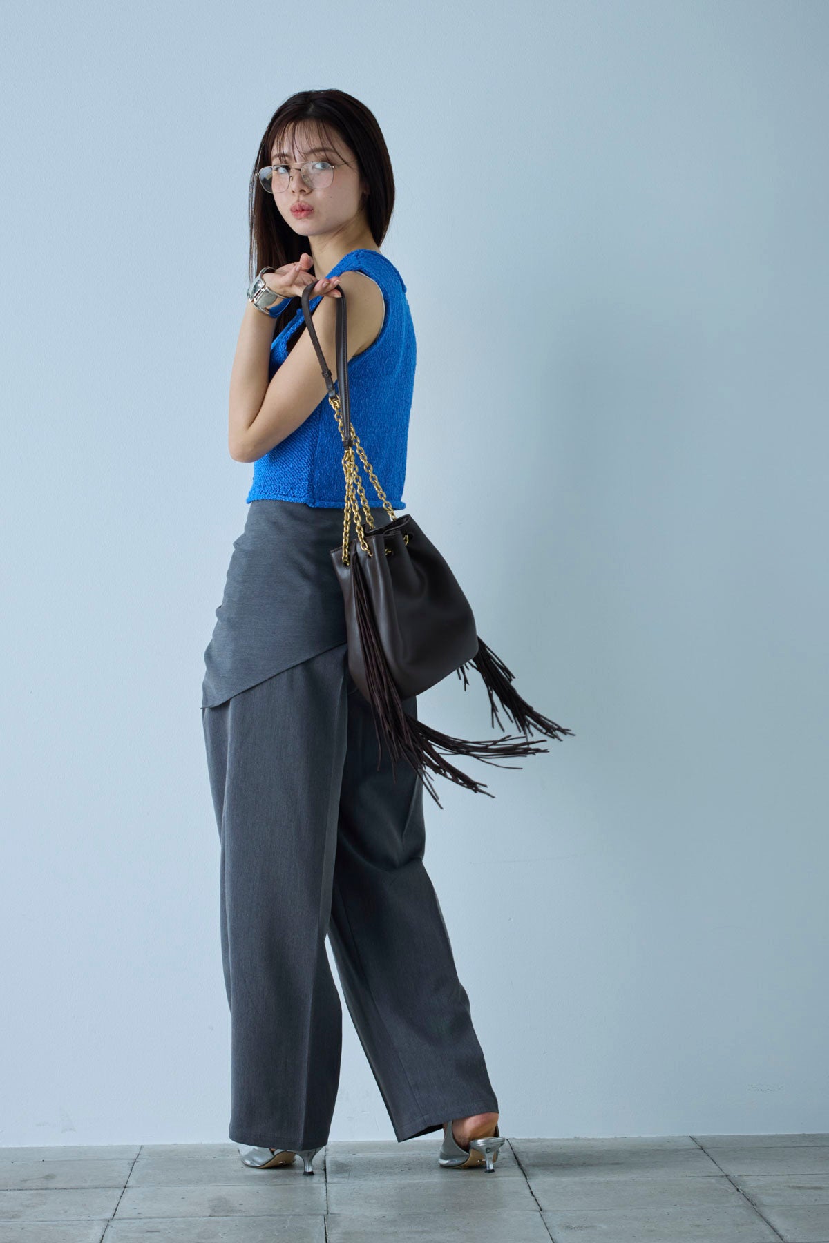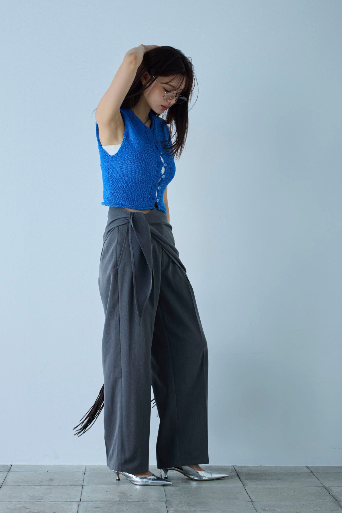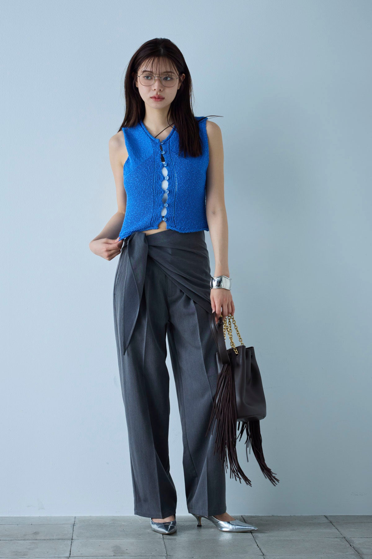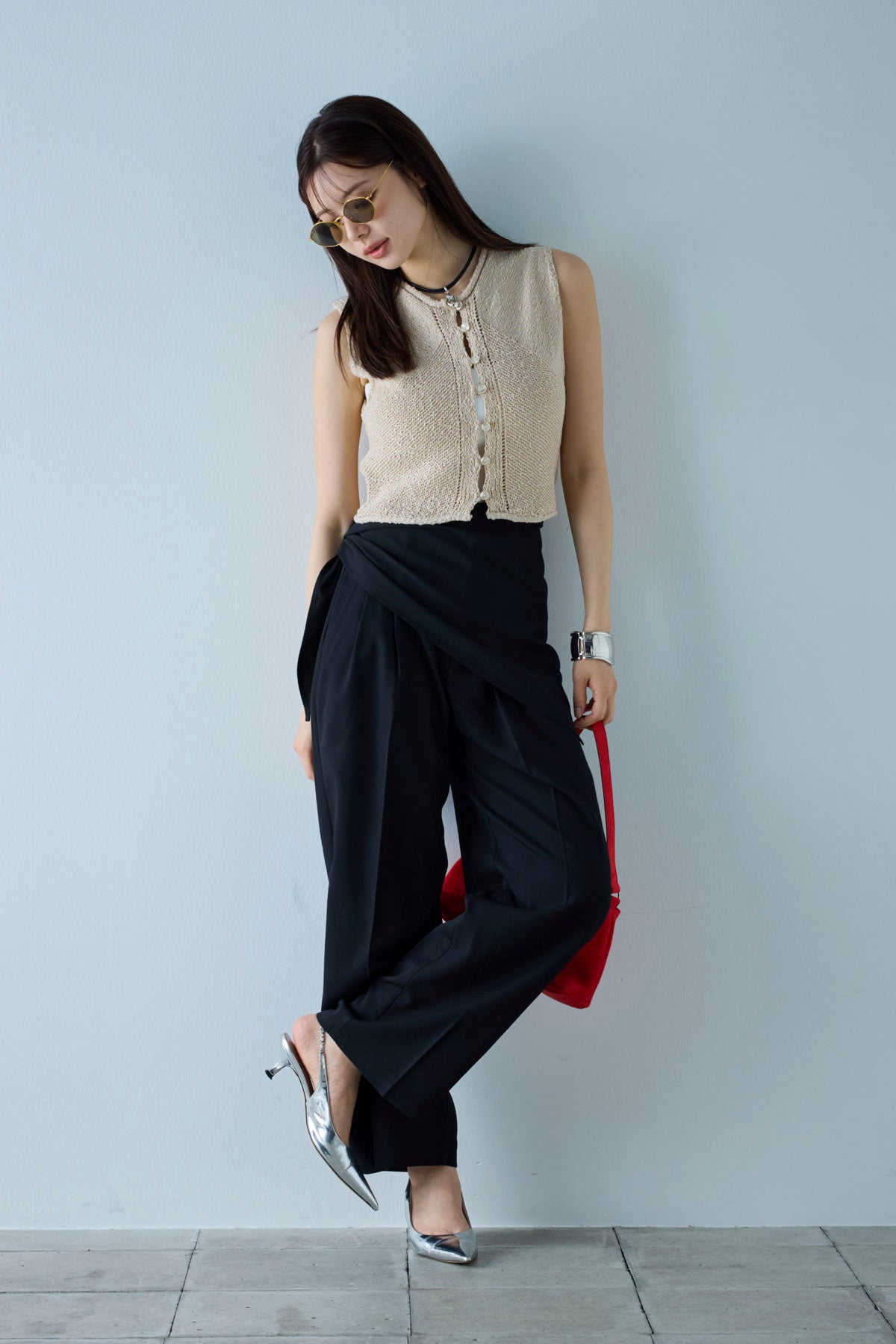 [予約/SET]フロントボタンPO+スカーフ付きタックパンツ(2set)
