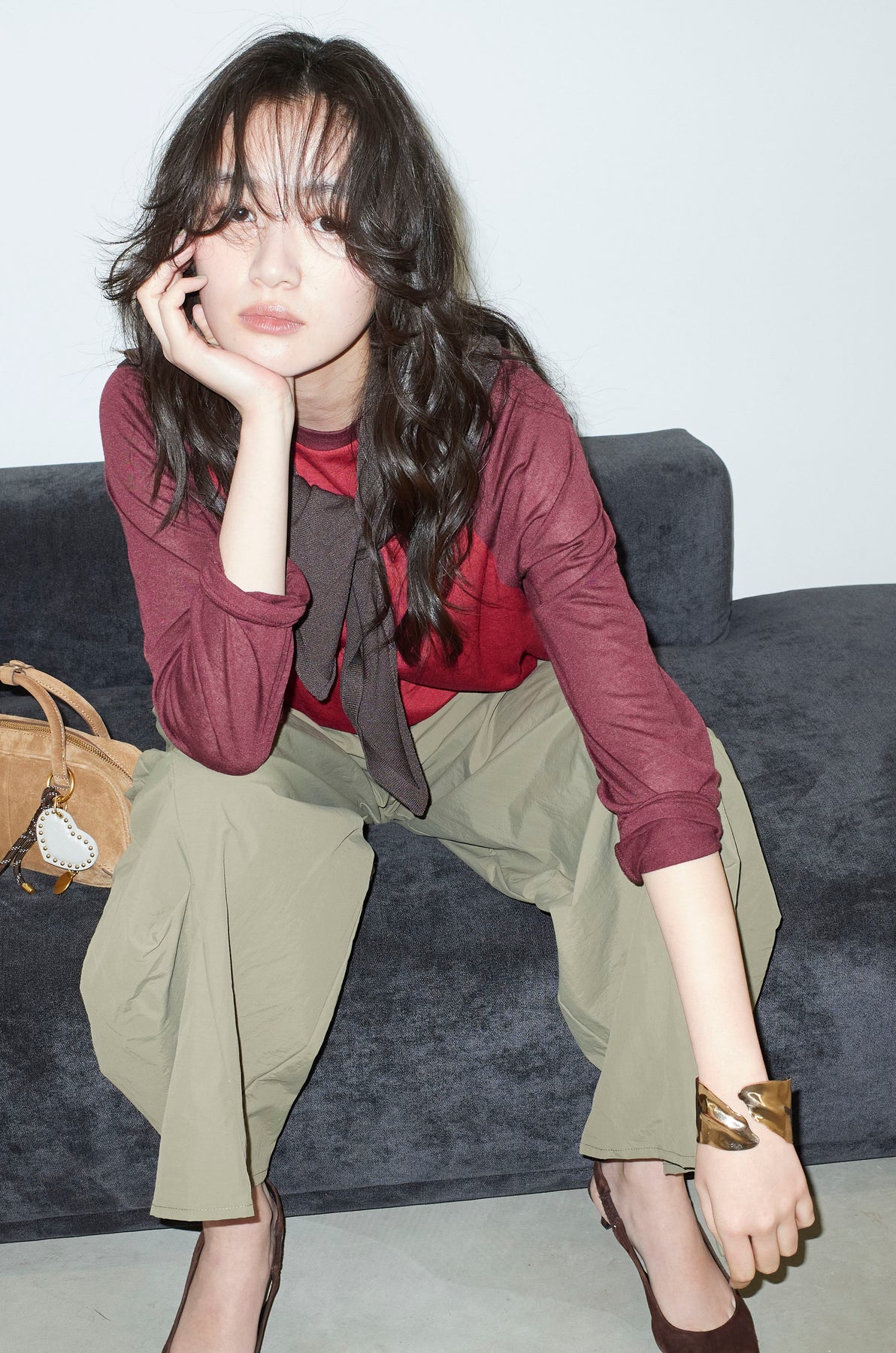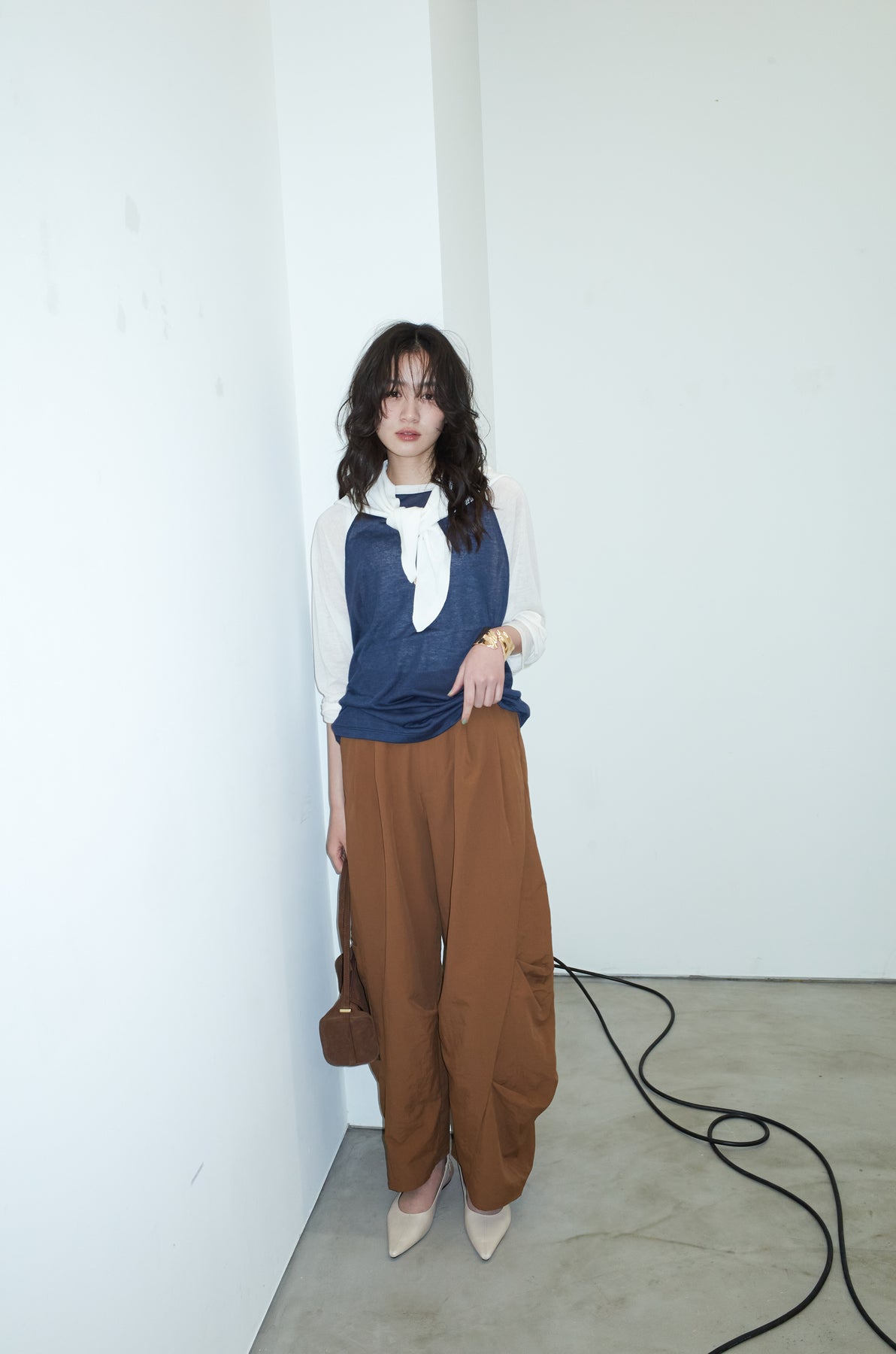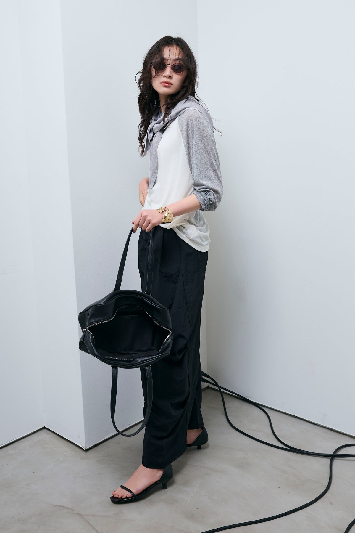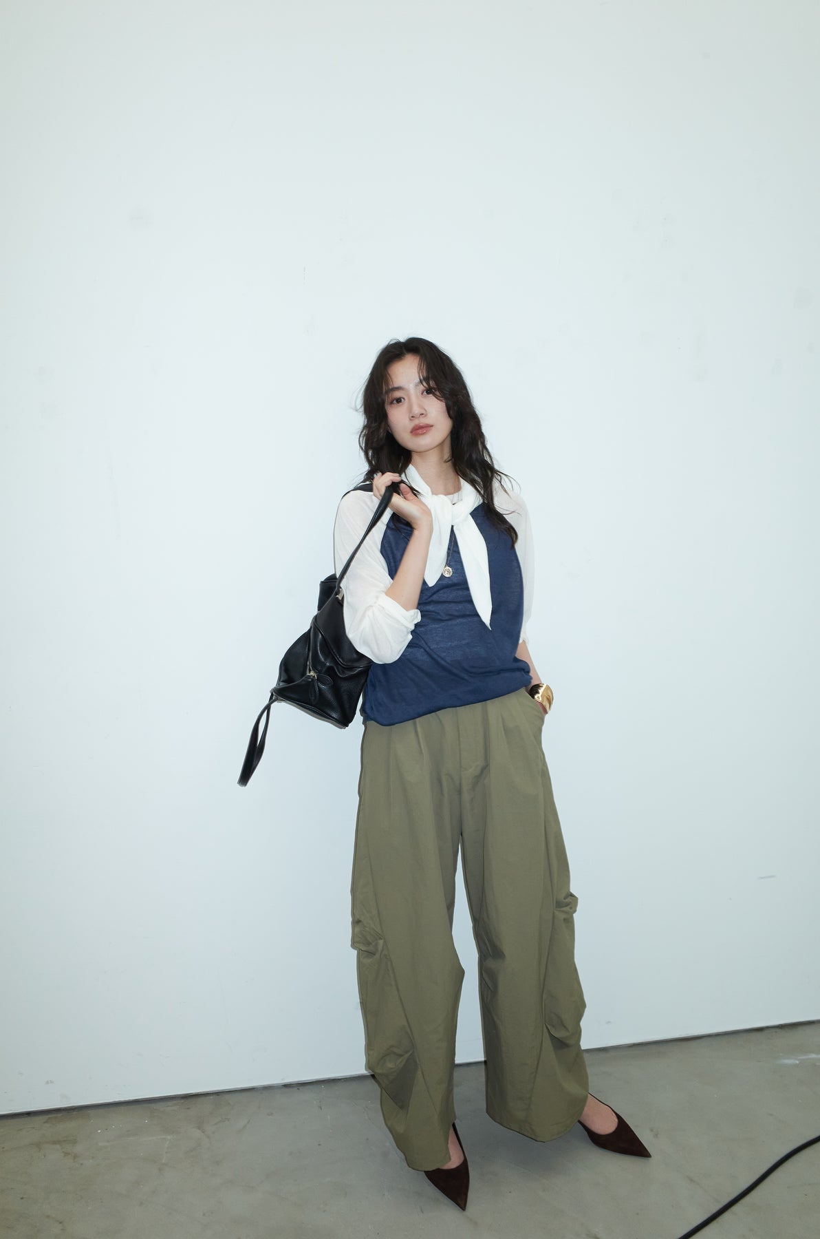 [予約/SET]シアーラグランPO+レーヨン混マルチWAYニットスカーフ+ドライタフタバレルレッグパンツ(3set)