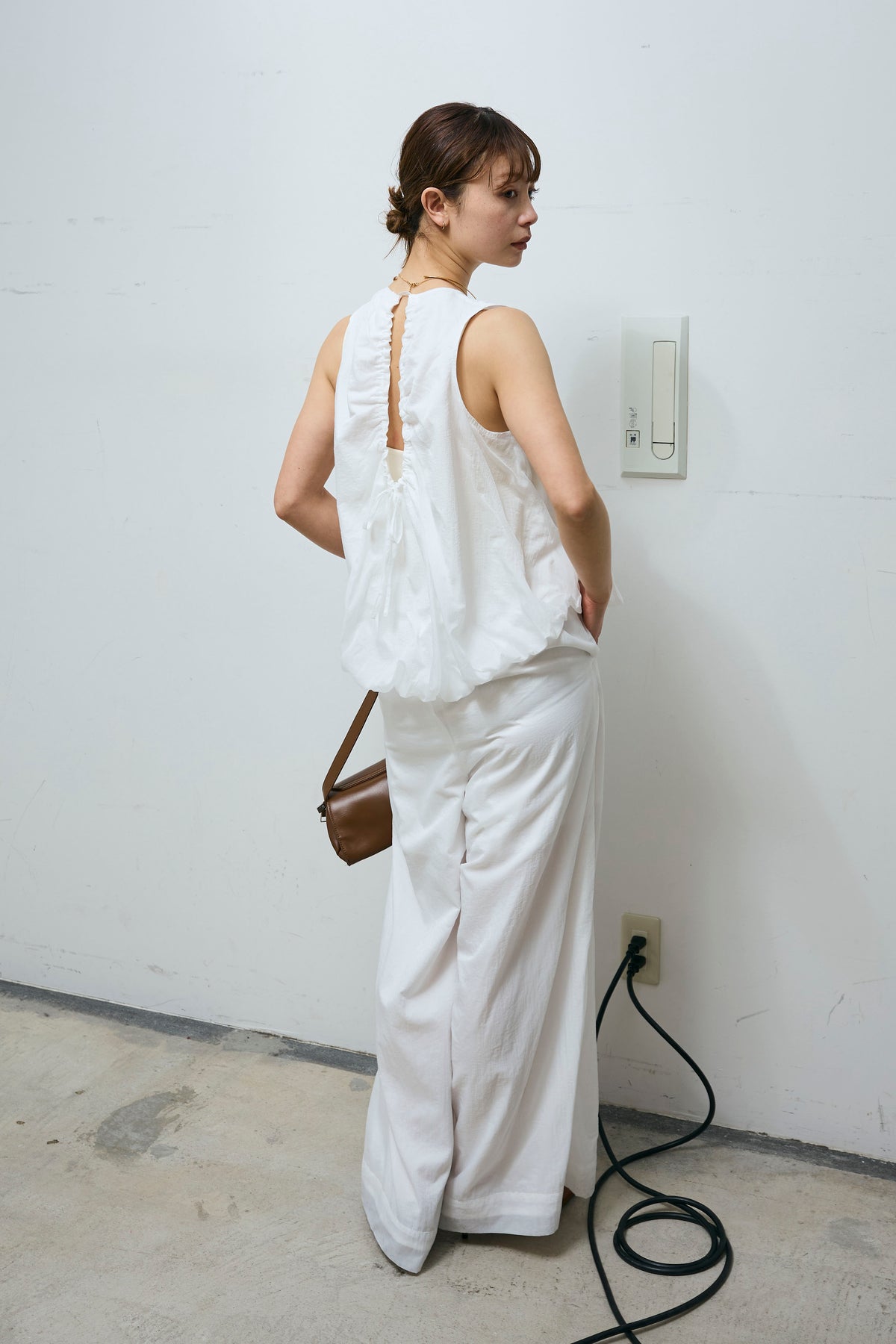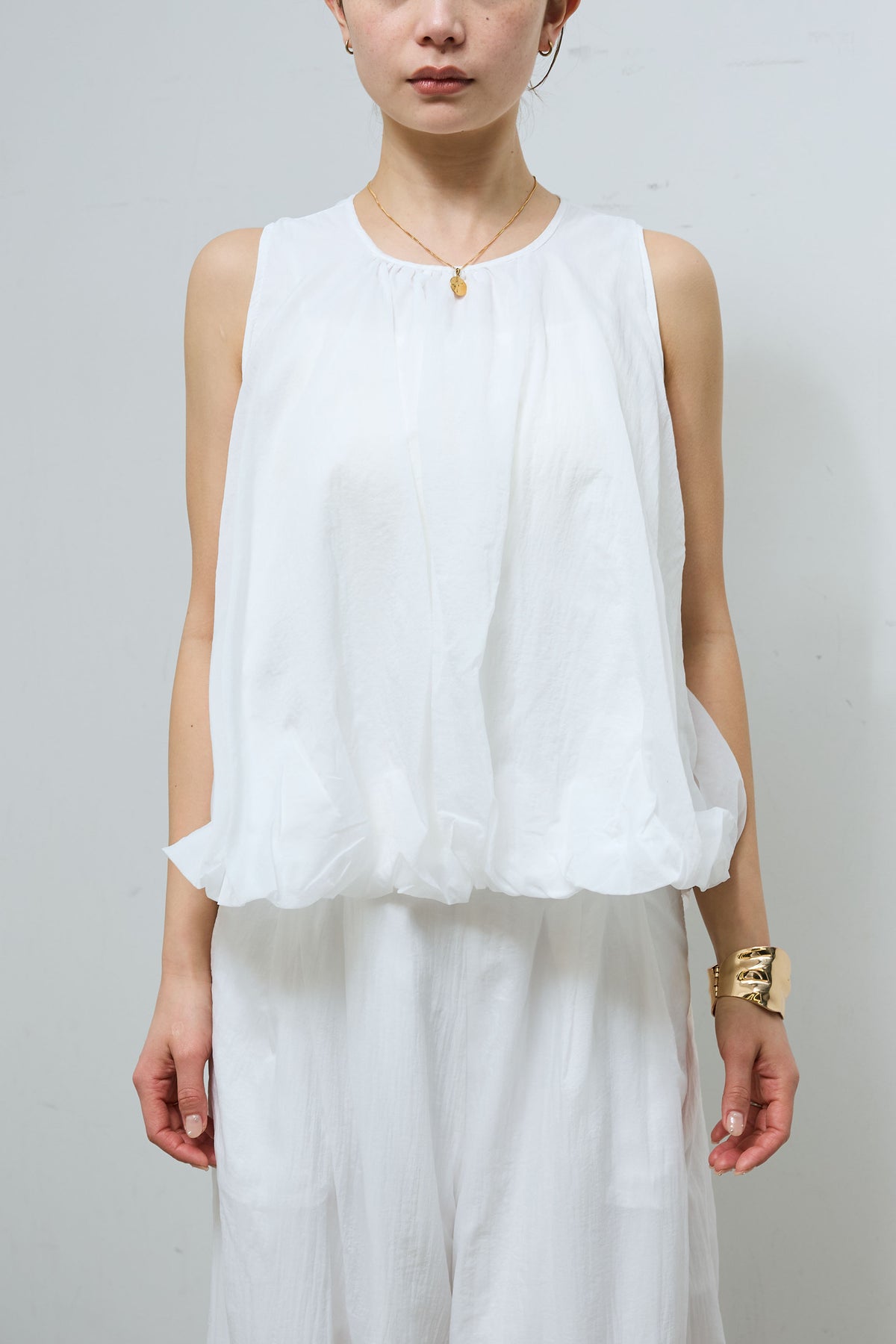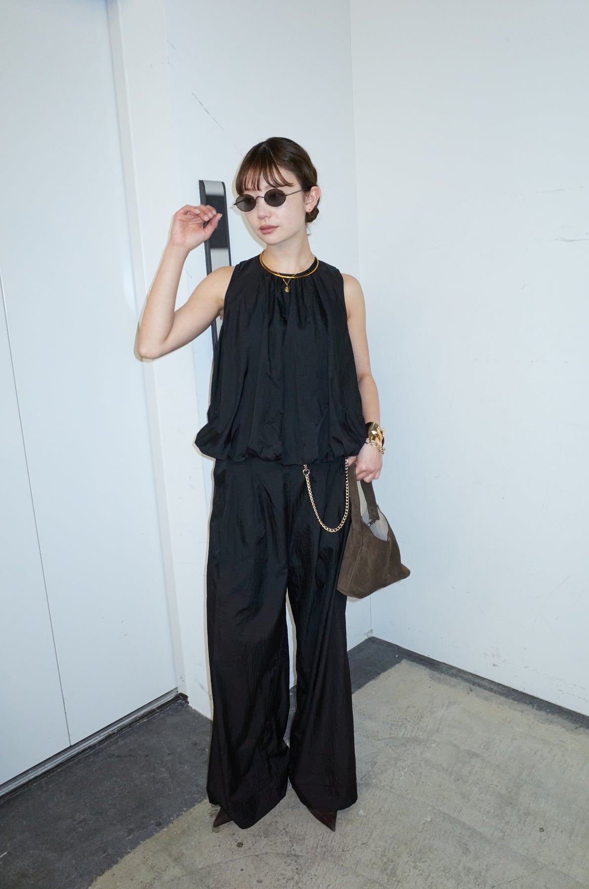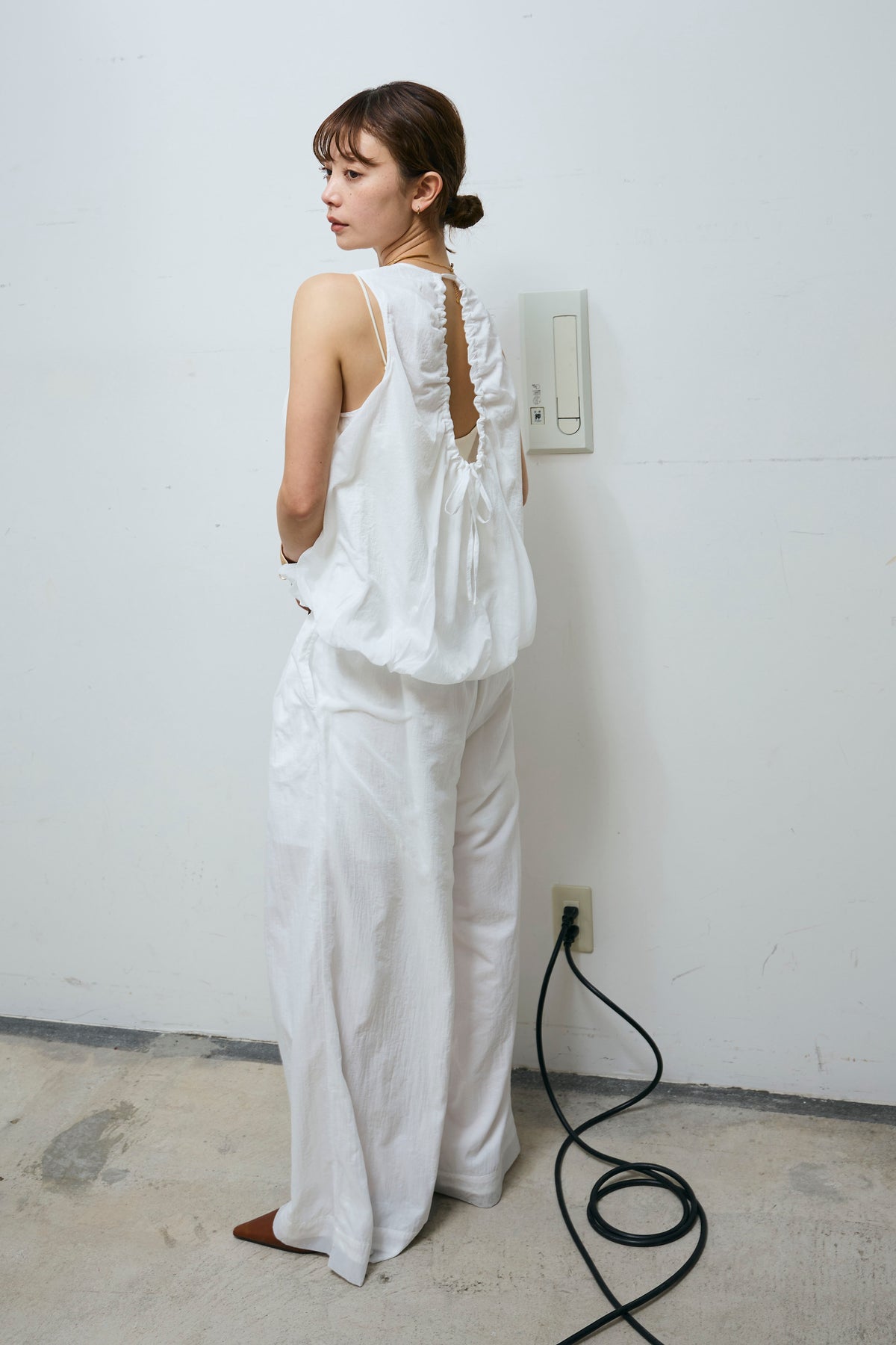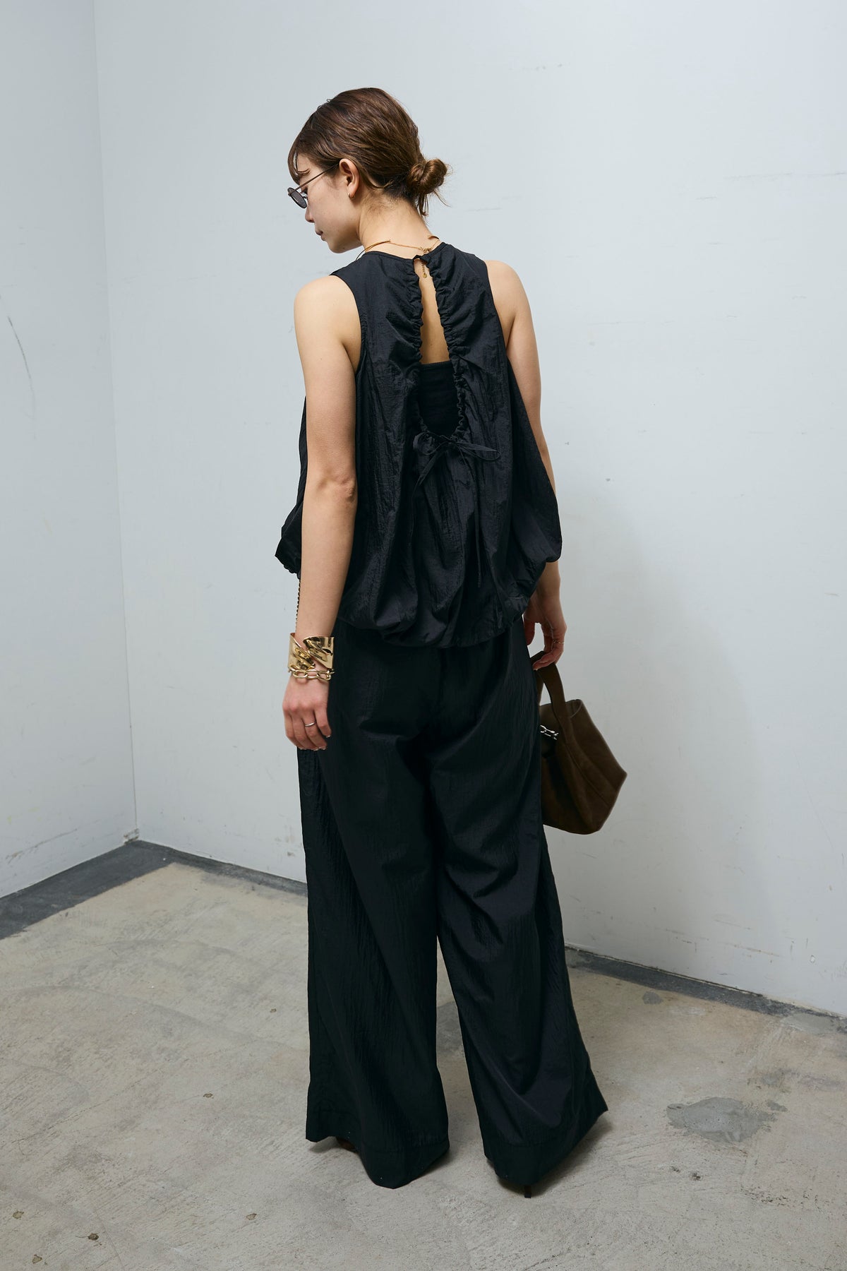 [予約/SET]バックオープンシアーバルーンブラウス+シアーイージーワイドパンツ(2set)