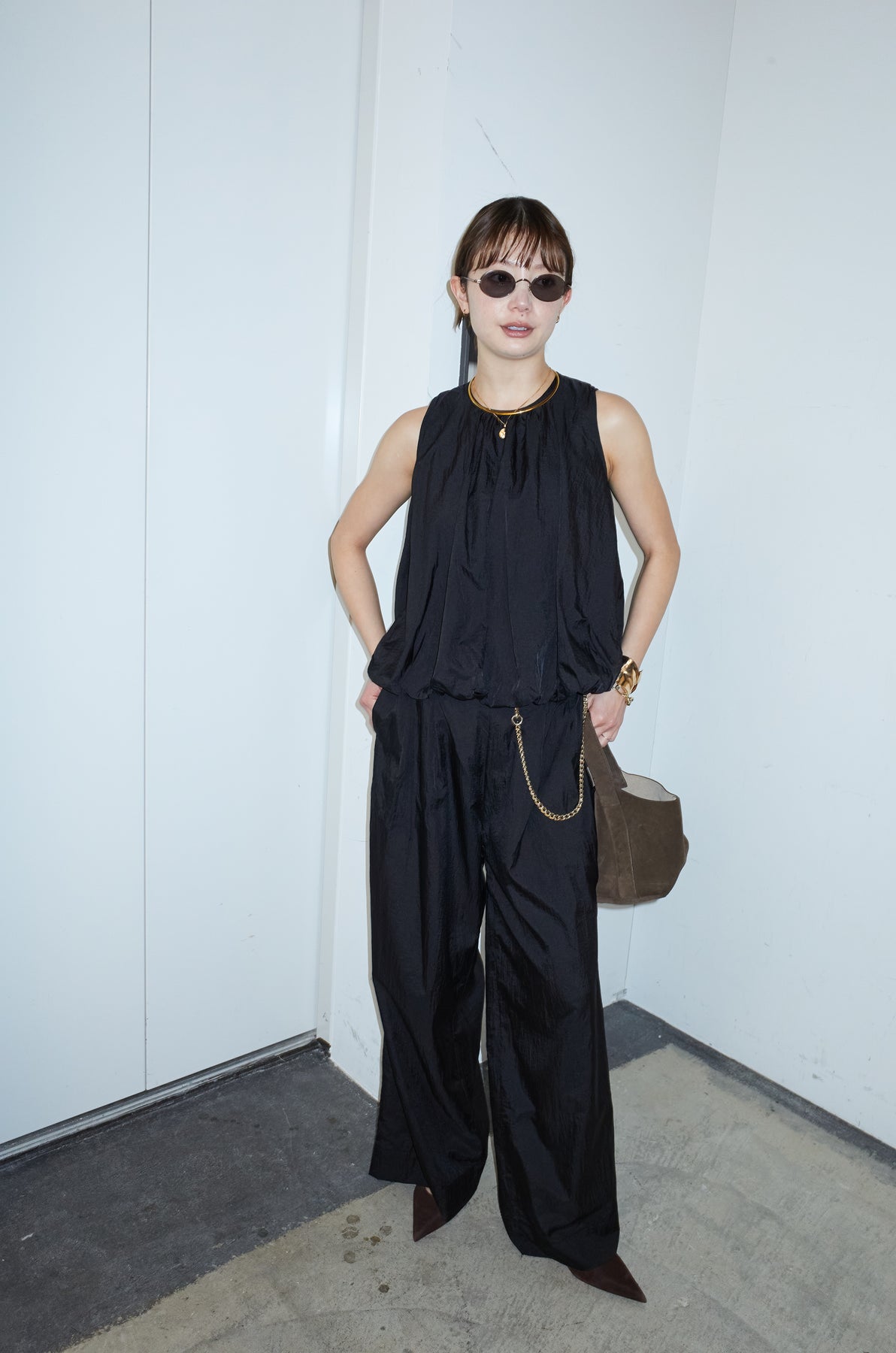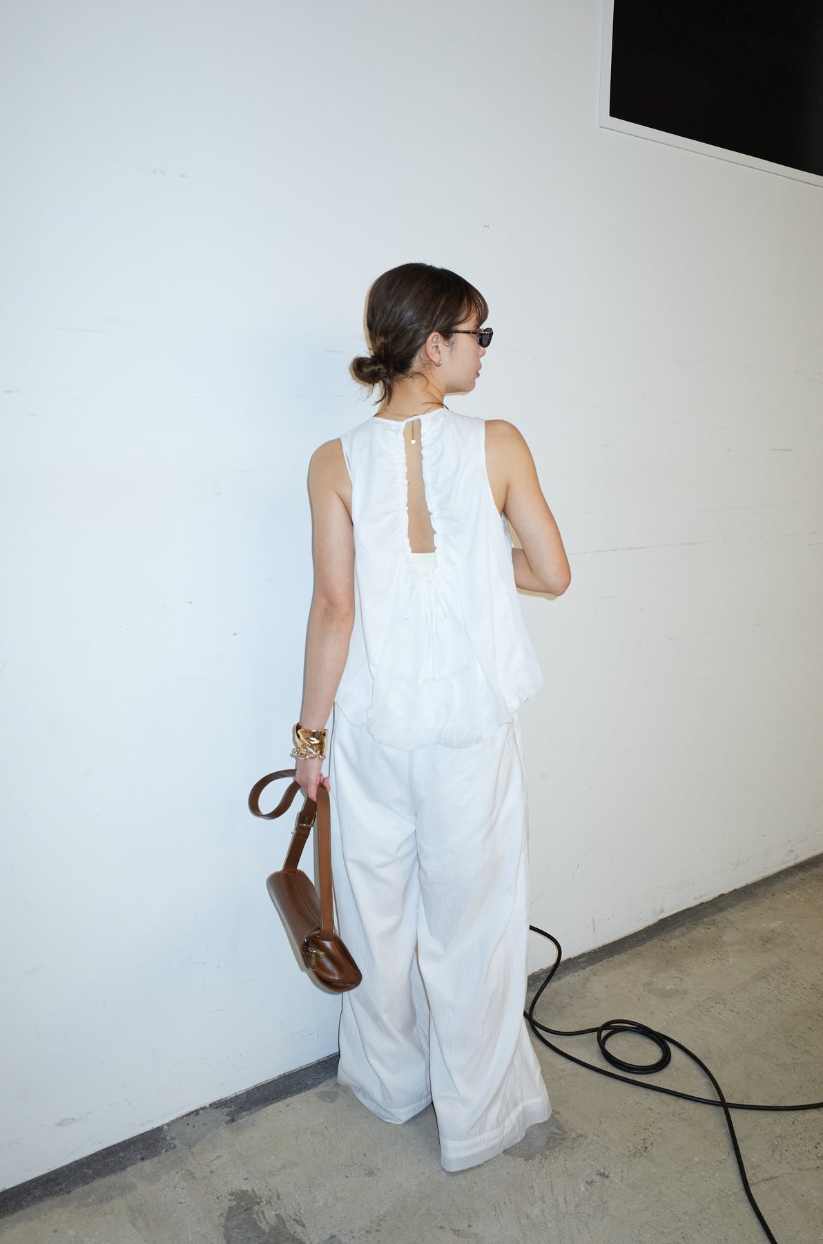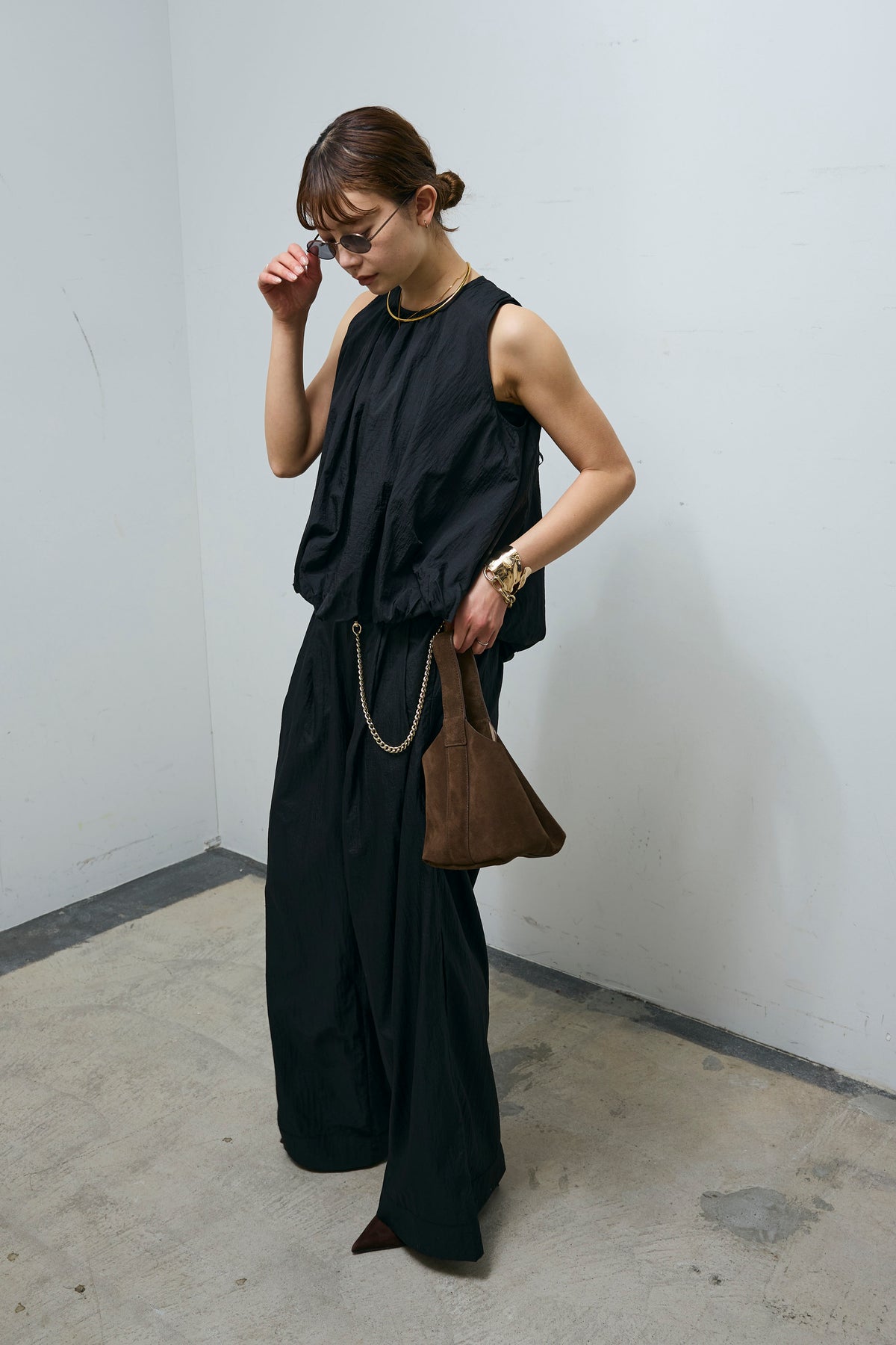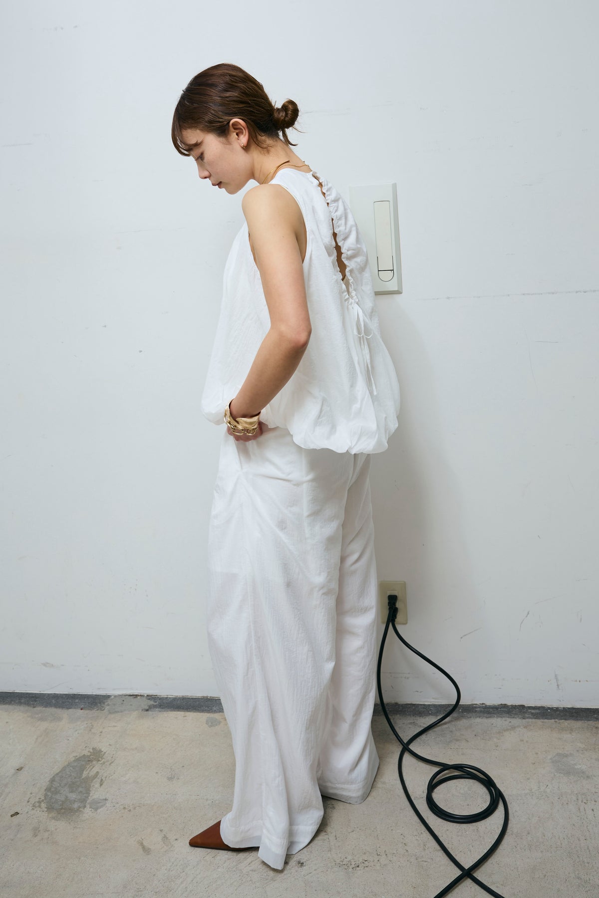 [予約/SET]バックオープンシアーバルーンブラウス+シアーイージーワイドパンツ(2set)