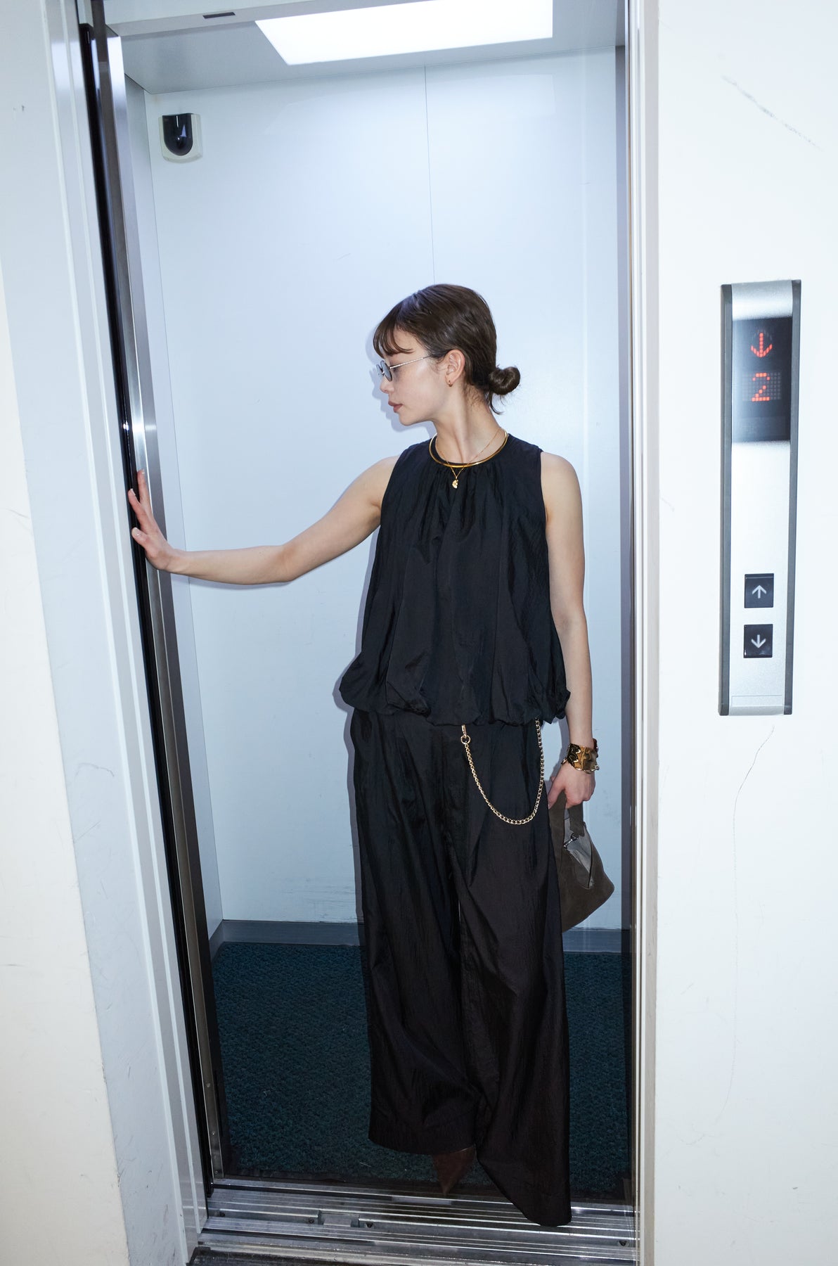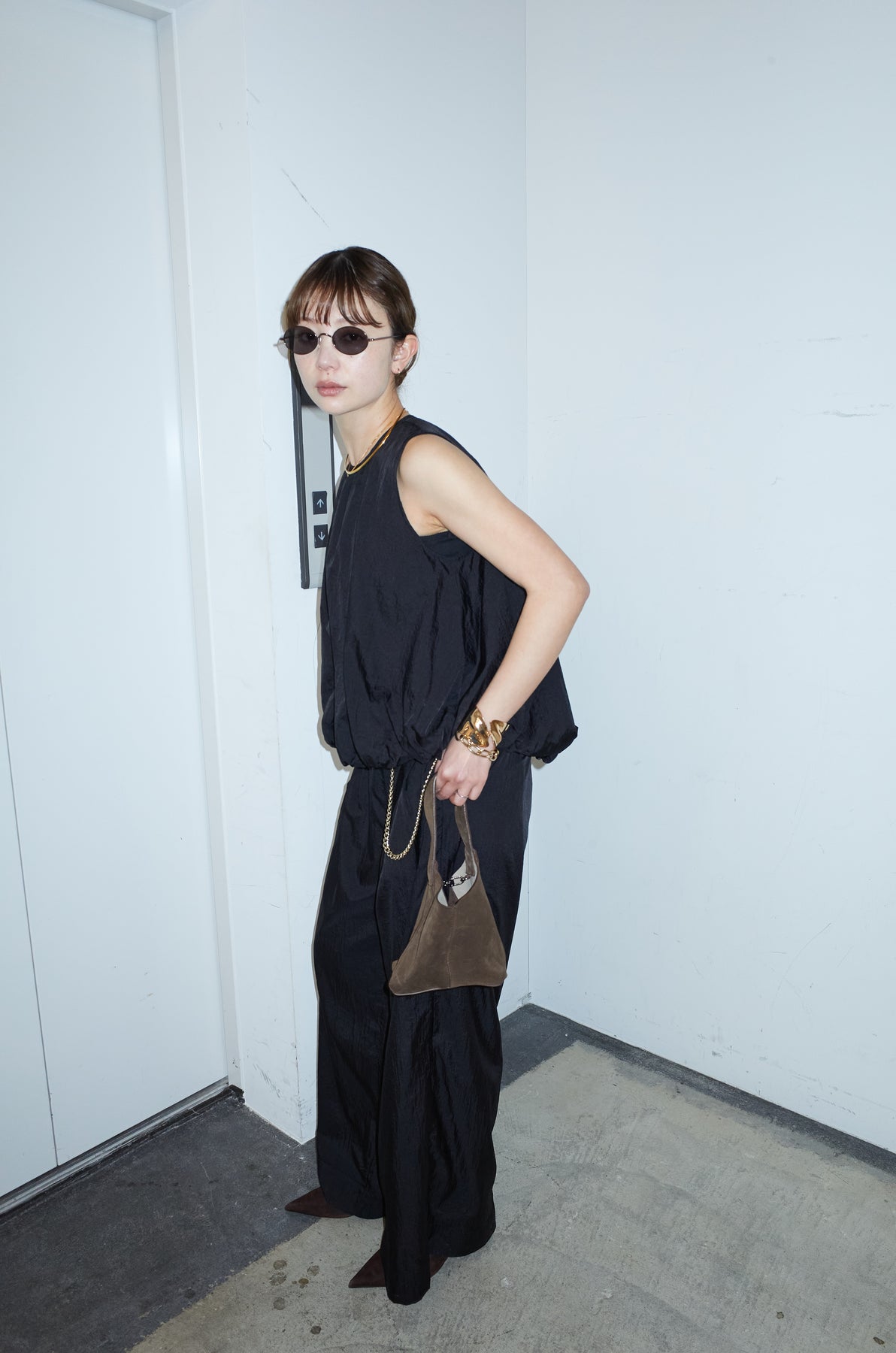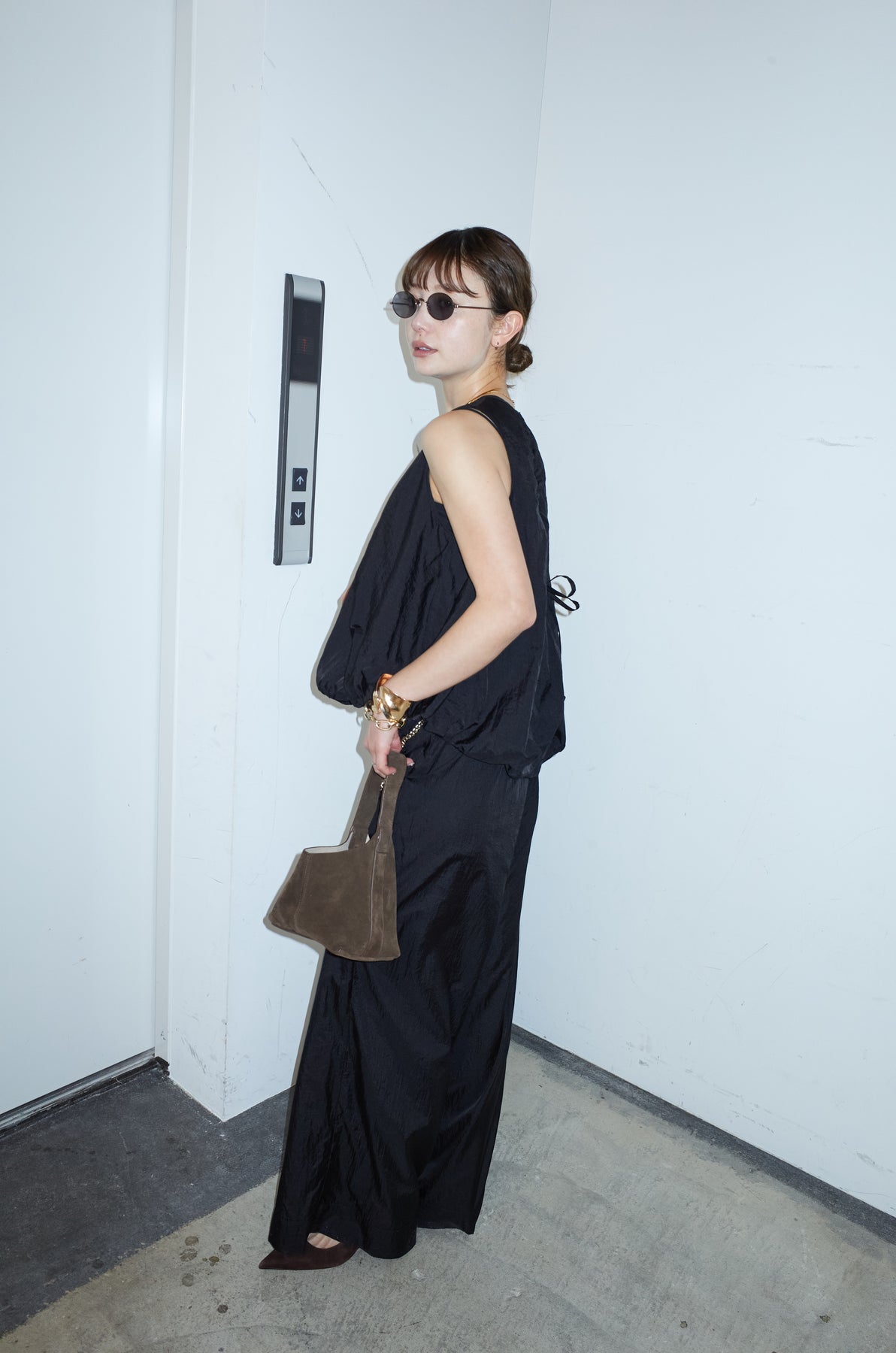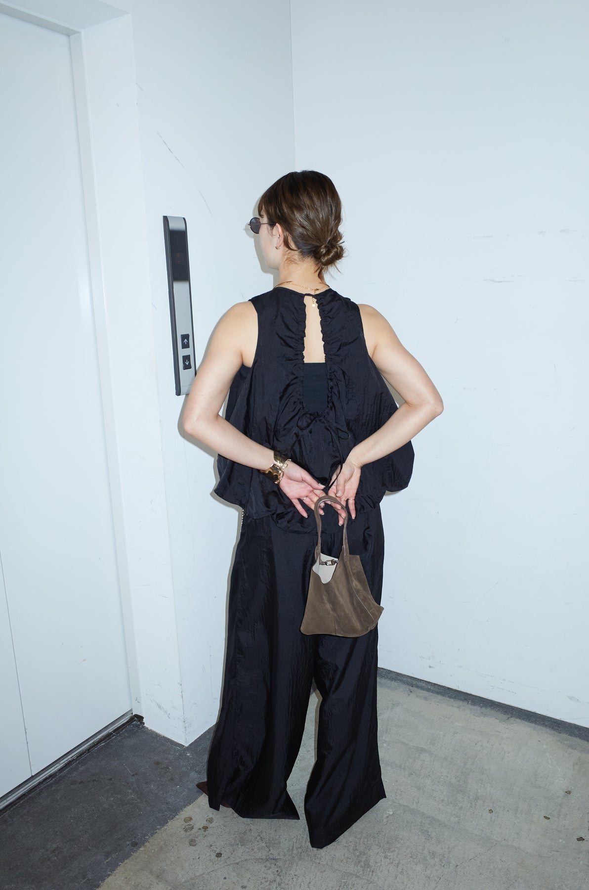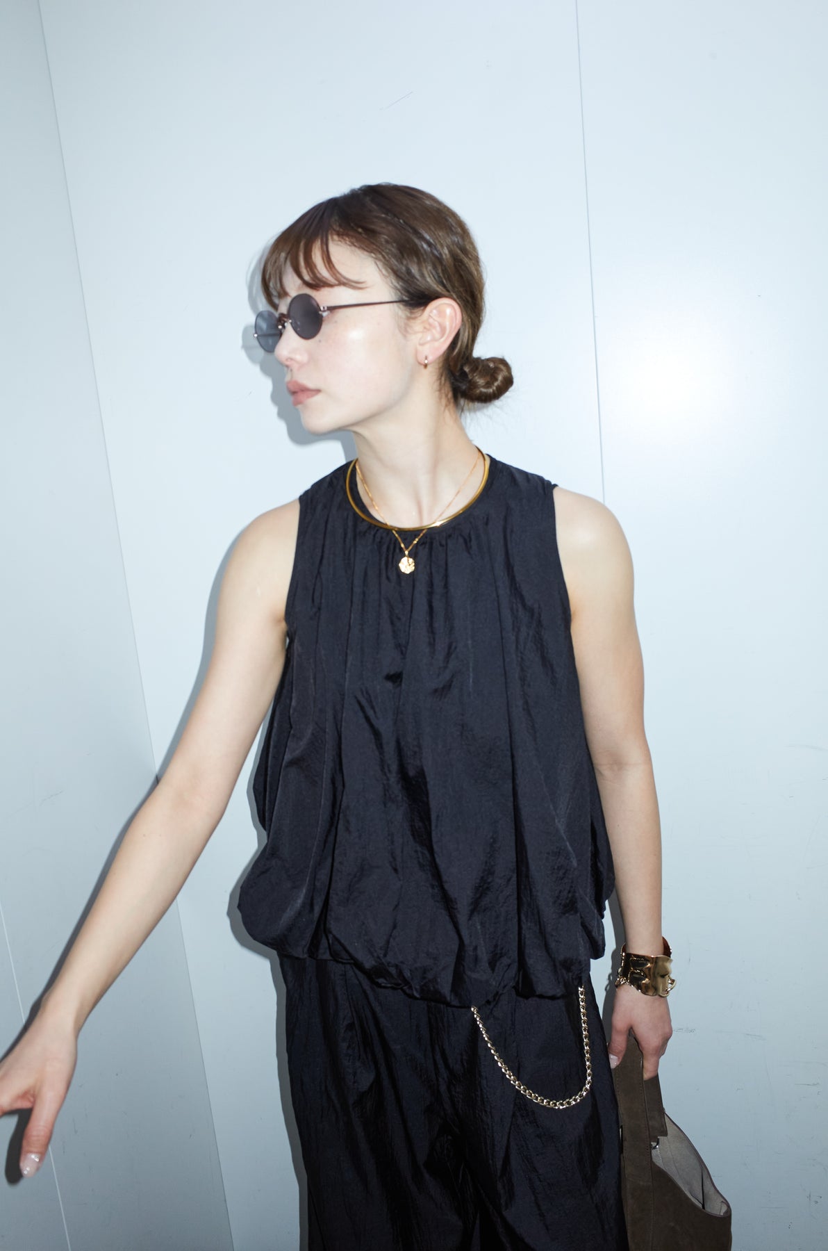 [予約/SET]バックオープンシアーバルーンブラウス+シアーイージーワイドパンツ(2set)